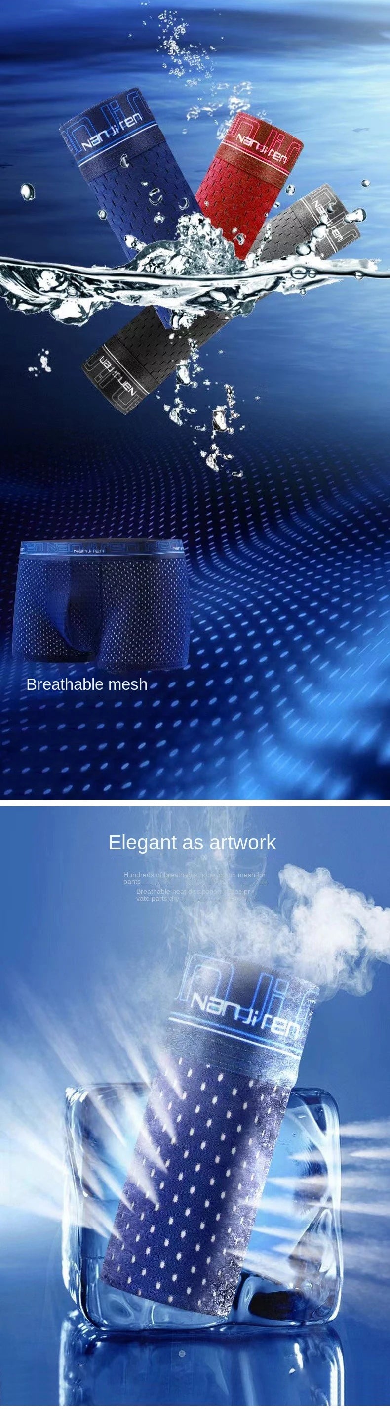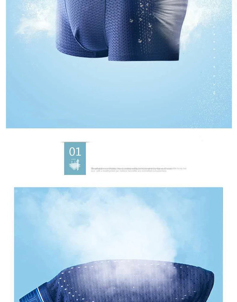 4pcs Men's Boxer Shorts Ice Silk Underwear Plus Size Underpants Cool Breathable Sexy Slim Panties Mesh Li...
