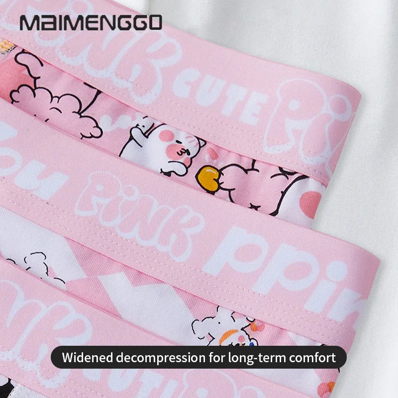 MAIMENG Men's underwear Cartoon Panda Pattern boxer shorts men's underwear Pink men's cartoon print sexy ...