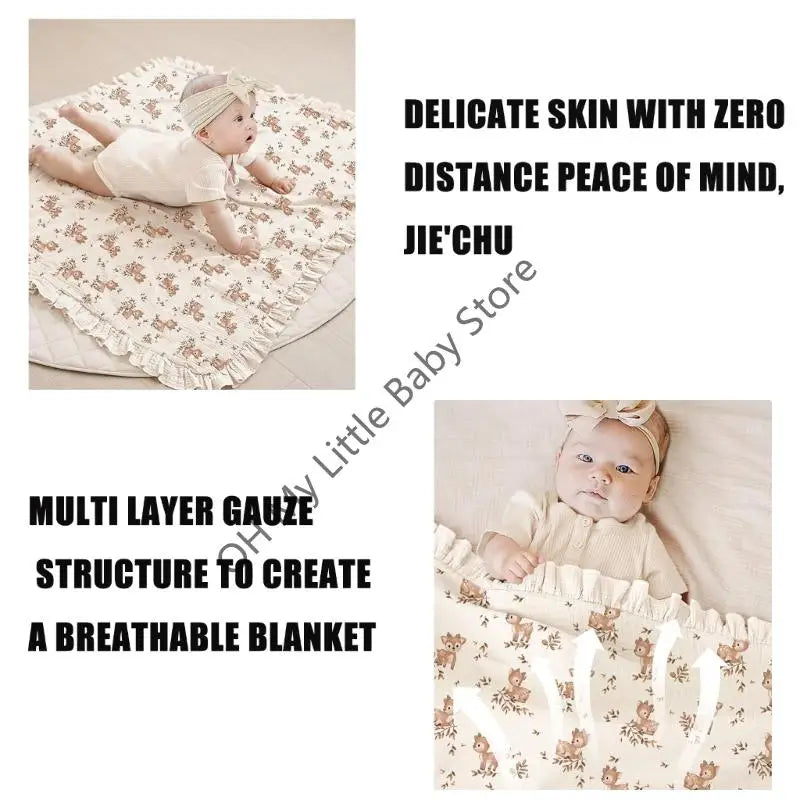 Cotton Muslin Cute Cartoon Printing Baby Swaddle Blanket Soft Breathable Newb...