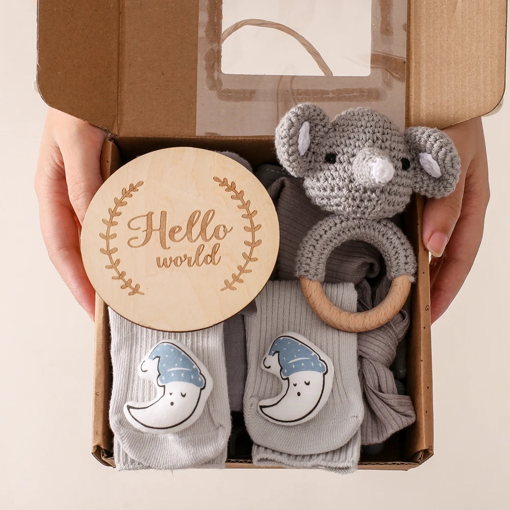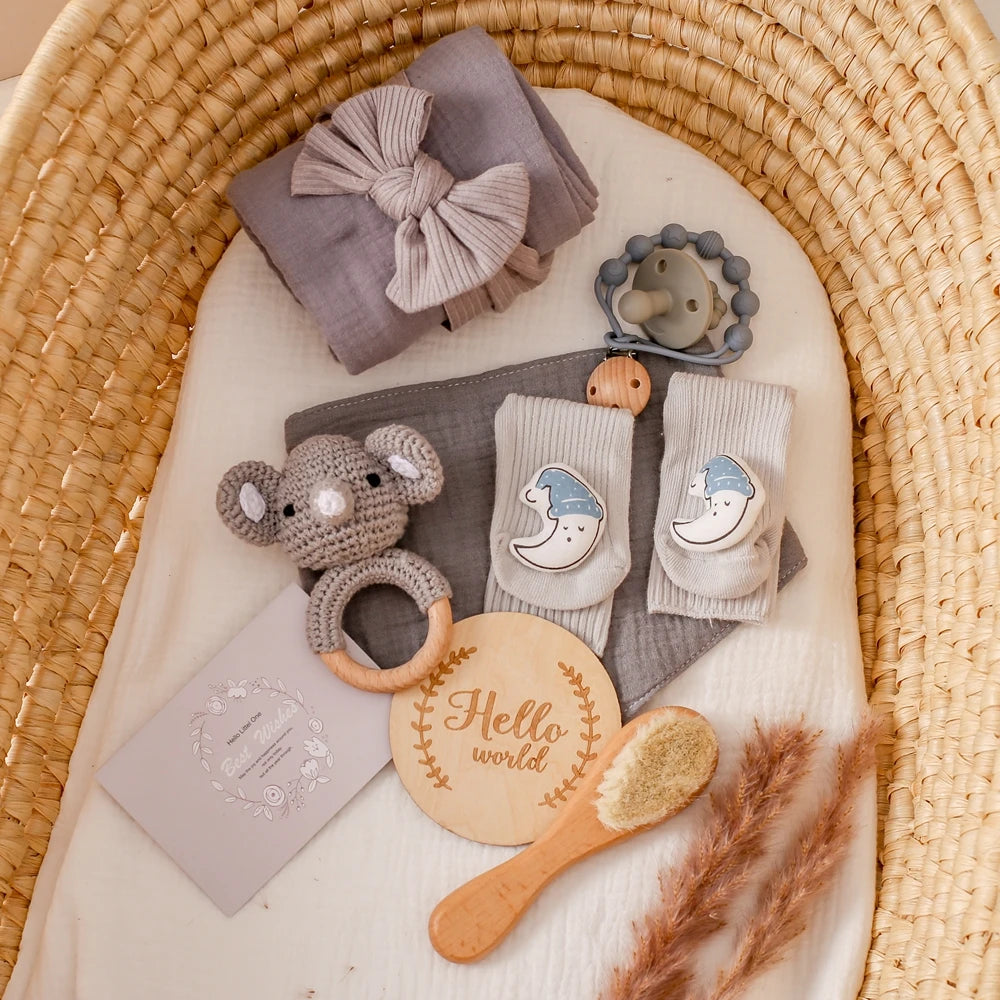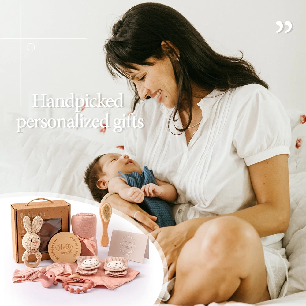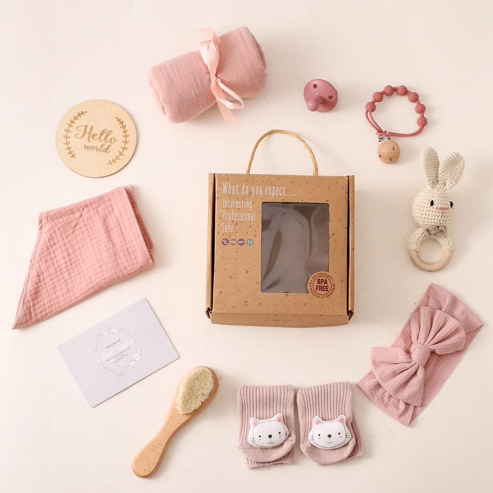 Newborn Bath Set Baby Towel Cotton Blanket Pacifier Chain Bracelet Crochet Ra...