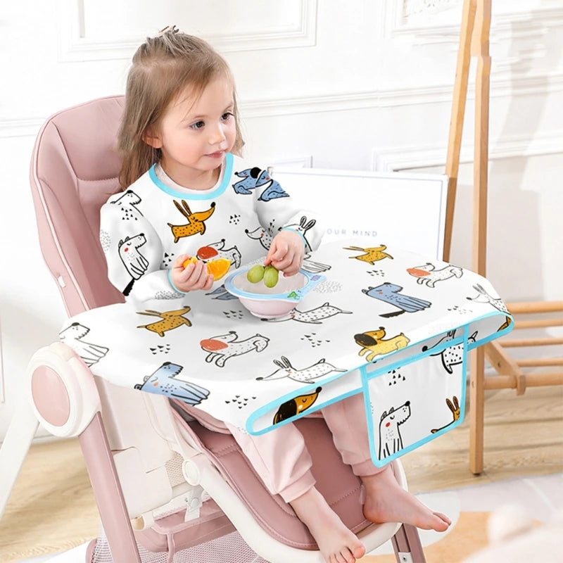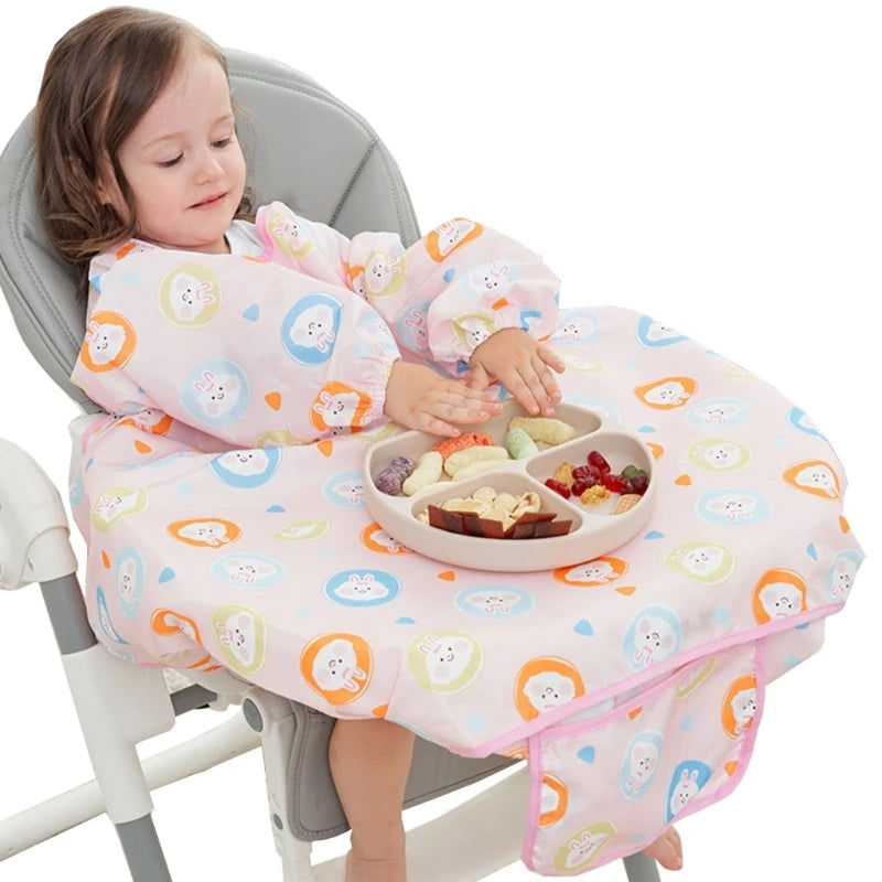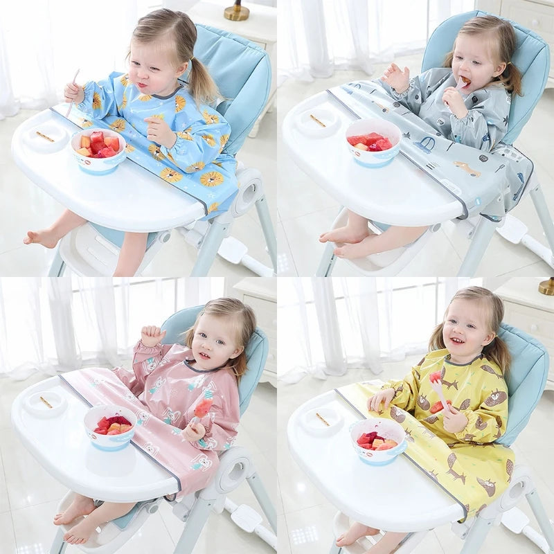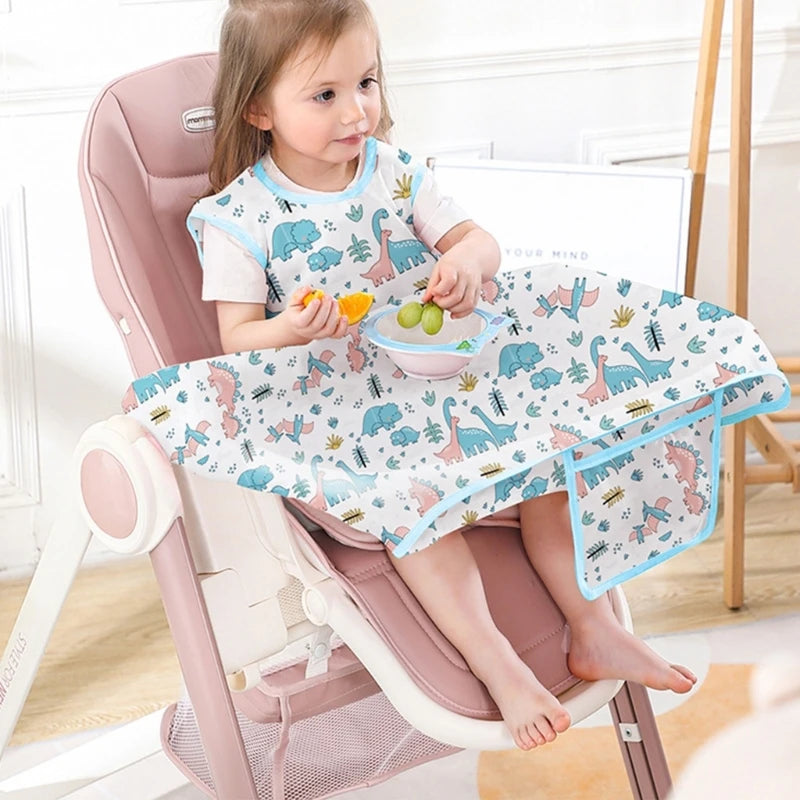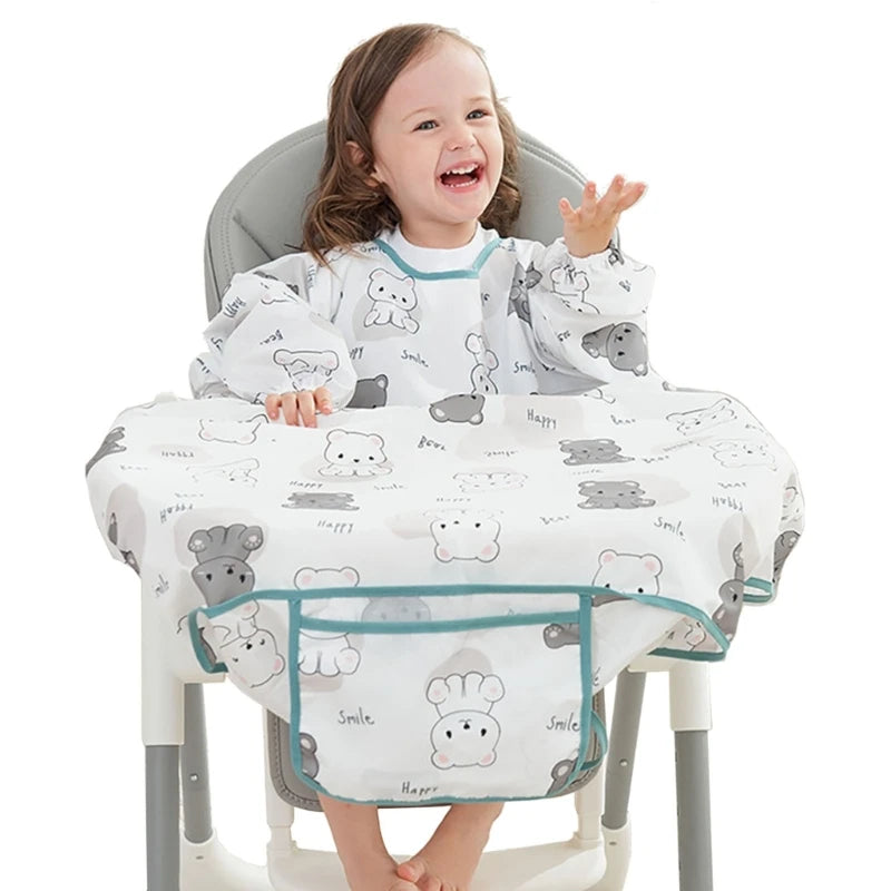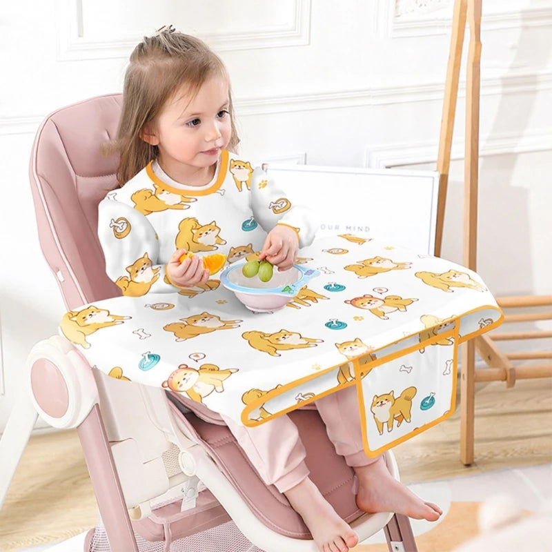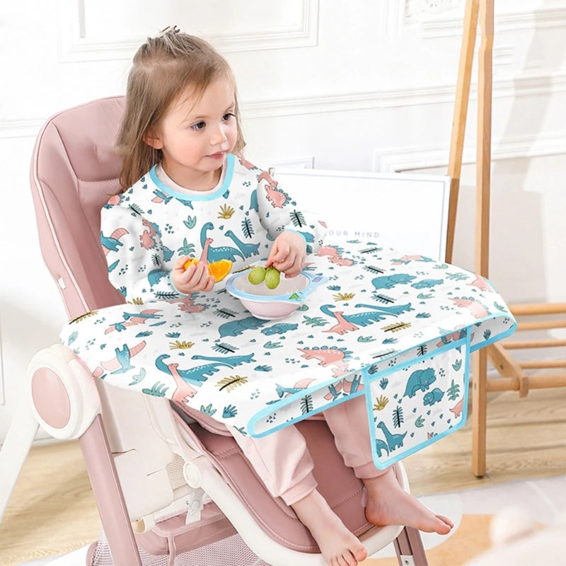 Newborn Long Sleeve Bib Coverall with Table Cloth Cover Baby Dining Chair Gow...