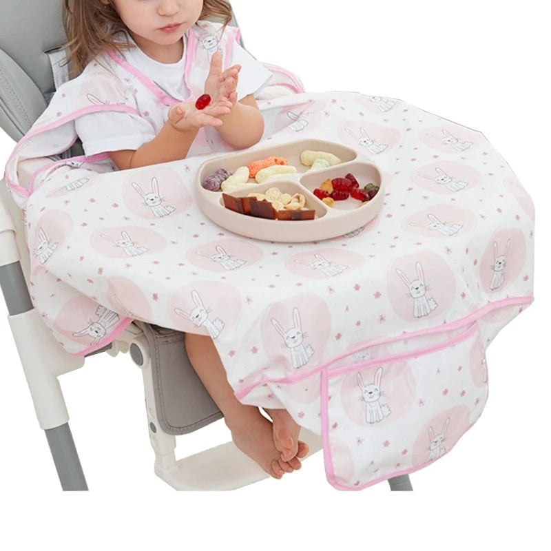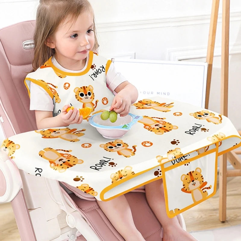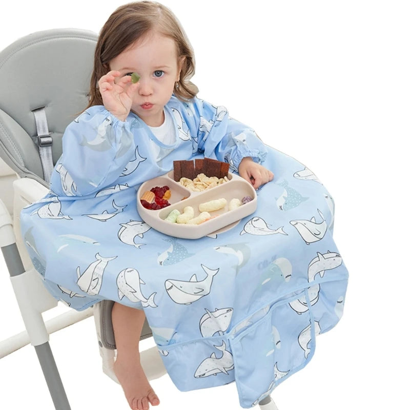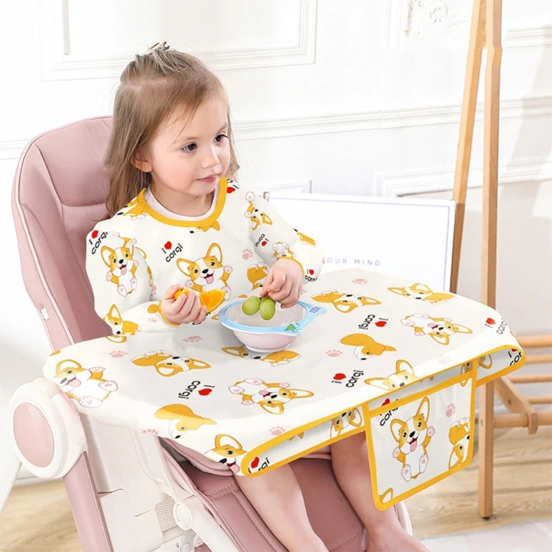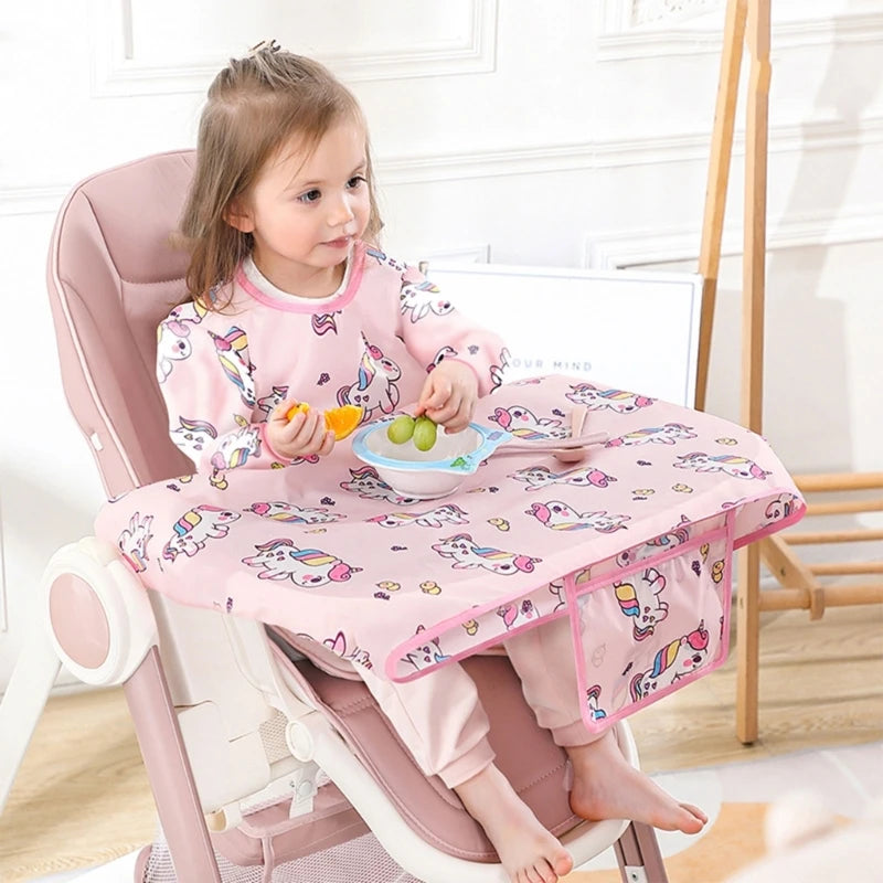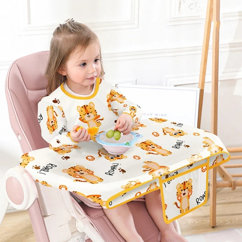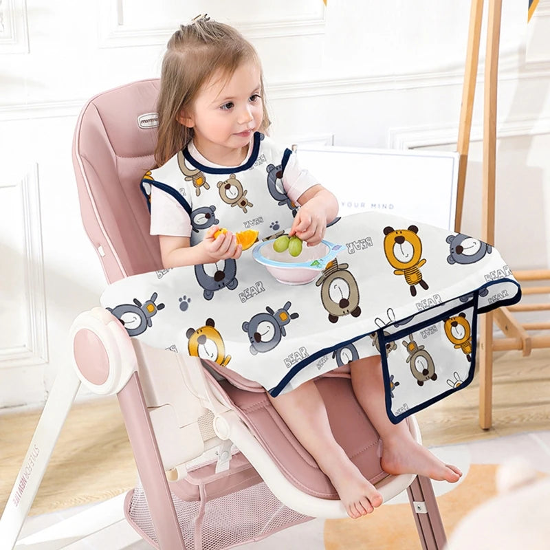Newborn Long Sleeve Bib Coverall with Table Cloth Cover Baby Dining Chair Gow...