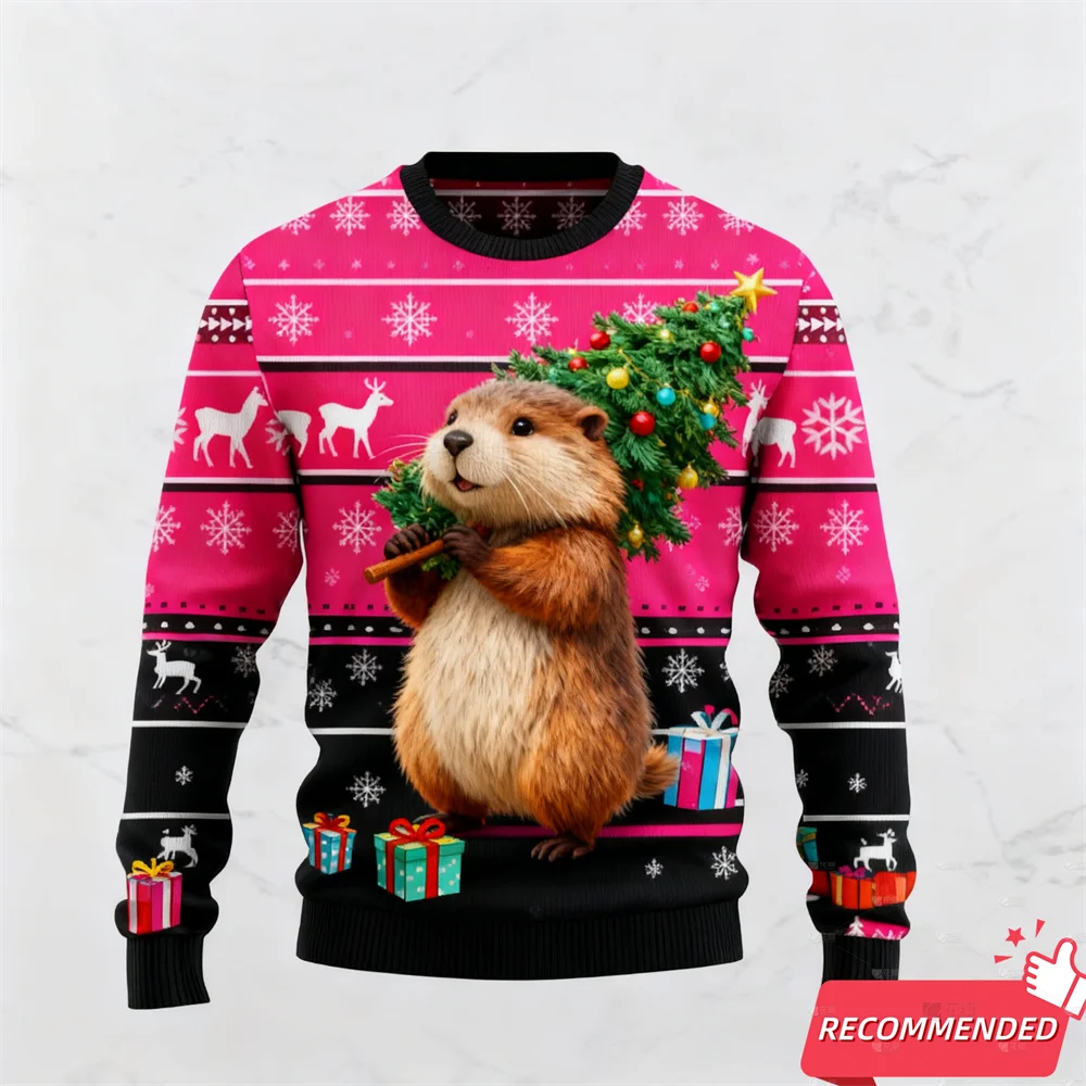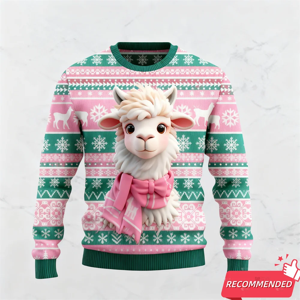 Funny Animals Graphic Ugly Christmas Sweatshirt Cute Alpaca Otter Flamingo Sw...