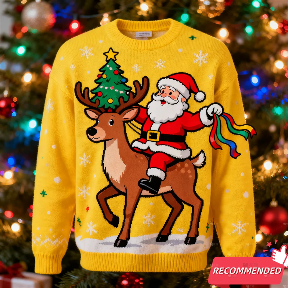 Santa Claus Ugly Sweatshirt For Men Funny Animal Elk Bear Graphic Sweatshirts...