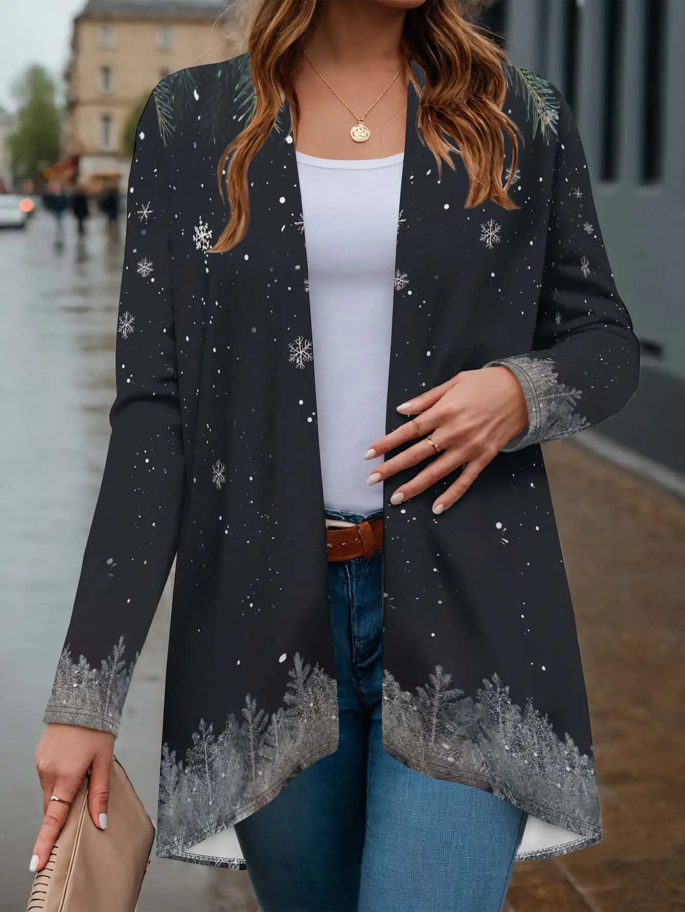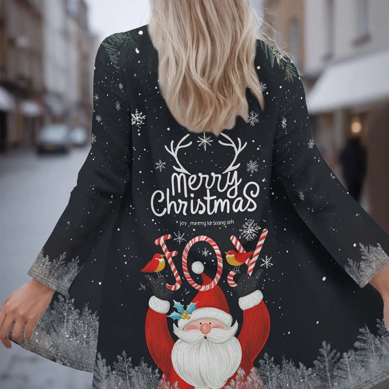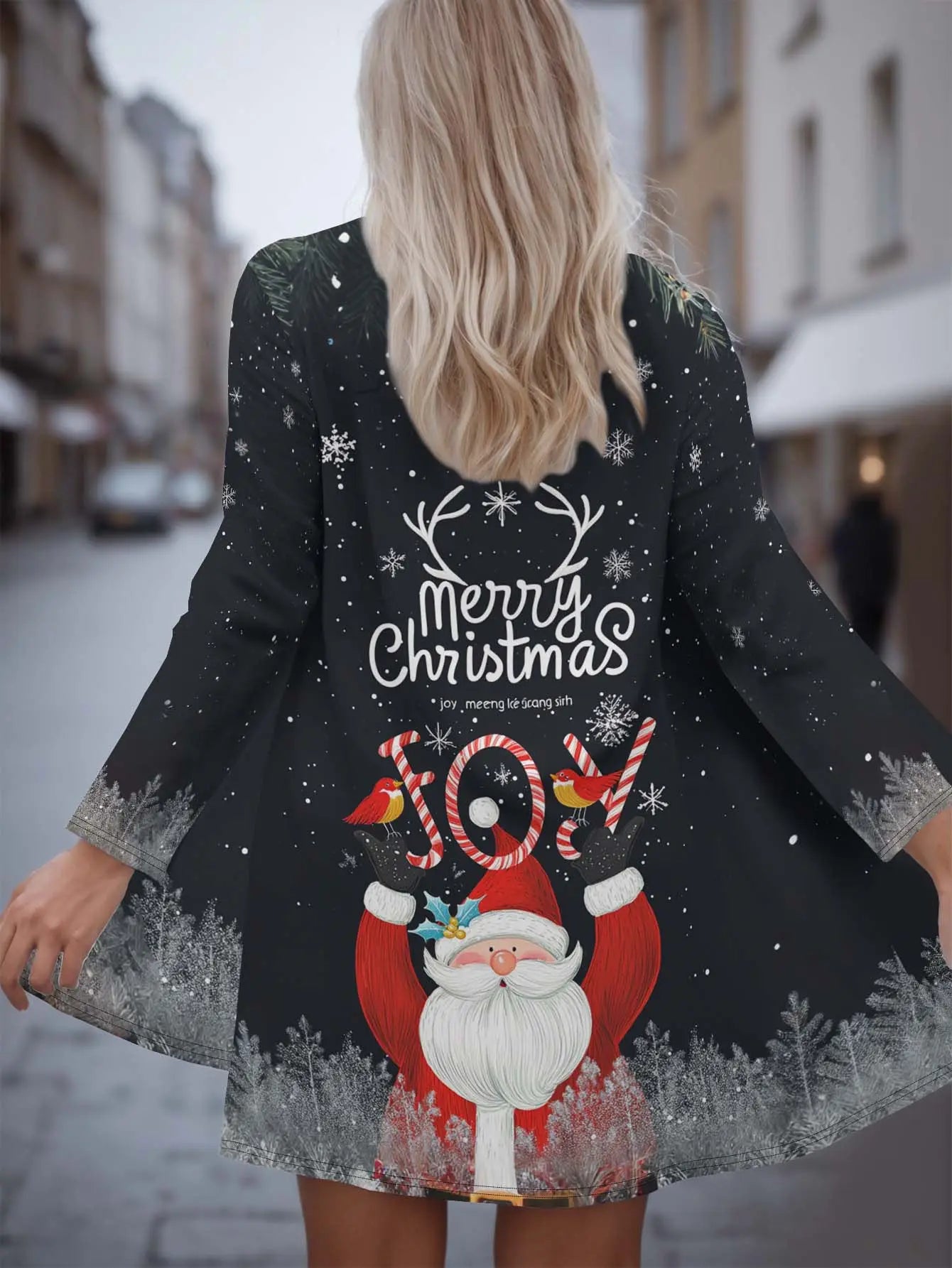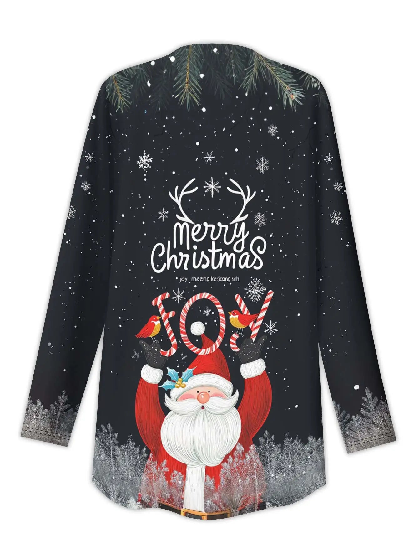 Women s Christmas Santa Print Cardigan, 3D Graphic Loose Fit, Long Sleeve Ope...