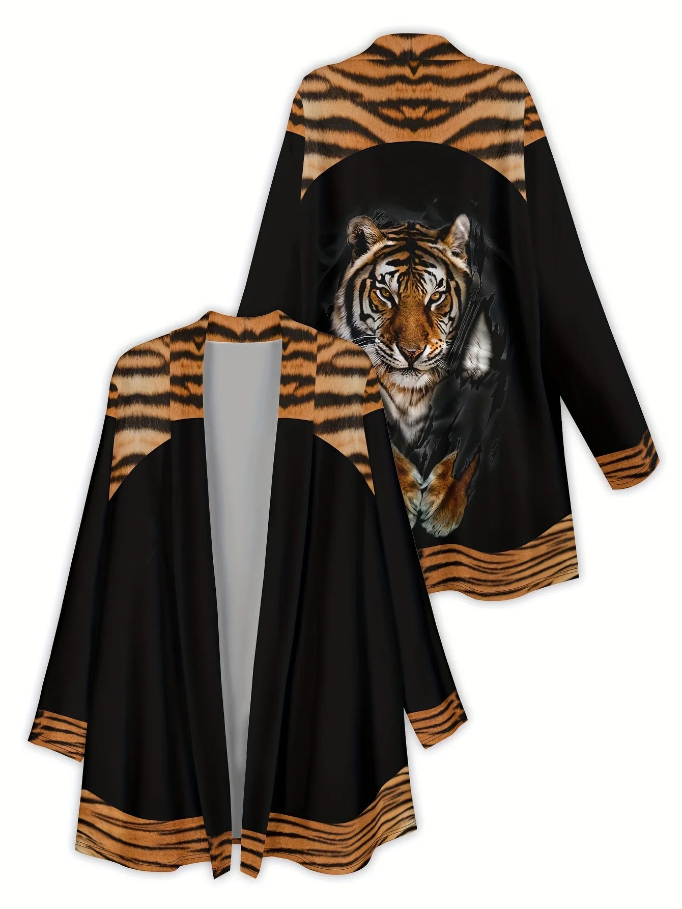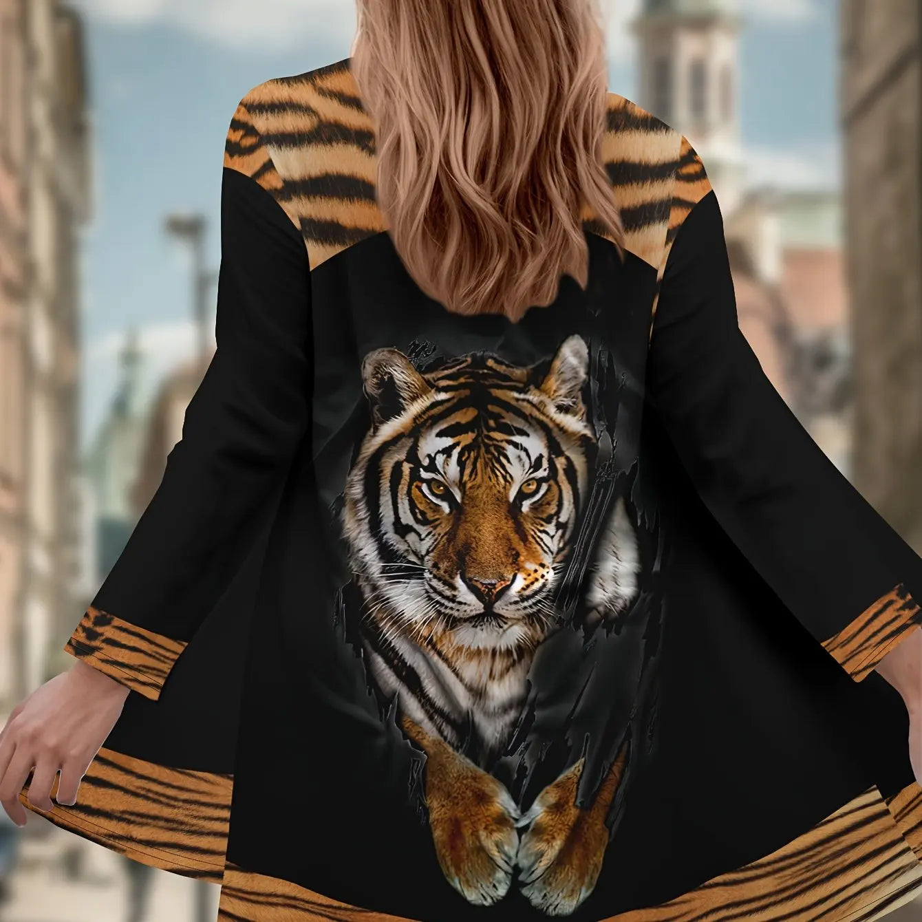 Women s Tiger Printed Long Sleeve Cardigan, Polyester Open Front, Lightweight...