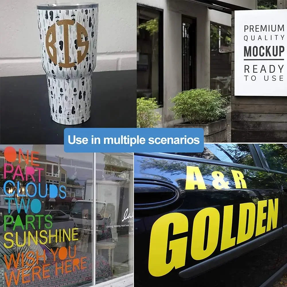 3.Our vinyl transfer tape roll is designed to work with Indoor/Outdoor Adhesive Vinyl .Easy transfer to any smooth surfaces like sign stickers, windows, walls, ceramics, glass, etc.