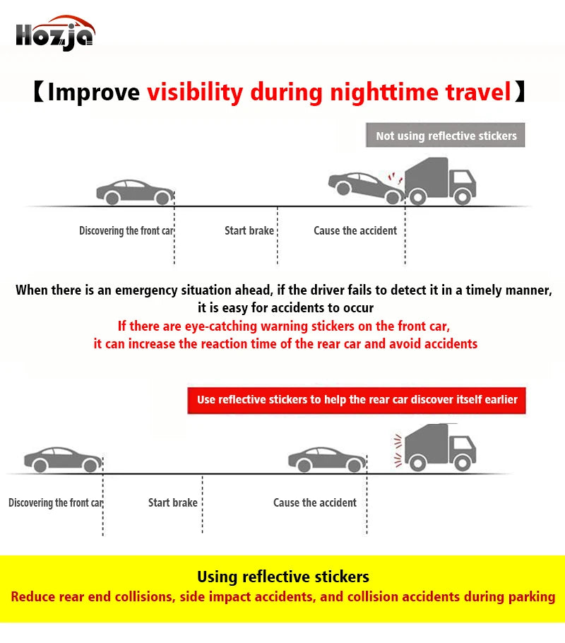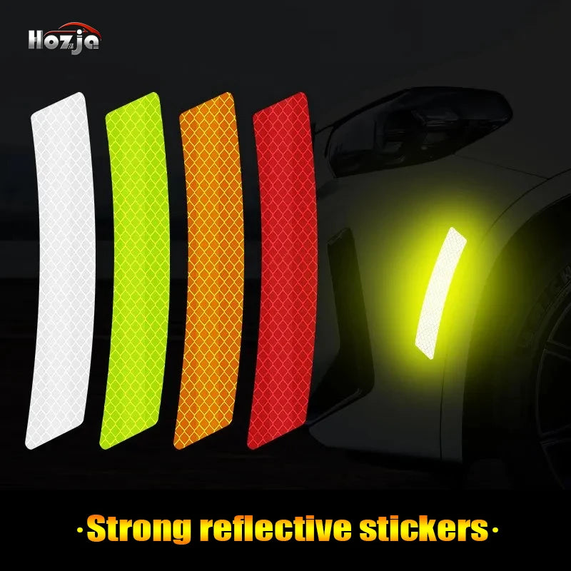 8pcs Car Reflective Sticker Car Bumper Reflective Warning Strip Stickers Whee...