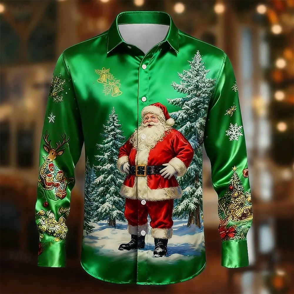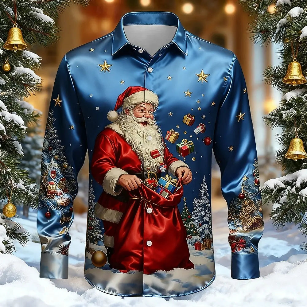Christmas Men s Santa Claus Christmas Tree Christmas Dress Shirts Long Sleeve...
