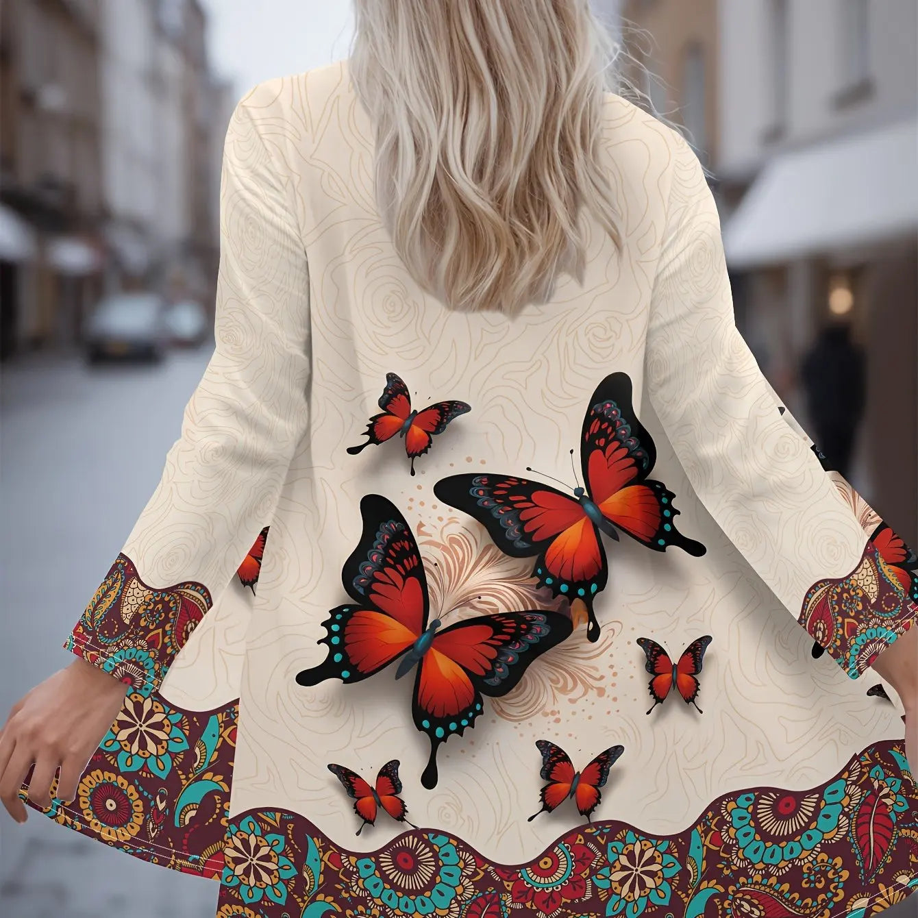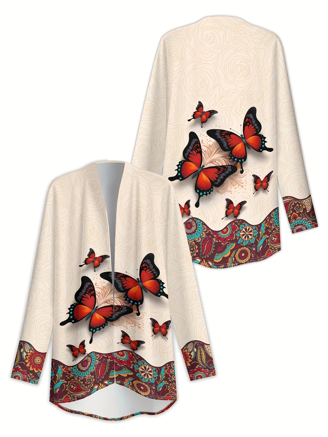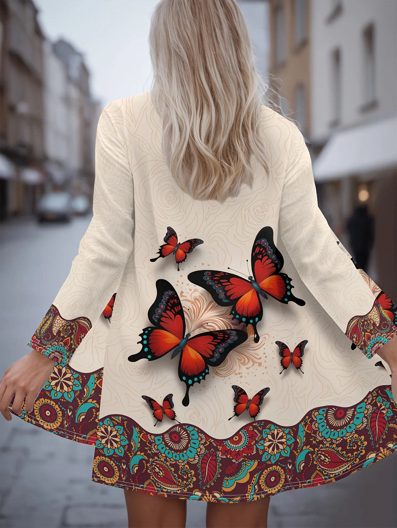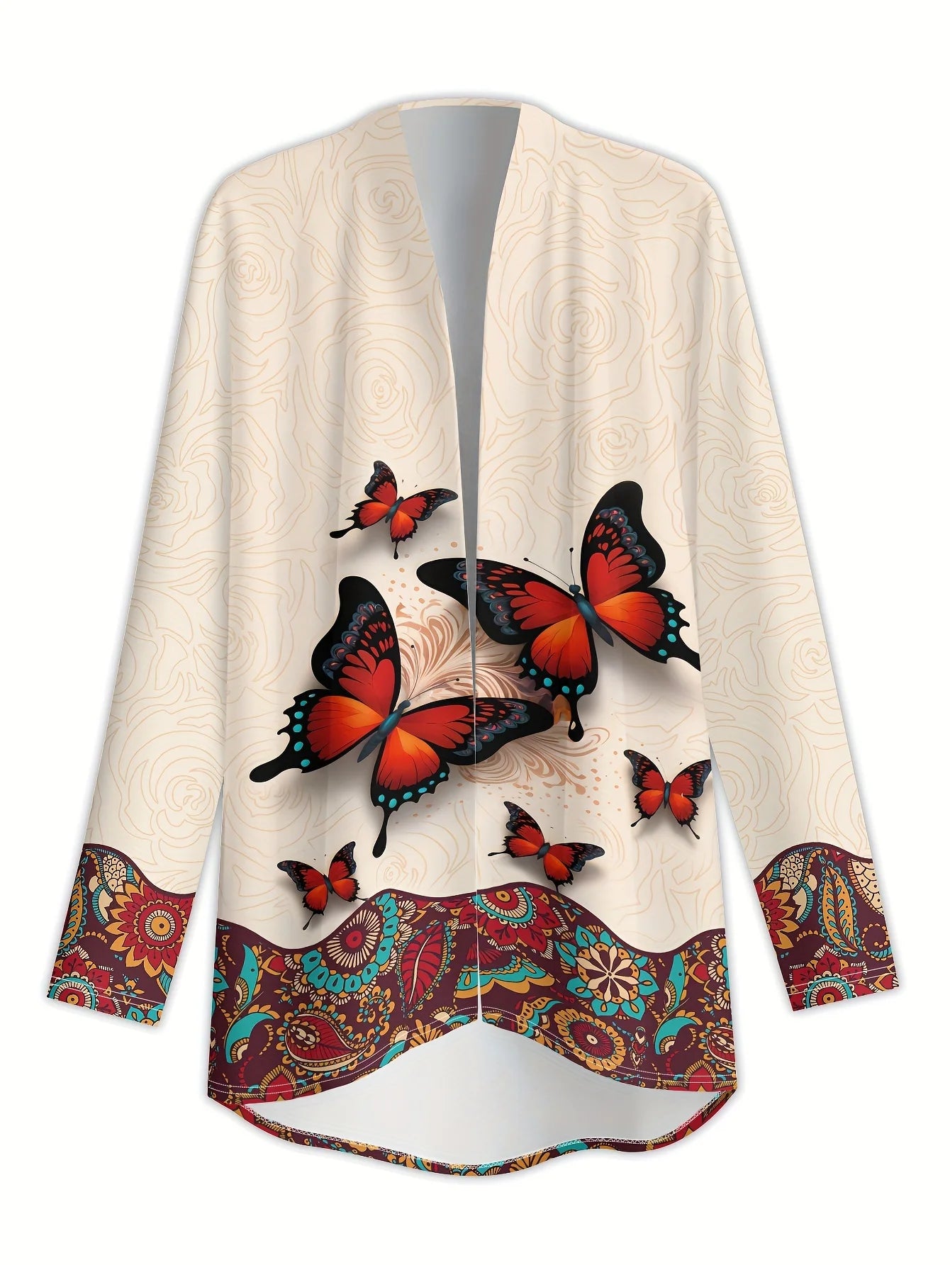 Fashion Women s Ethnic Style Printed Long Sleeve Cardigan, Polyester Open Fro...