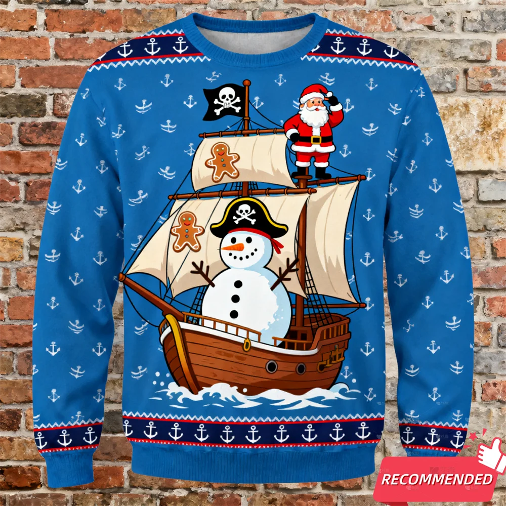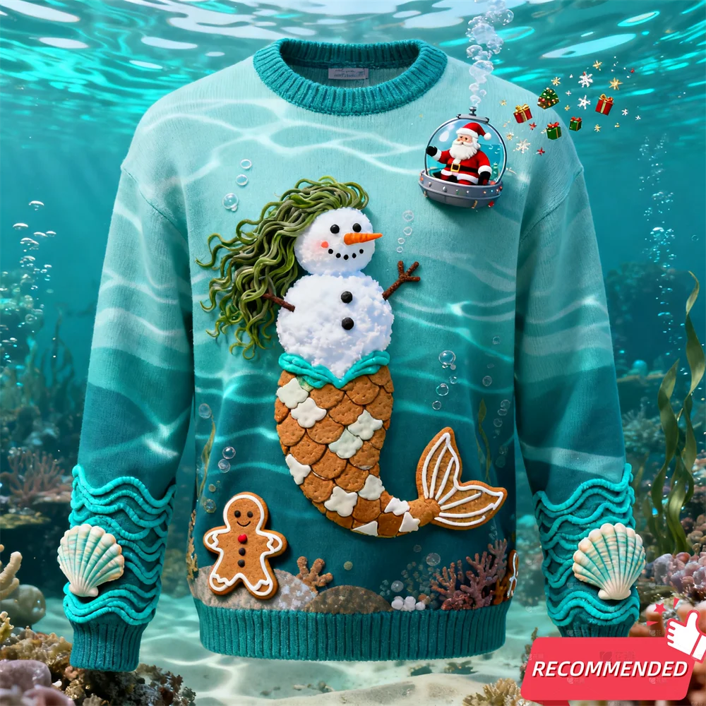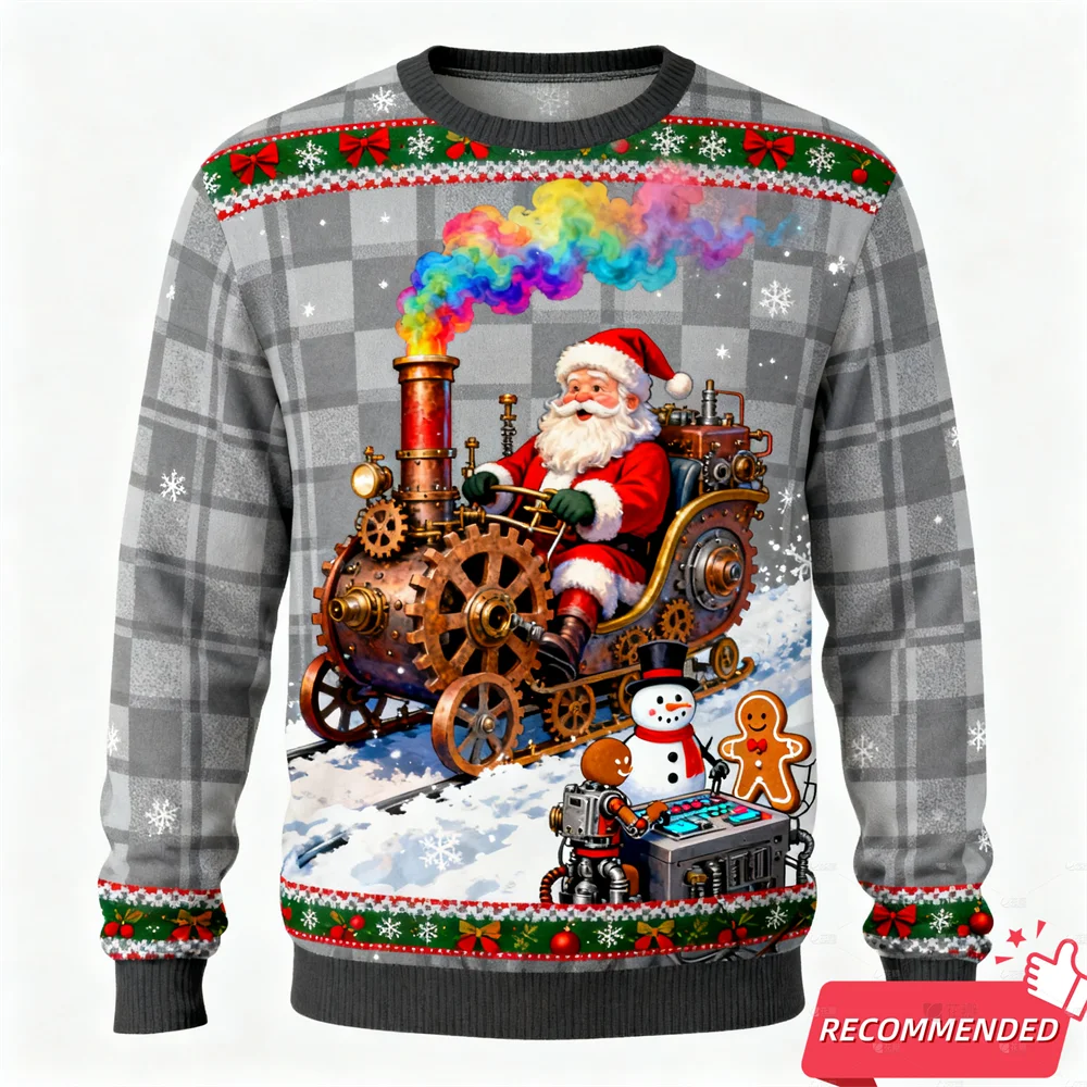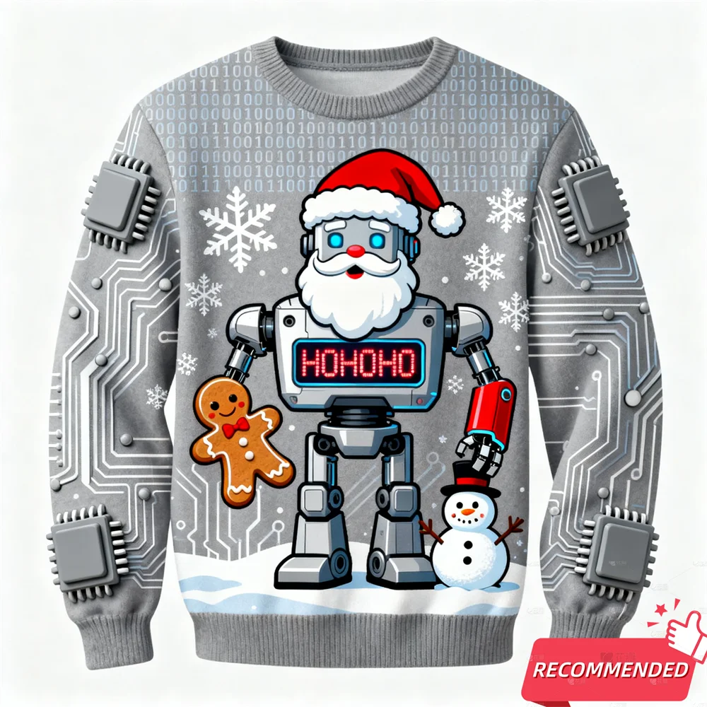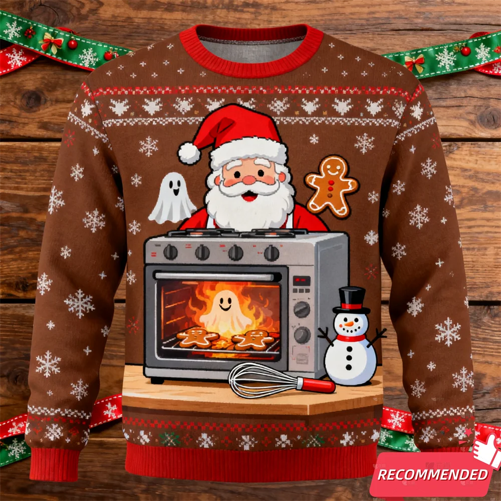 Funny Santa Snowman Men s Ugly Sweatshirts Gingerbread Man 3D Print Graphic L...