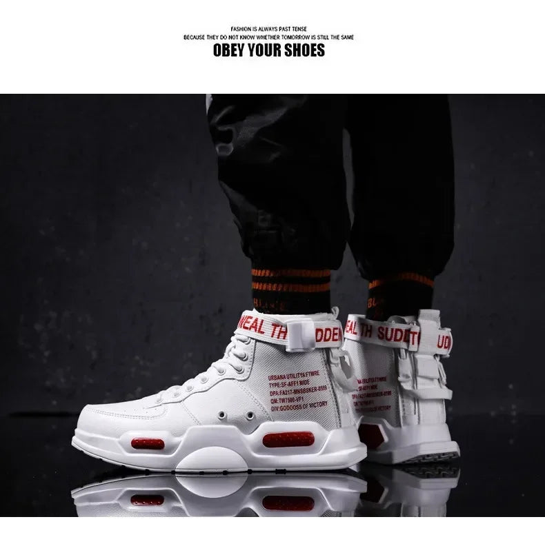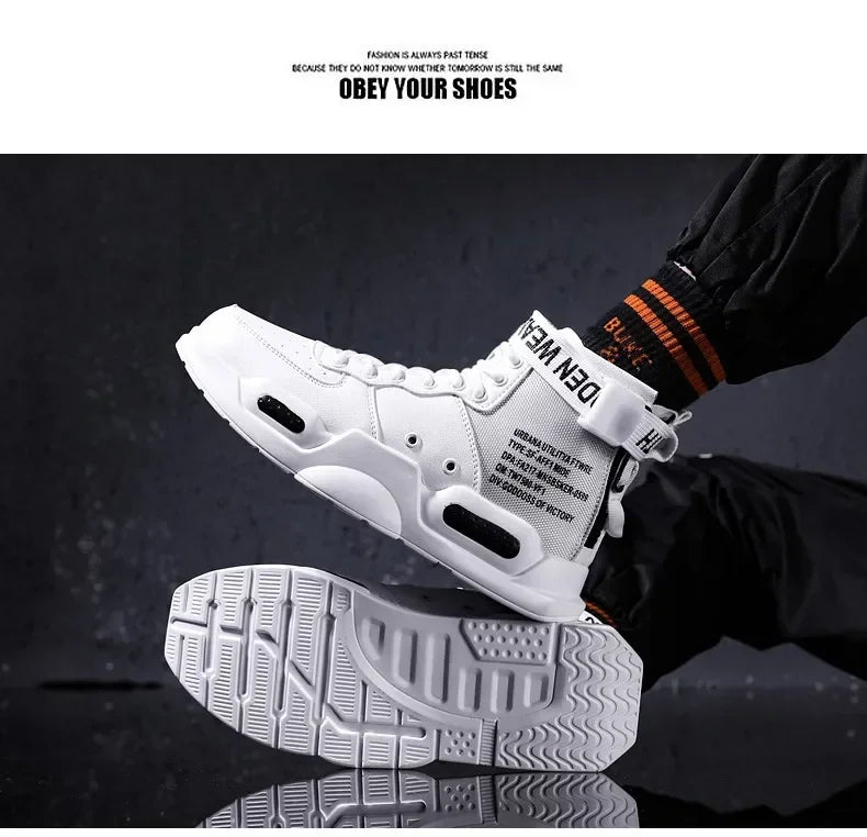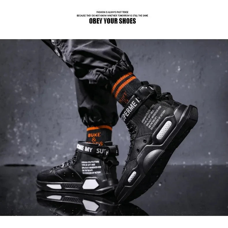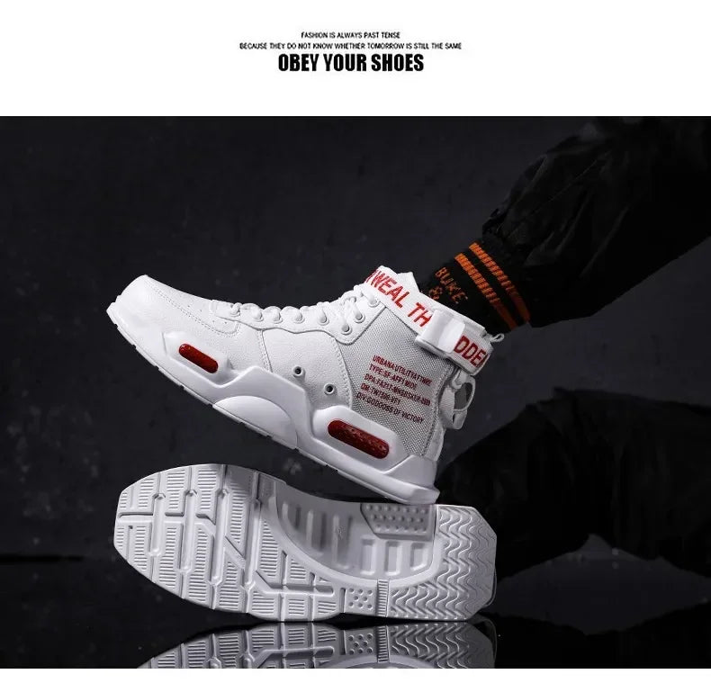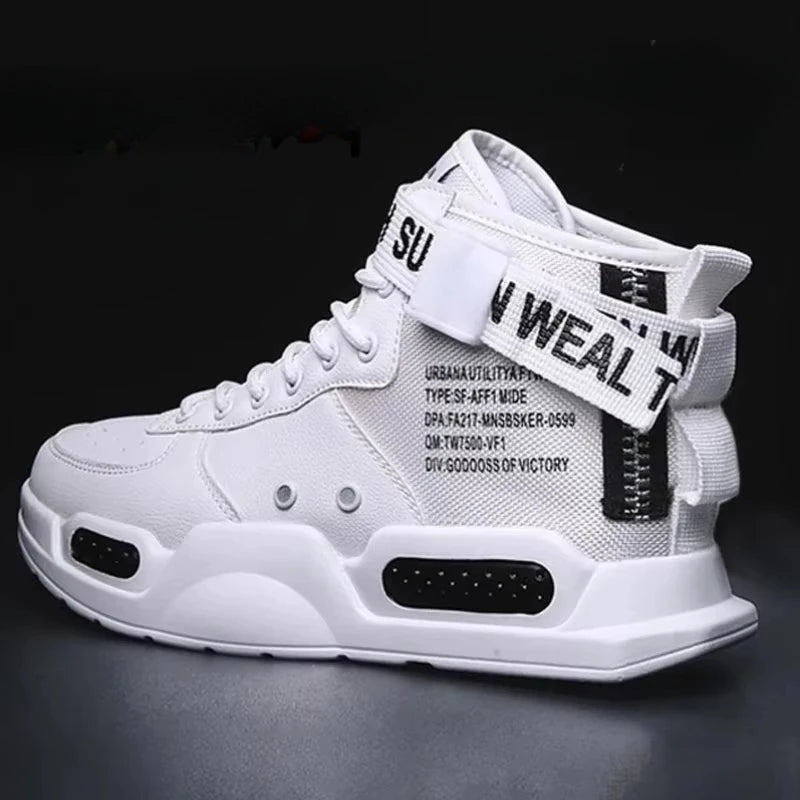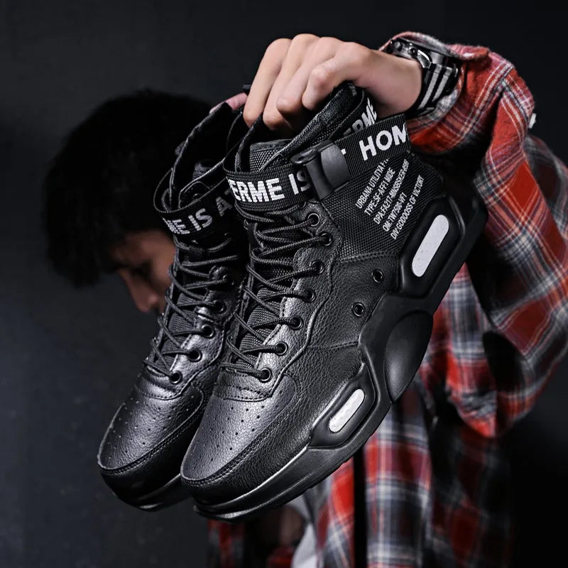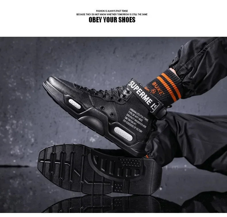 Men s High Top Fashion Leather Sneakers Trend Men Shoes Comfortable Men Baske...