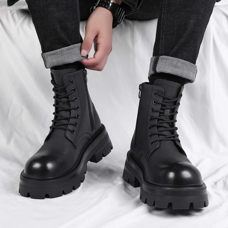 Men s Lace Up High Top Ankle Boot For Autumn And Winter Fashion Thick Soled C...