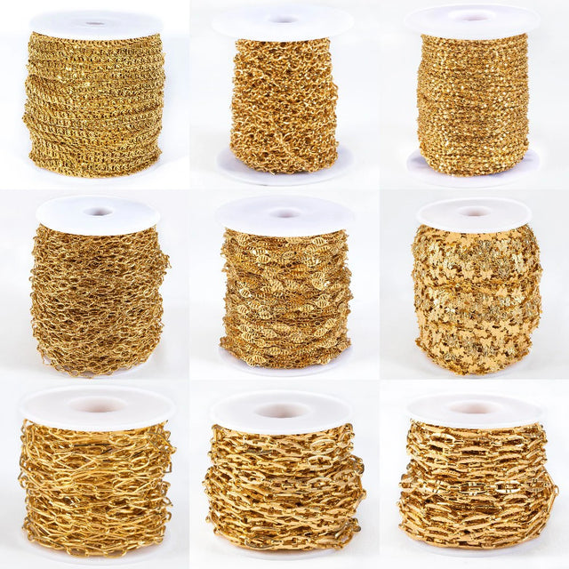 No Fade 1Meter Stainless Steel Gold Color Multi Styles Link Chain Bulk Chains for DIY Necklace Bracelet J...