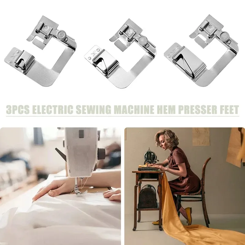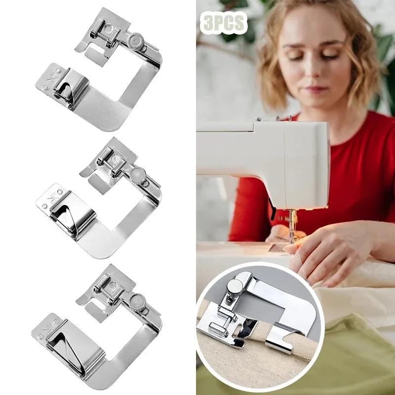 Sewing Hemming Set 3Pcs Wide Hem Foot Or 3Pcs Narrow Rolled Hem Presser Feet For Brother Singer Low Shank...