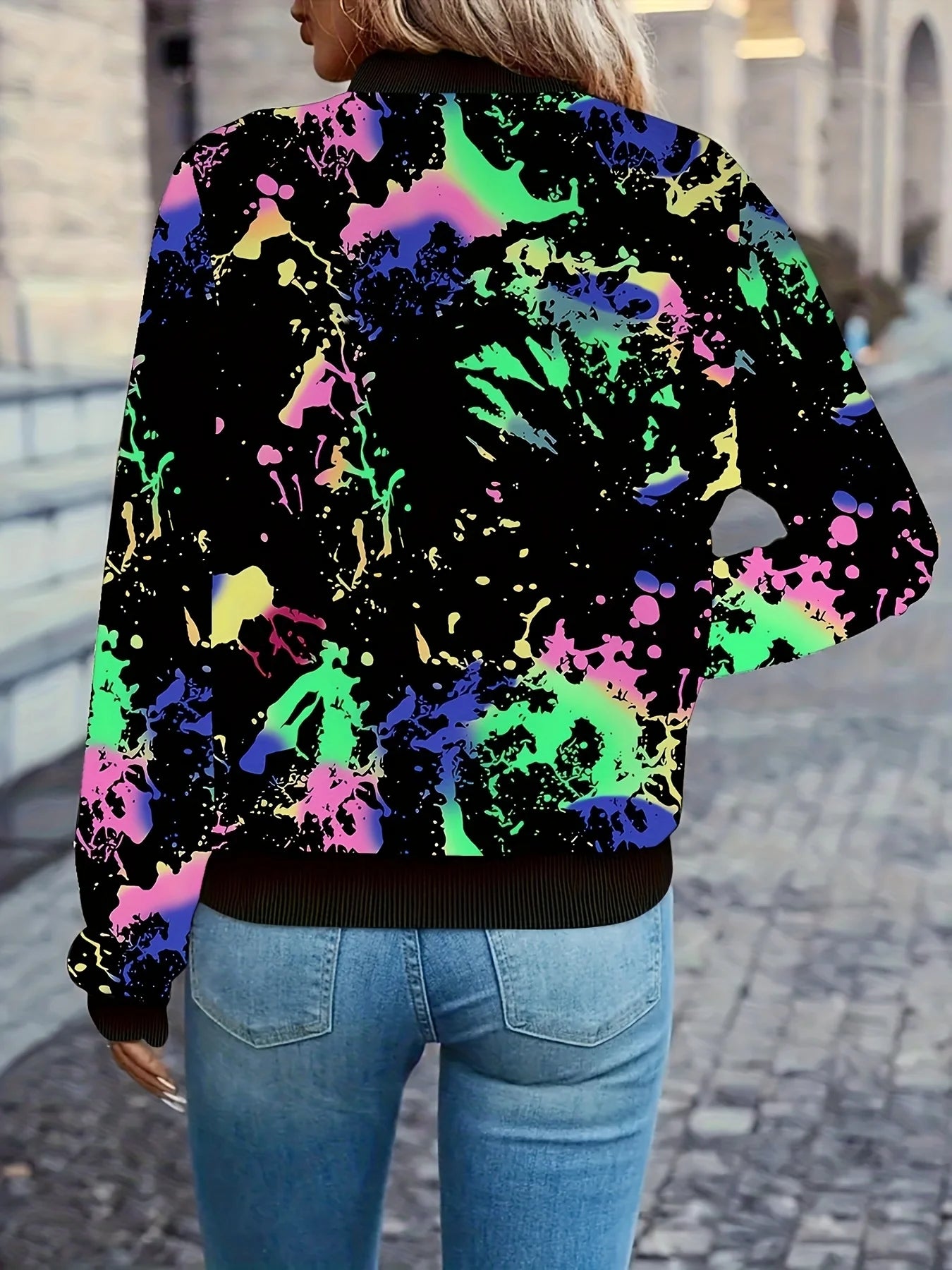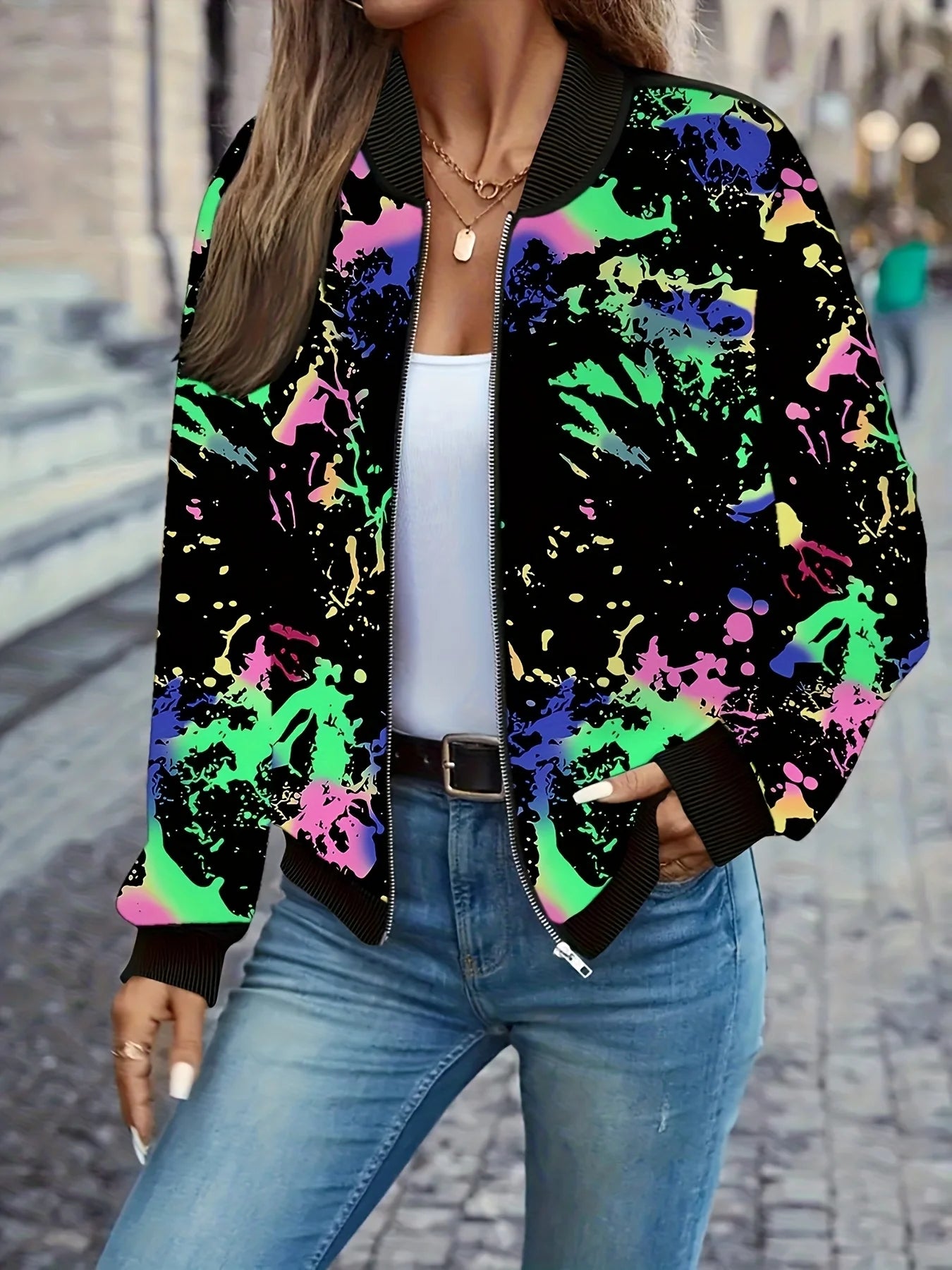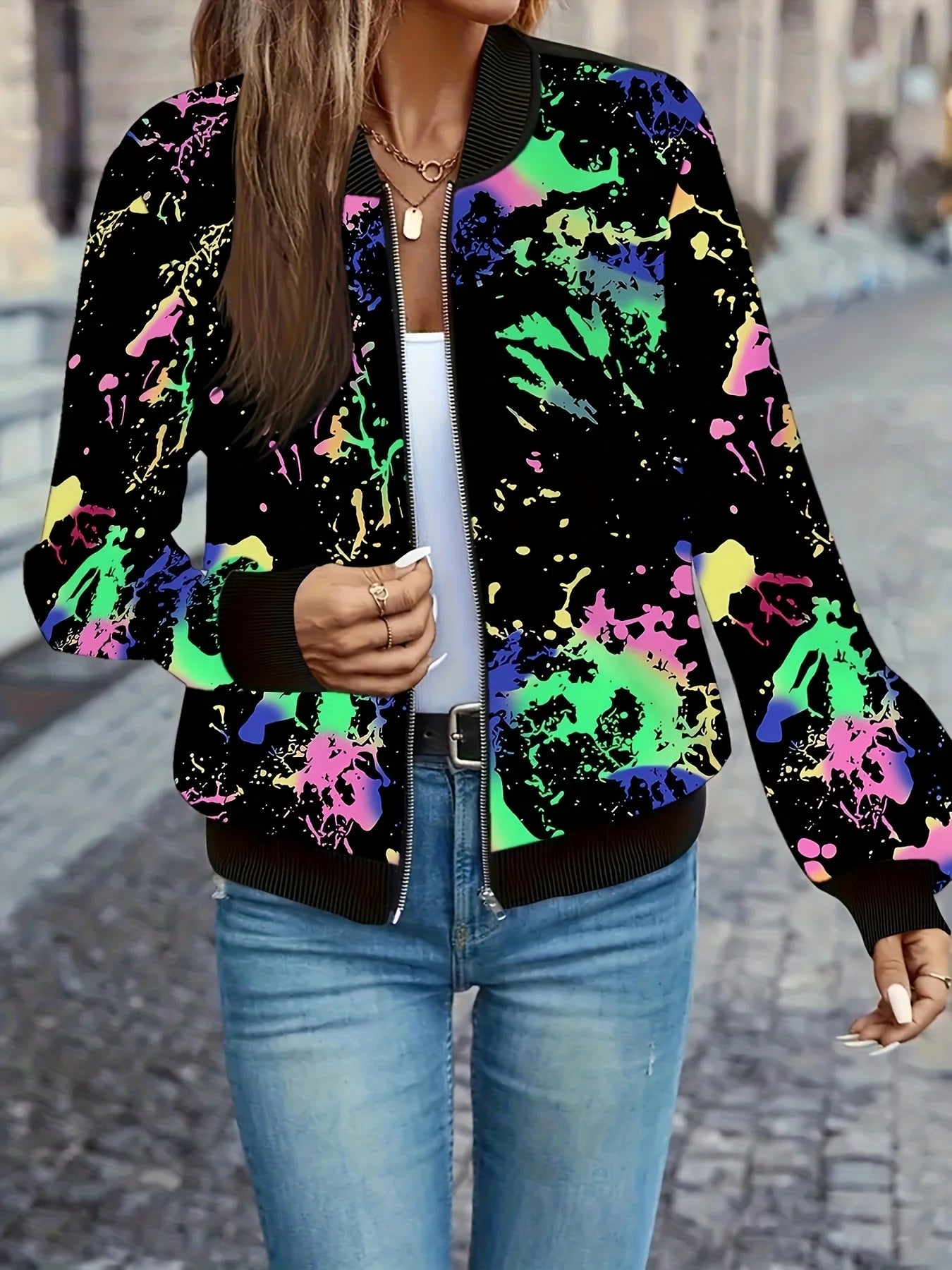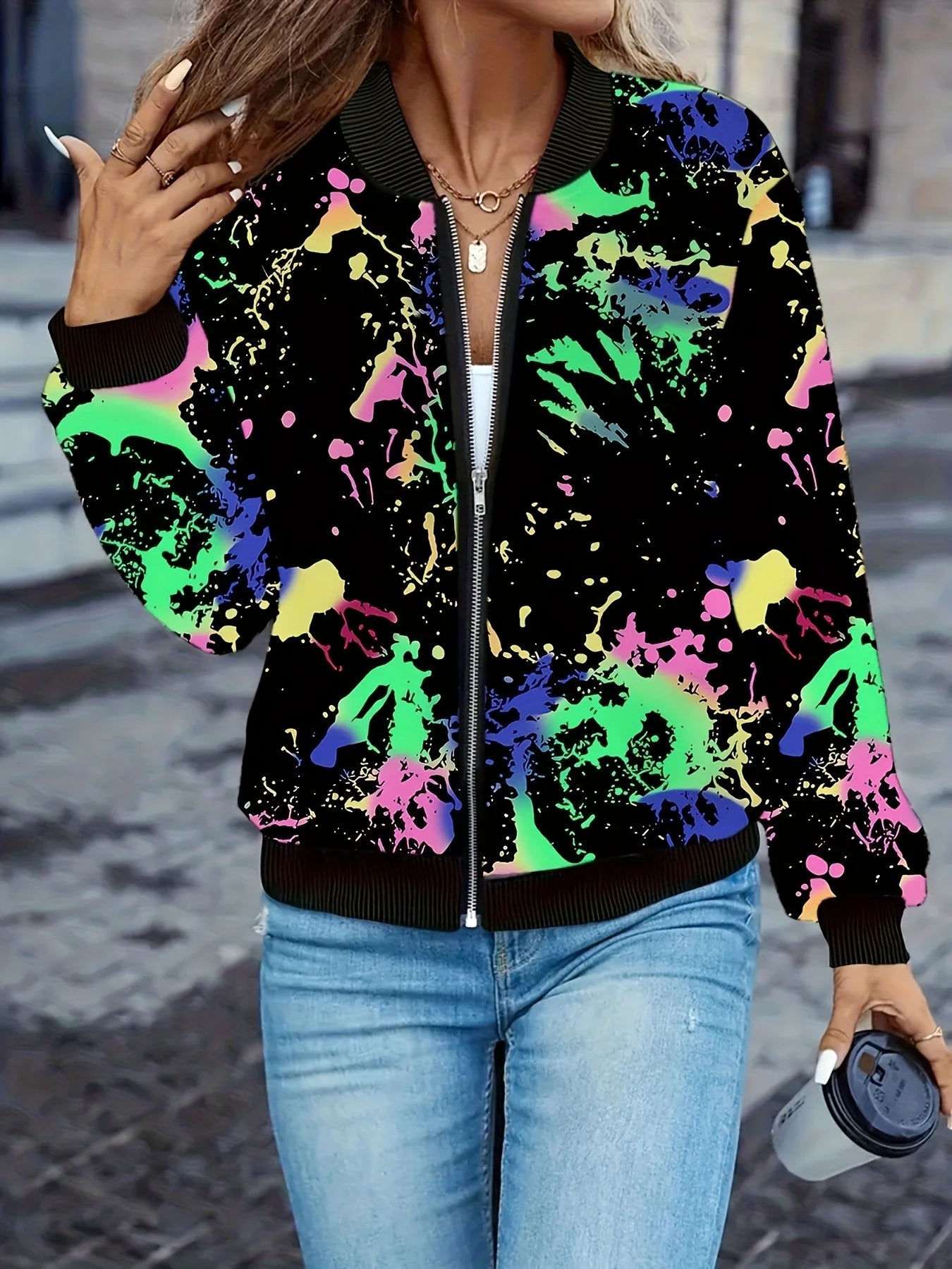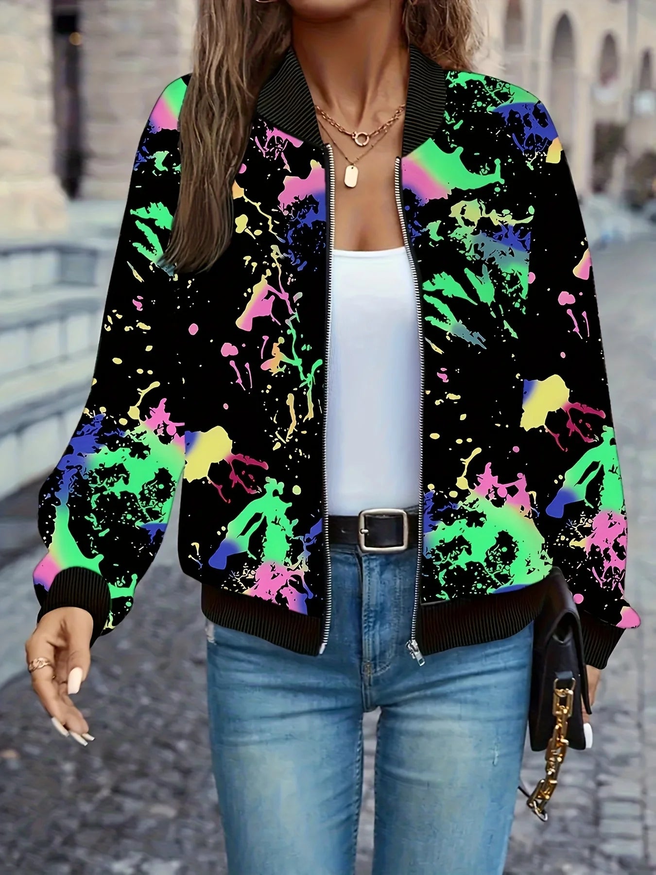 Women s 3D Print Jacket, Colorful Pattern Design, Casual Zip Up Coat, Spring ...