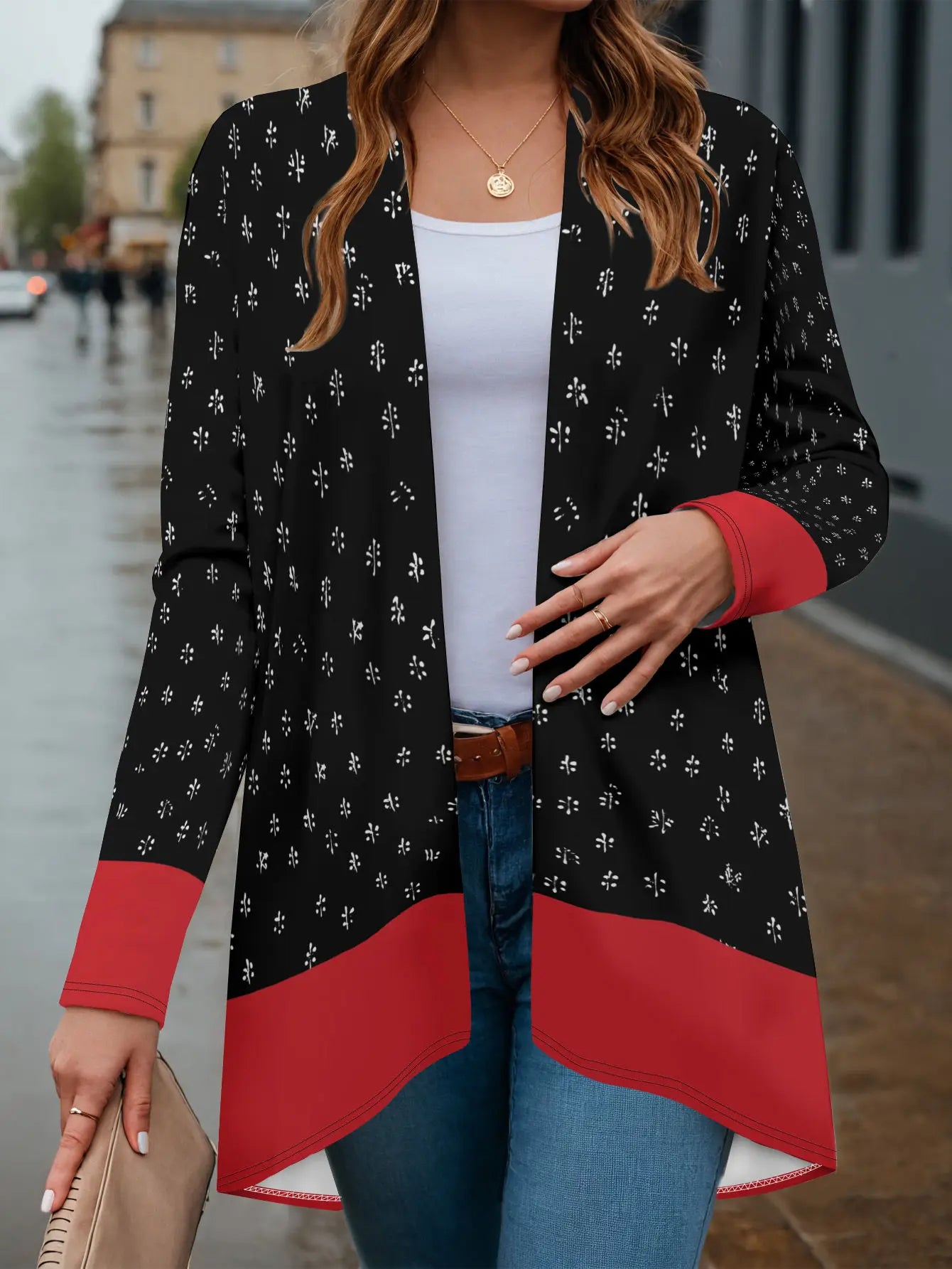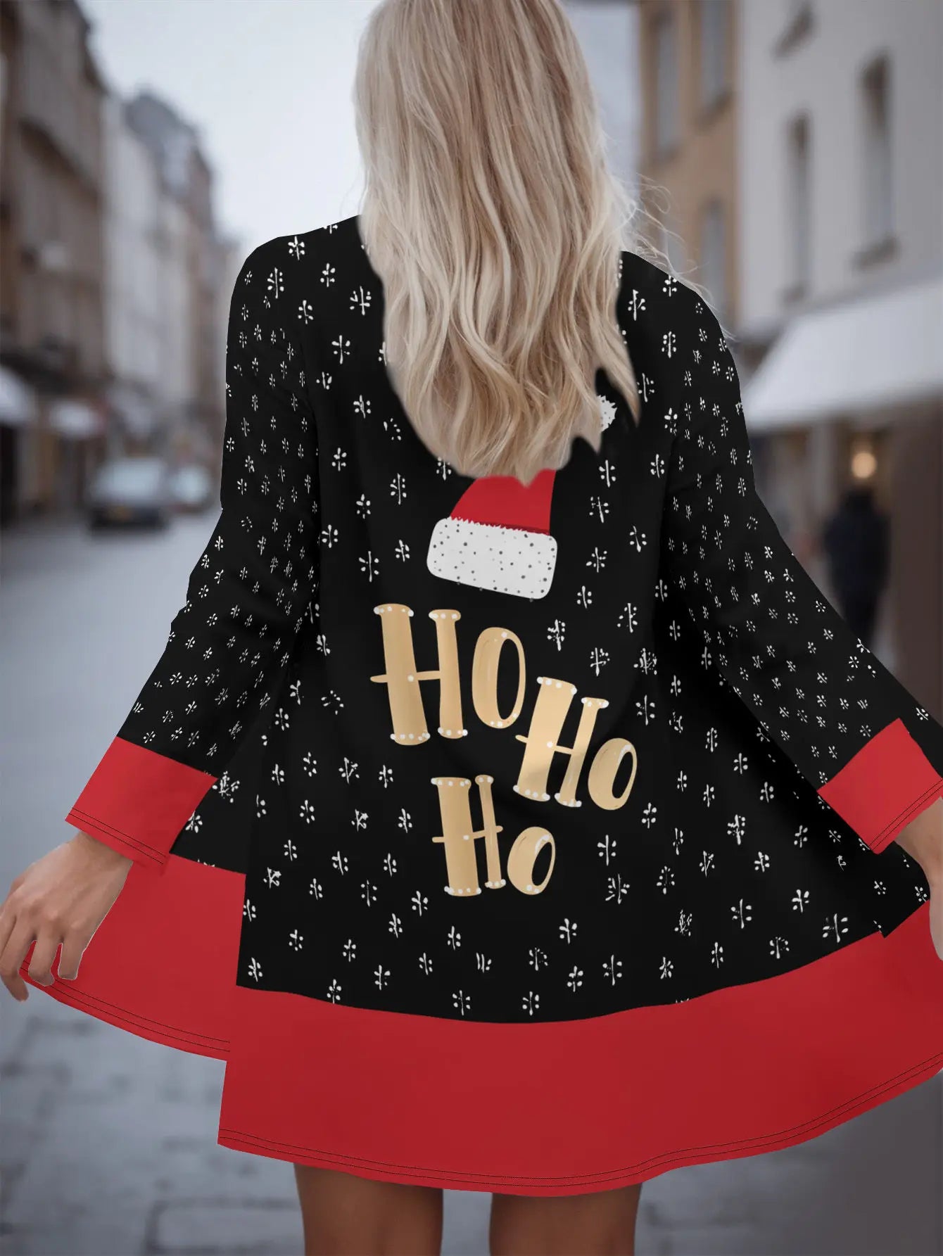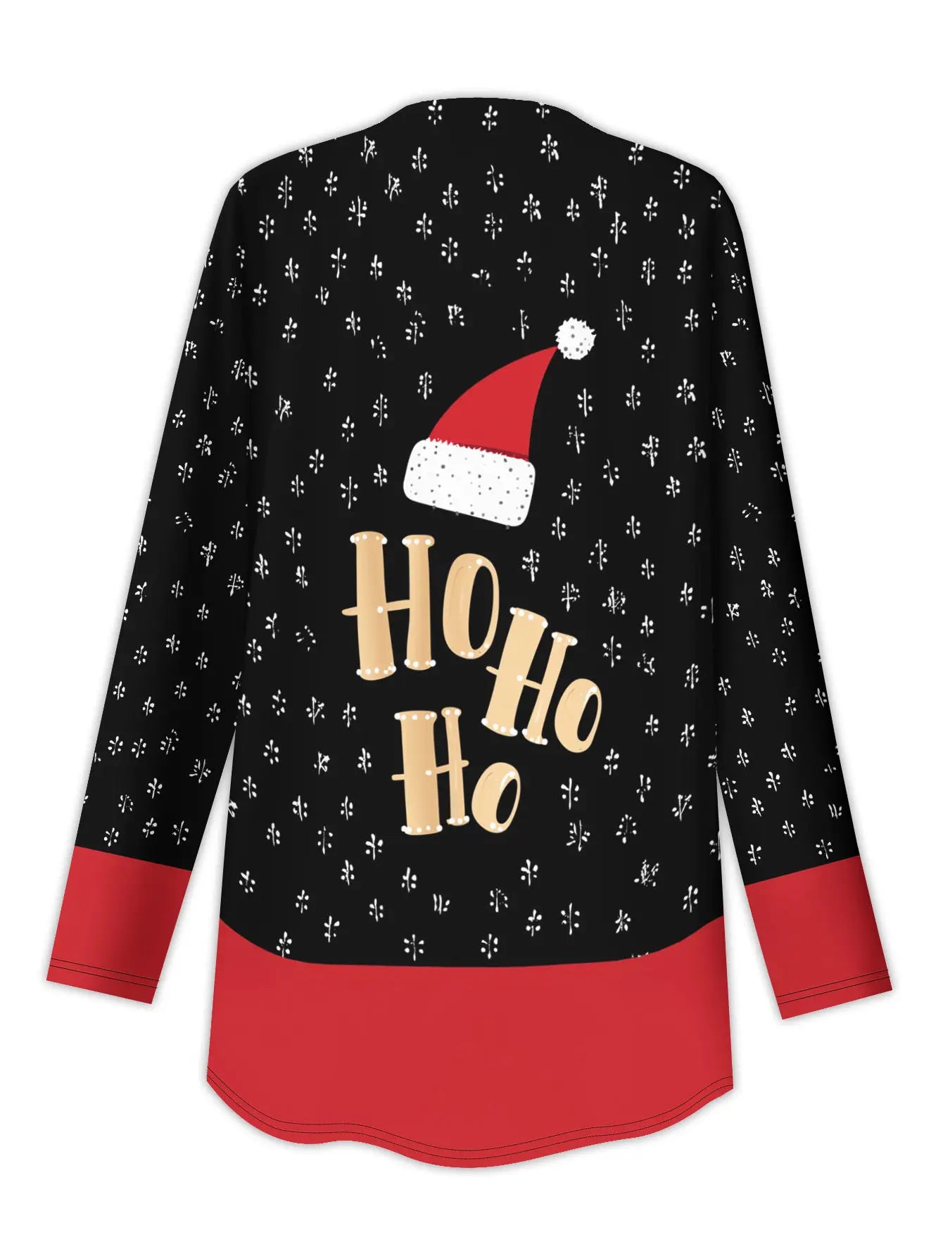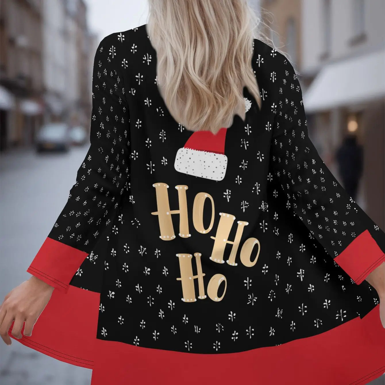 Women s 3D Santa HoHoHo & Snowflake Coat, Red Black Golden Print, Long Sleeve...