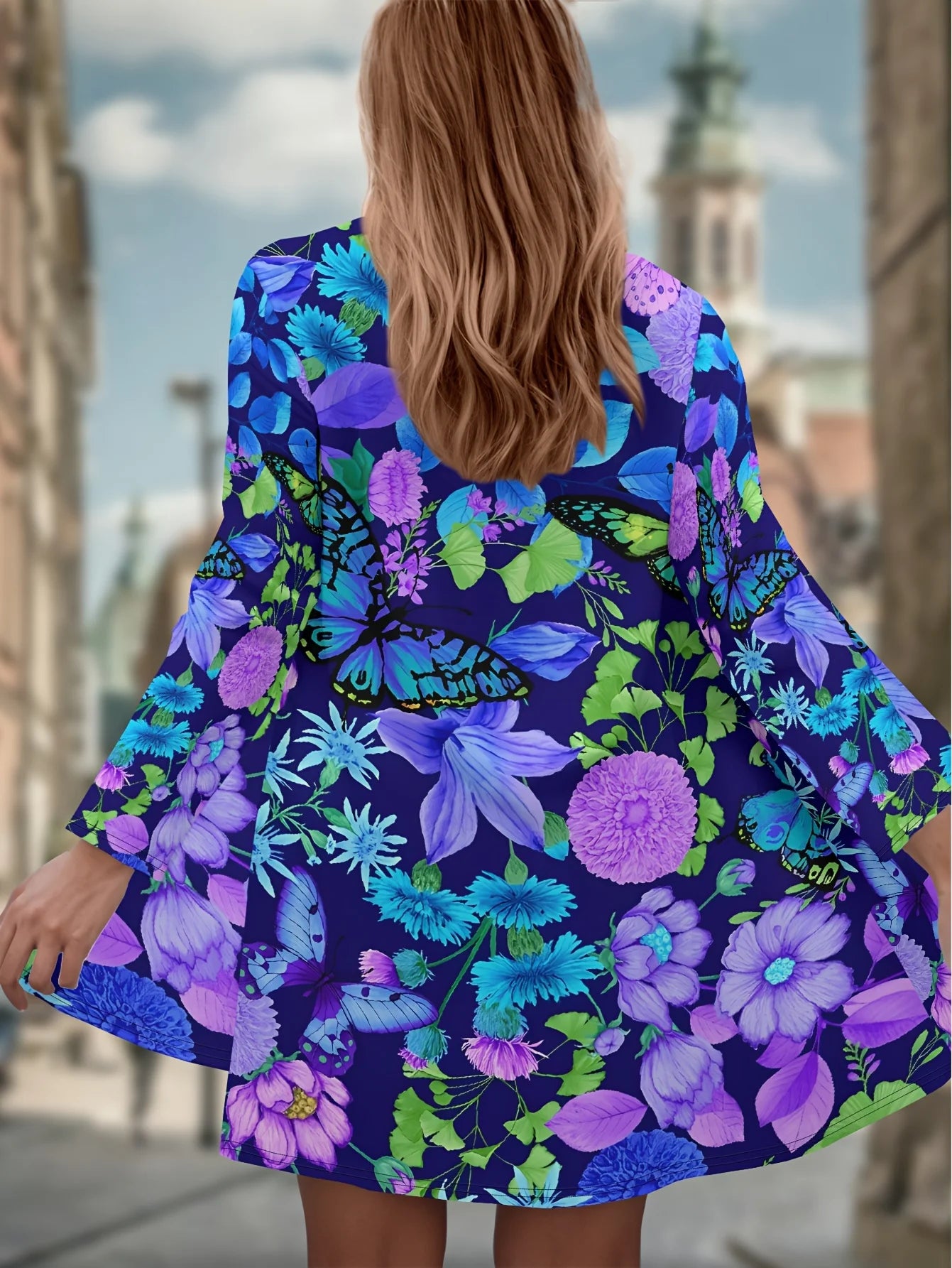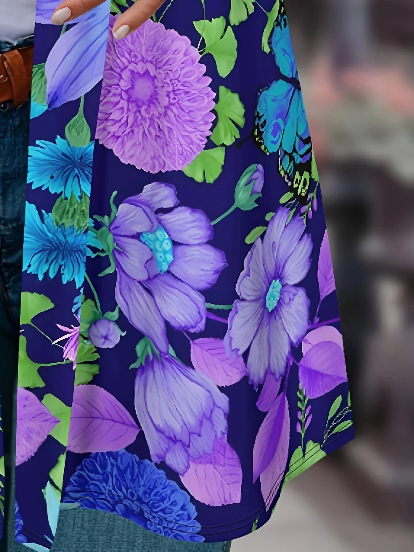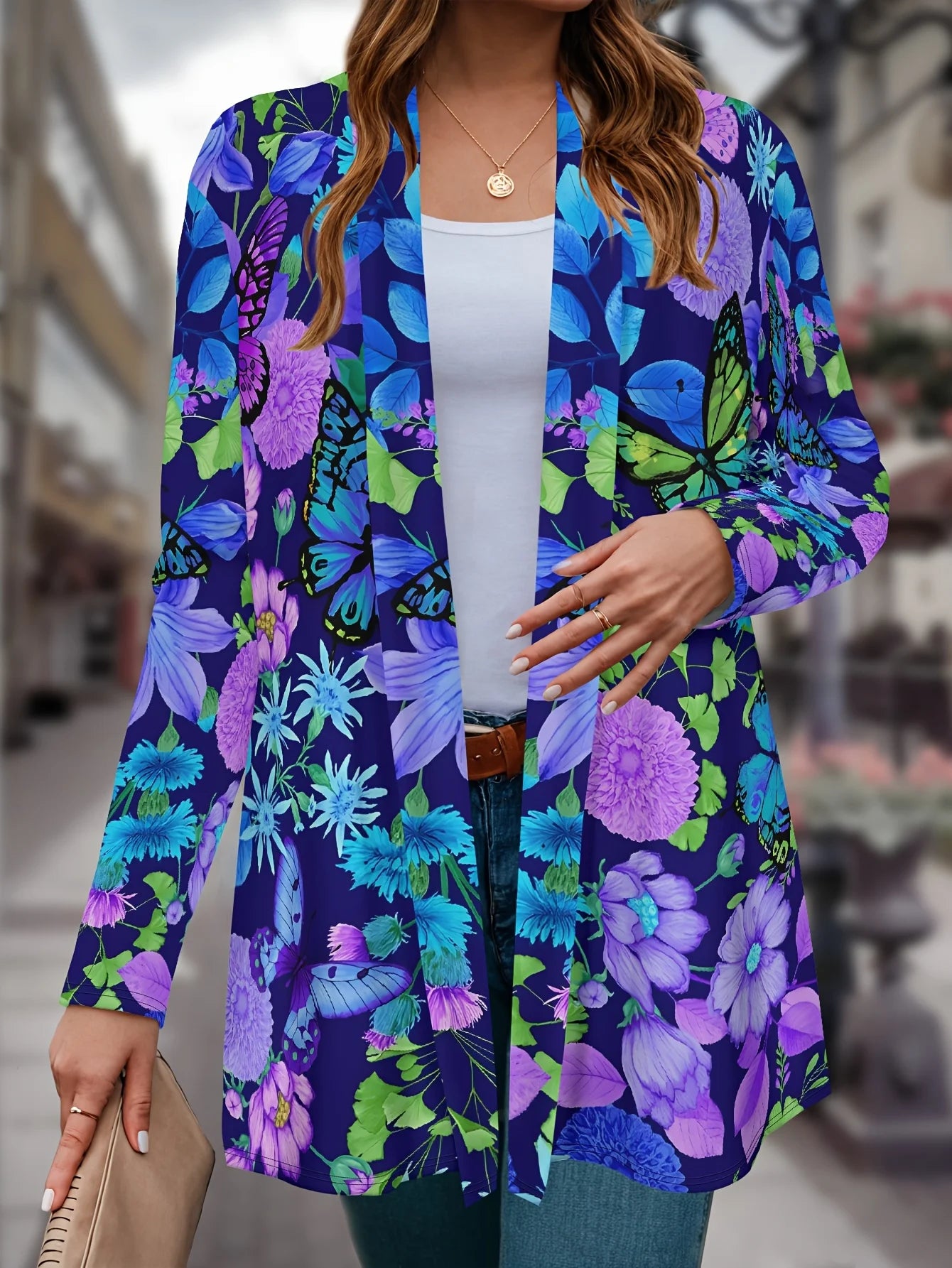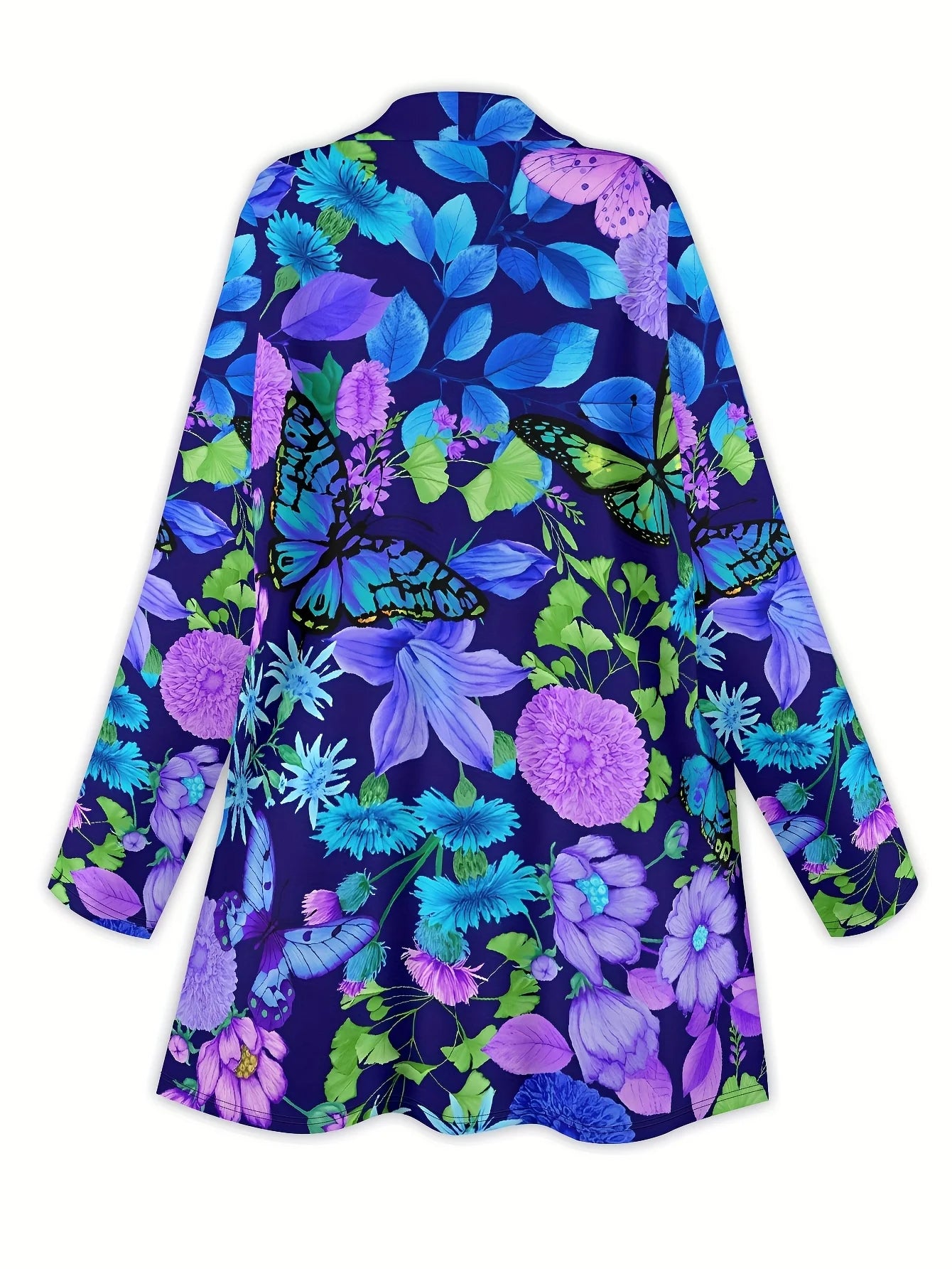 Women s Floral Butterfly Print Cardigan, Vibrant Purple Blue Design, Lightwei...