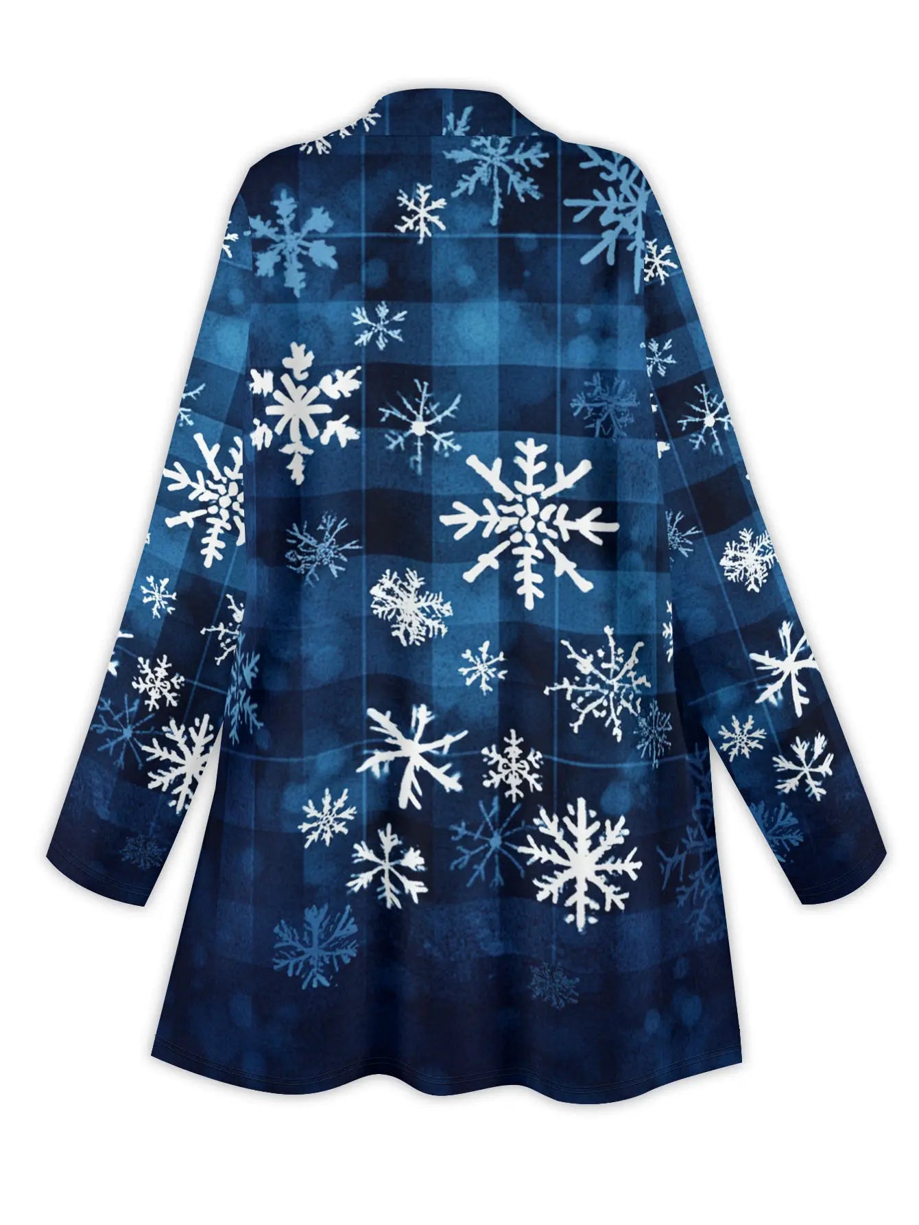 Women s Snowflake Plaid Coat, 3D Collar Button Front, Dark Blue White Design,...