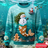 Women s Gnome Snowflake Cardigan, Turquoise Green 3D Prin...