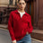 Bornladies Autumn Winter Simple Casual Polo Collar Pullov...