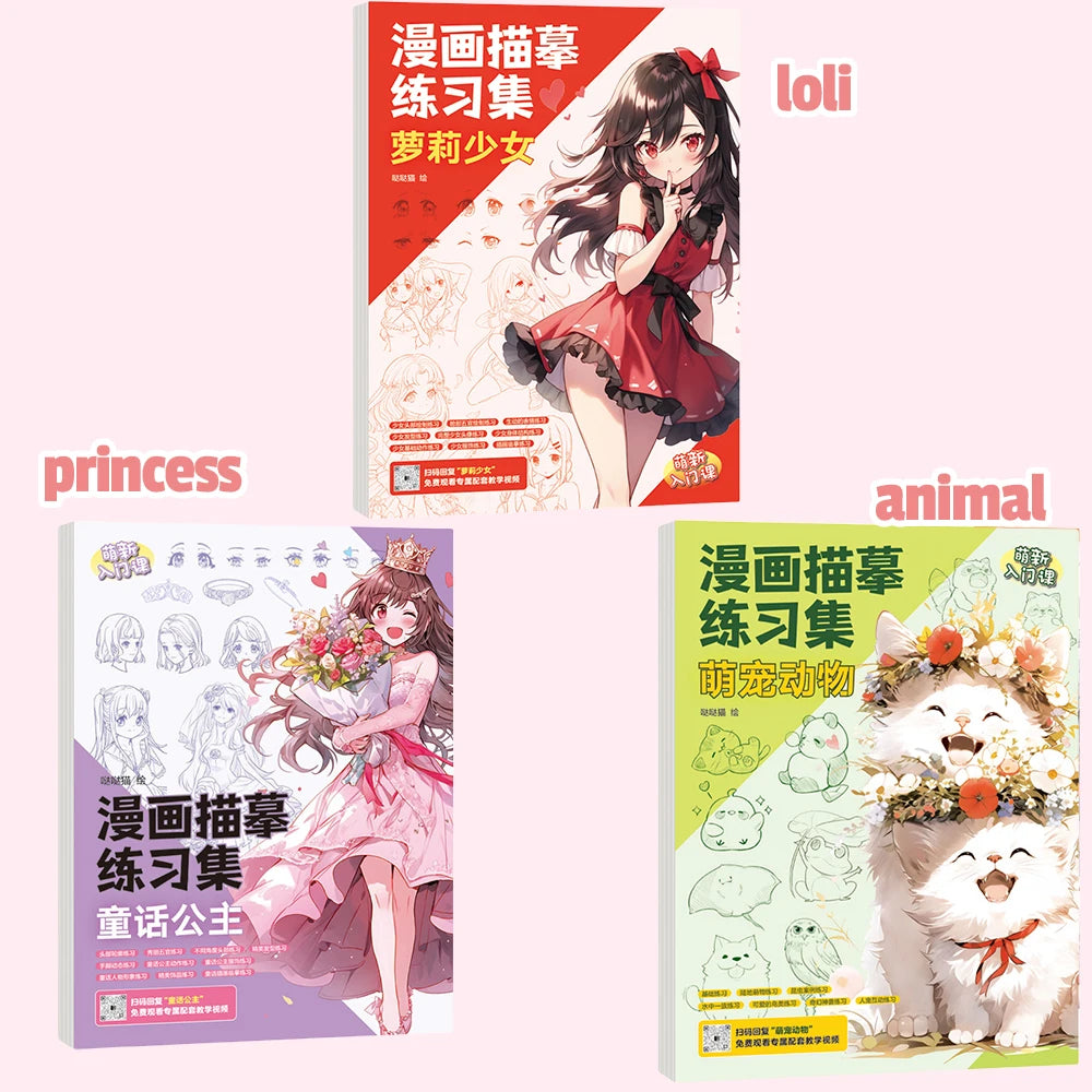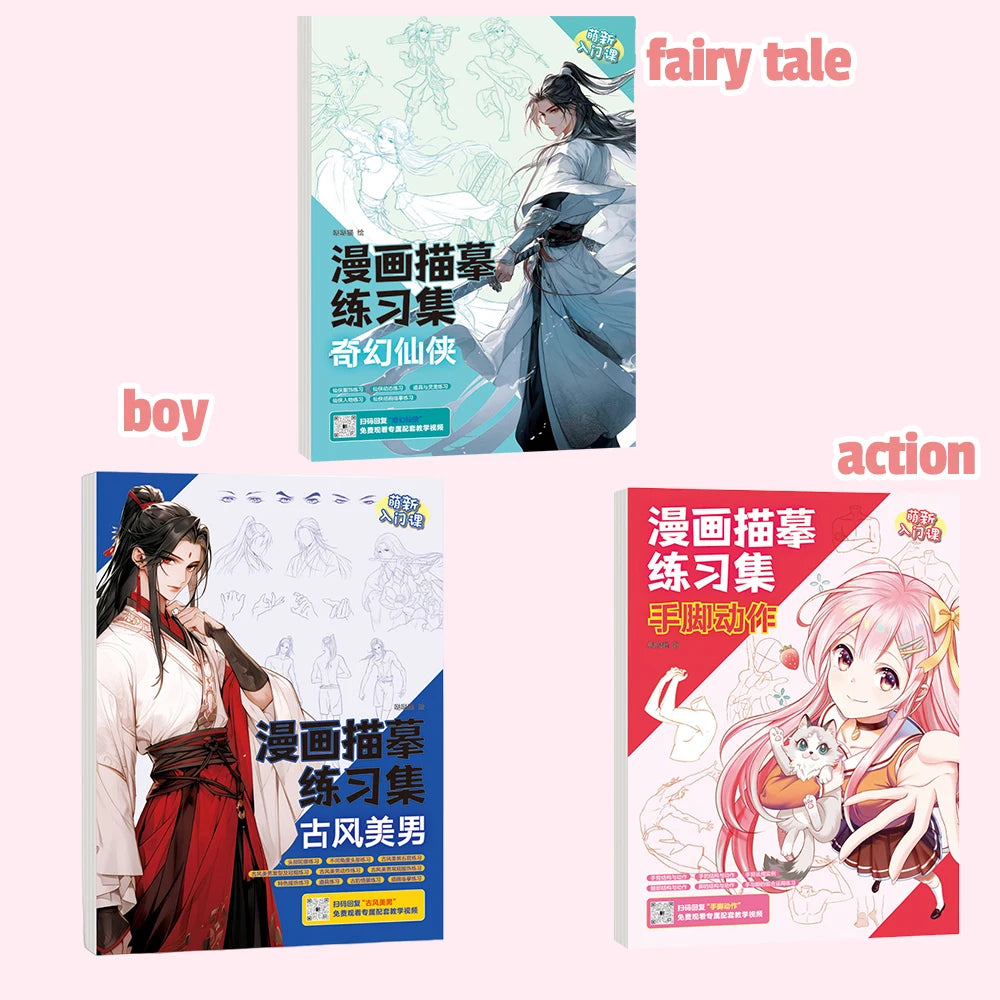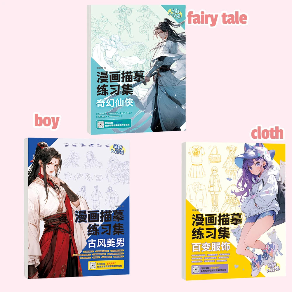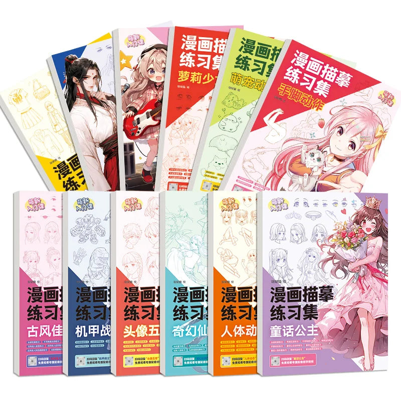 3/12Pcs Anime Sketchbook for Students Copy Practice Line Draft Adult Coloring Book 72 Pages Art Comic Man...