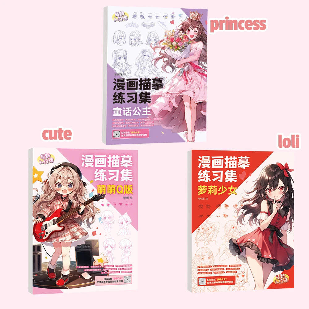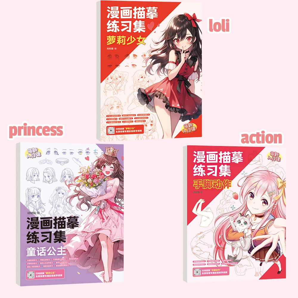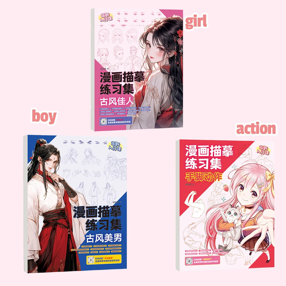 3/12Pcs Anime Sketchbook for Students Copy Practice Line Draft Adult Coloring Book 72 Pages Art Comic Man...
