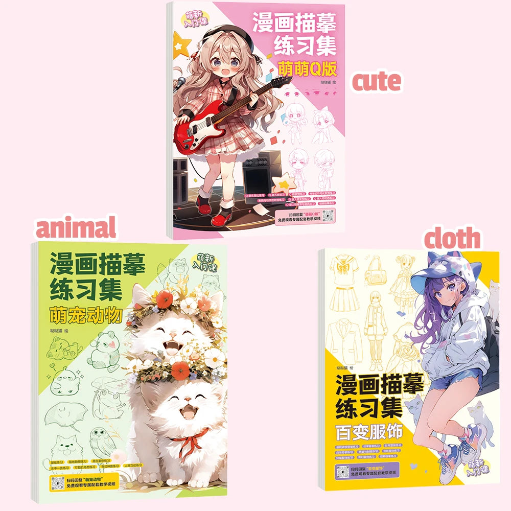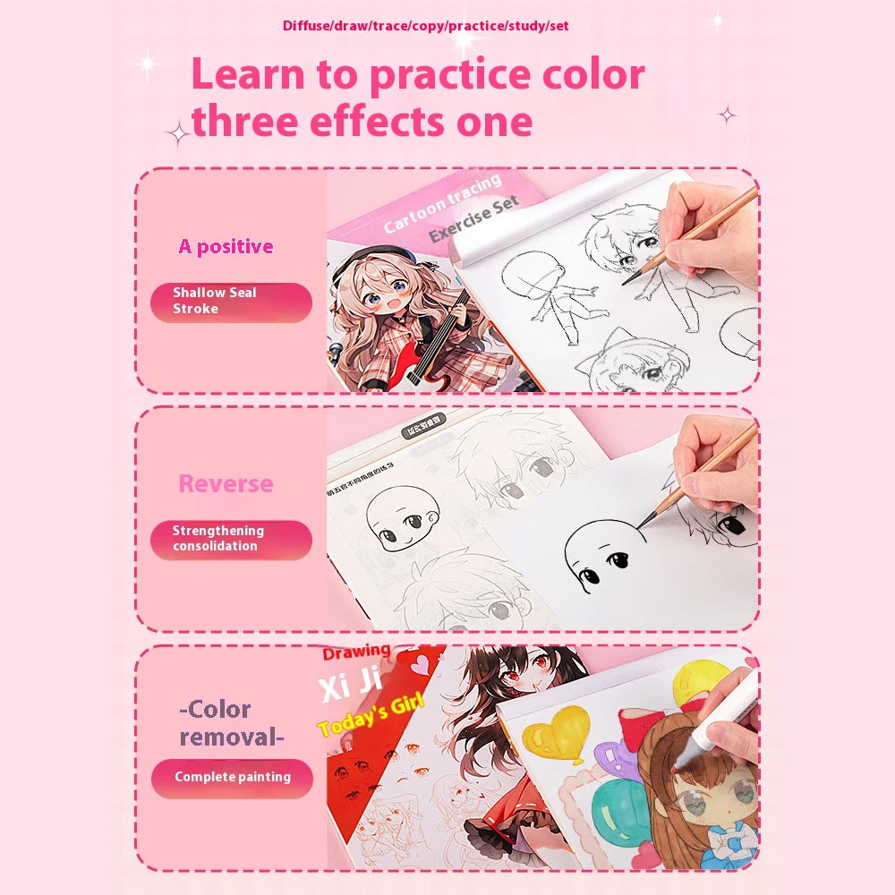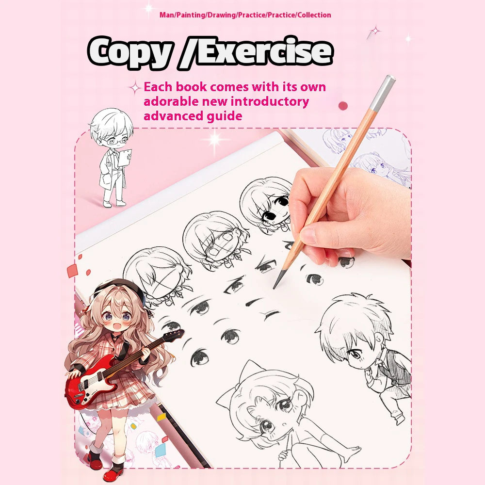 Borrence Anime Draw Book Cartoon Coloring Book Beginner Painting Technique Workbook Comic Manga Images Copy Practice Line Painting Art Book for Children