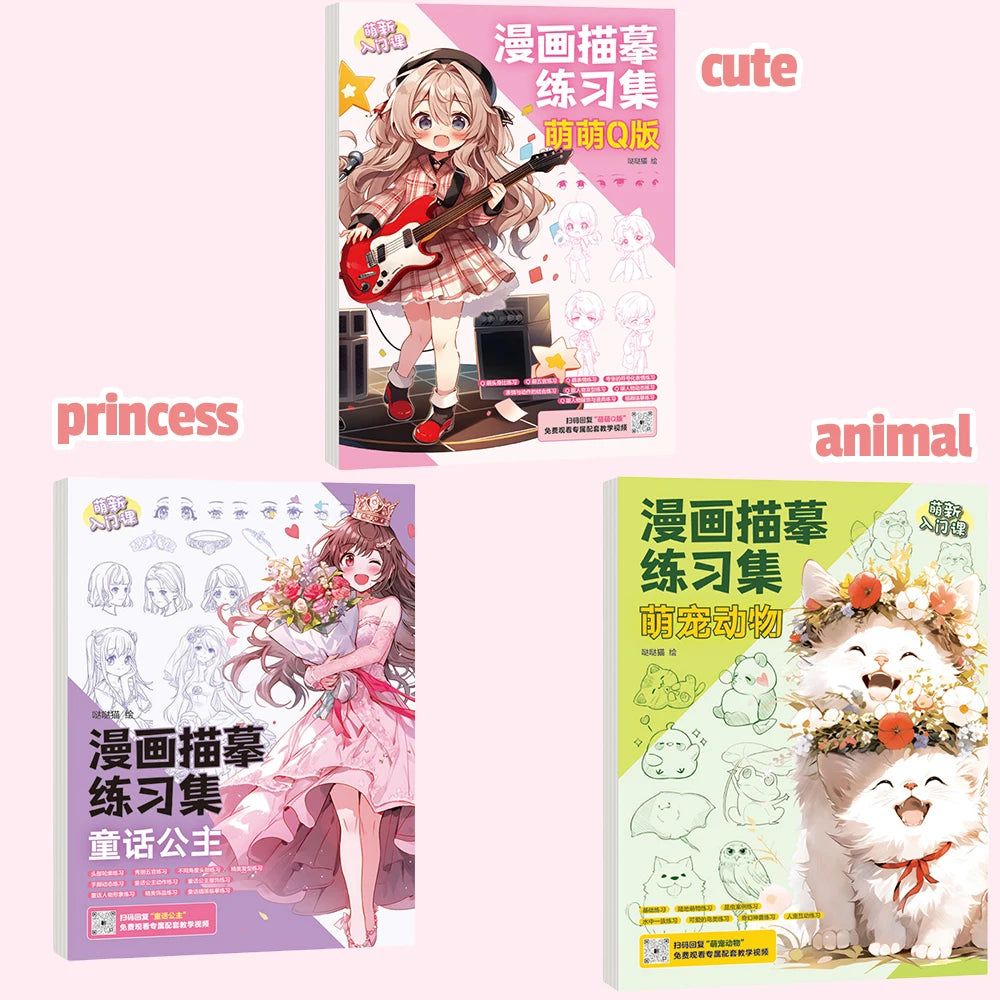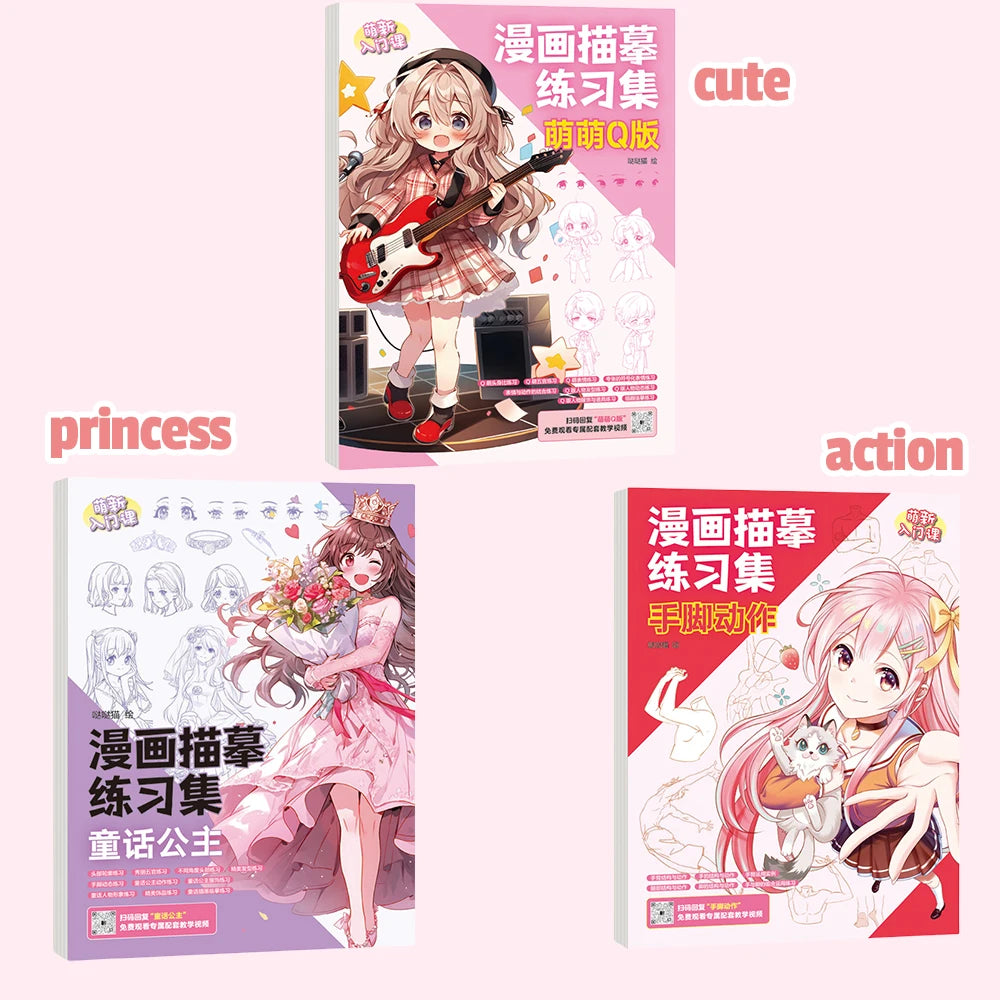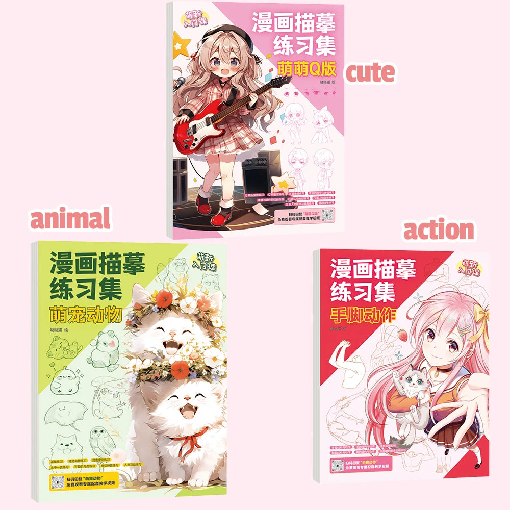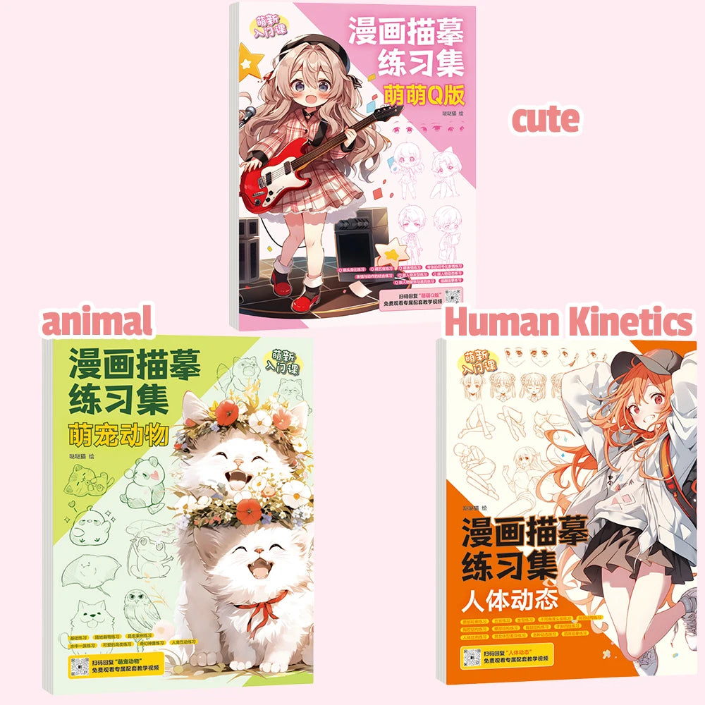 Borrence Anime Draw Book Cartoon Coloring Book Beginner Painting Technique Workbook Comic Manga Images Copy Practice Line Painting Art Book for Children