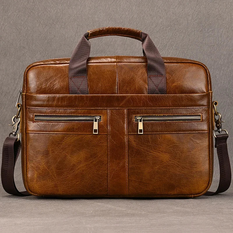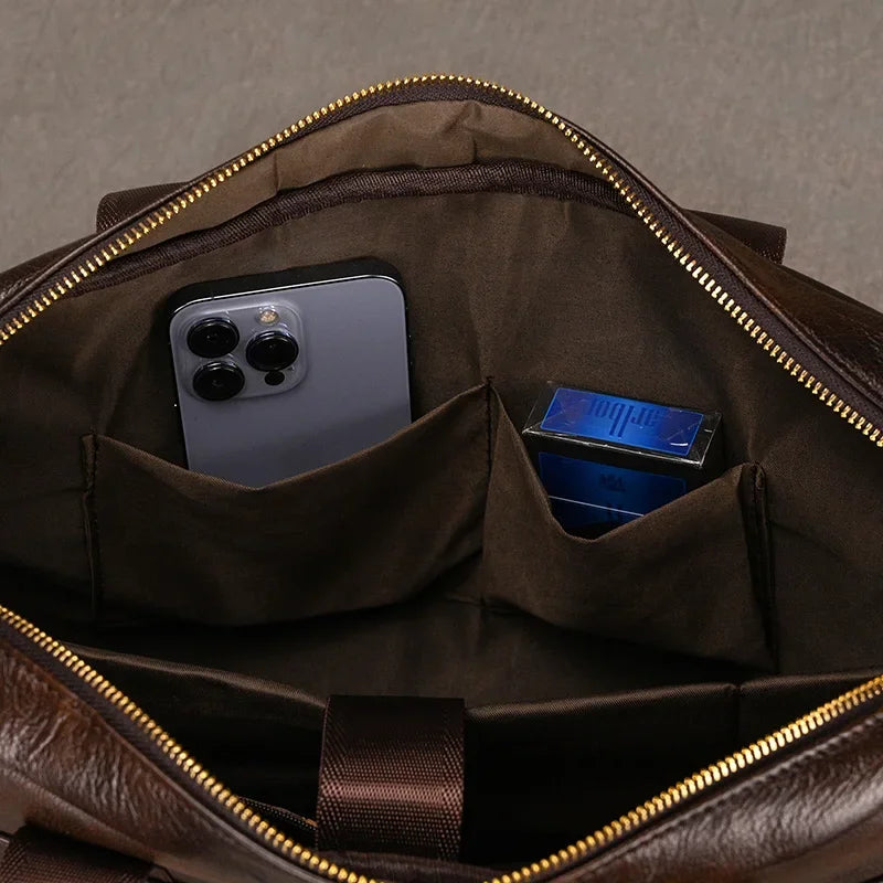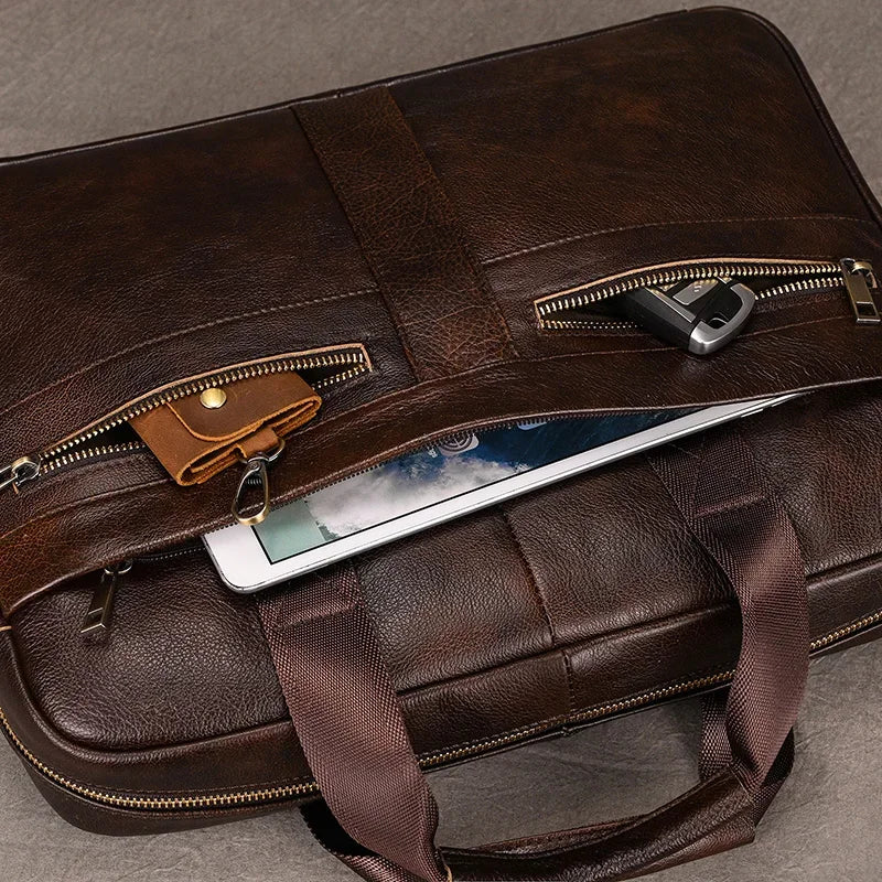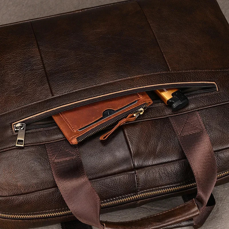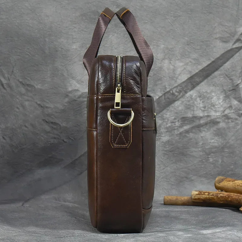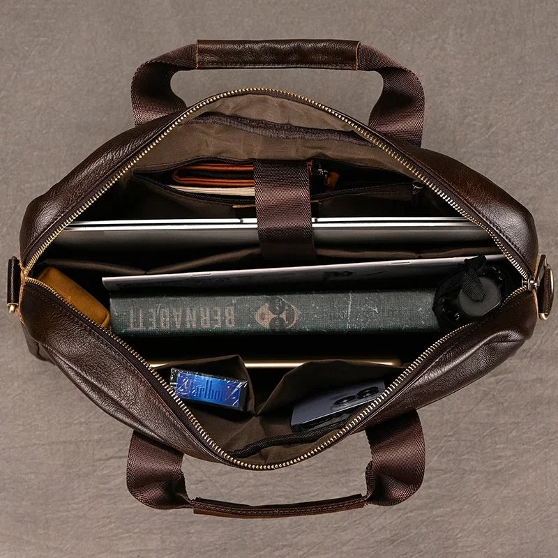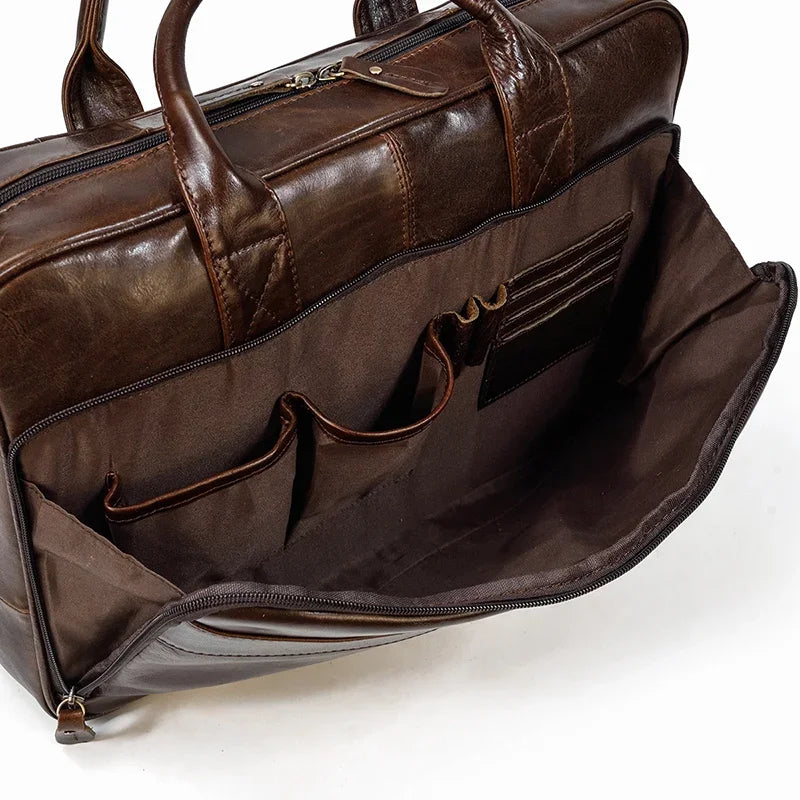 Newsbirds Leather Men Briefcase Doctor Layer Business Man Laptop Bag 15 6 inches
