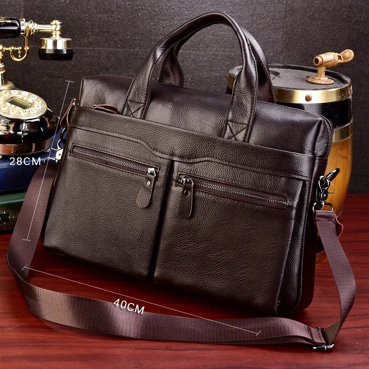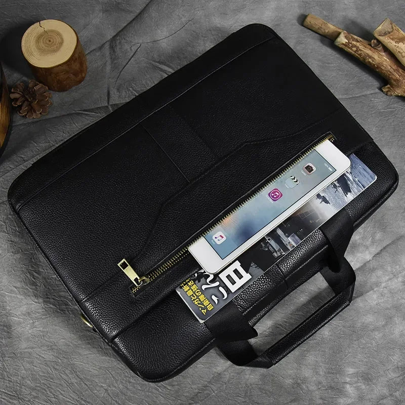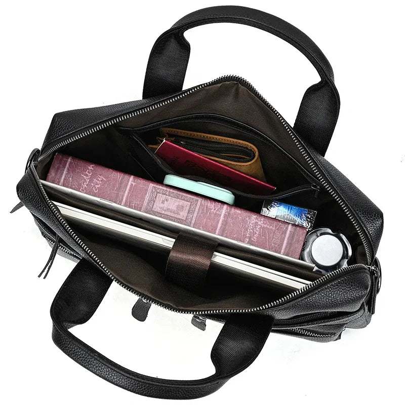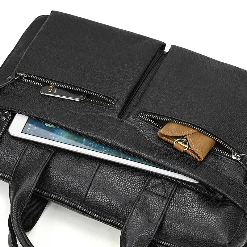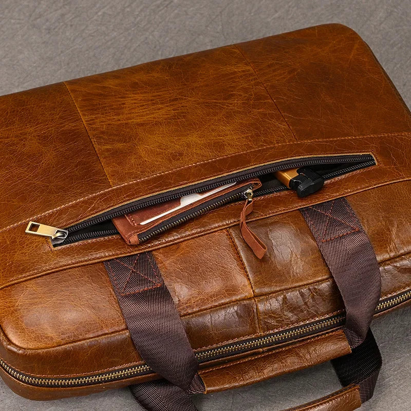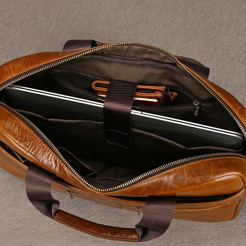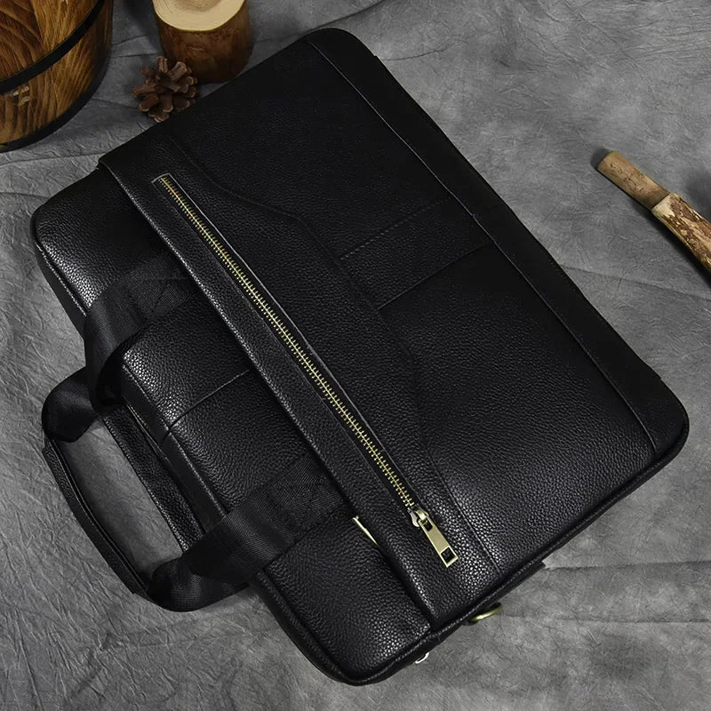 Newsbirds Leather Men Briefcase Doctor Layer Business Man Laptop Bag 15 6 inches