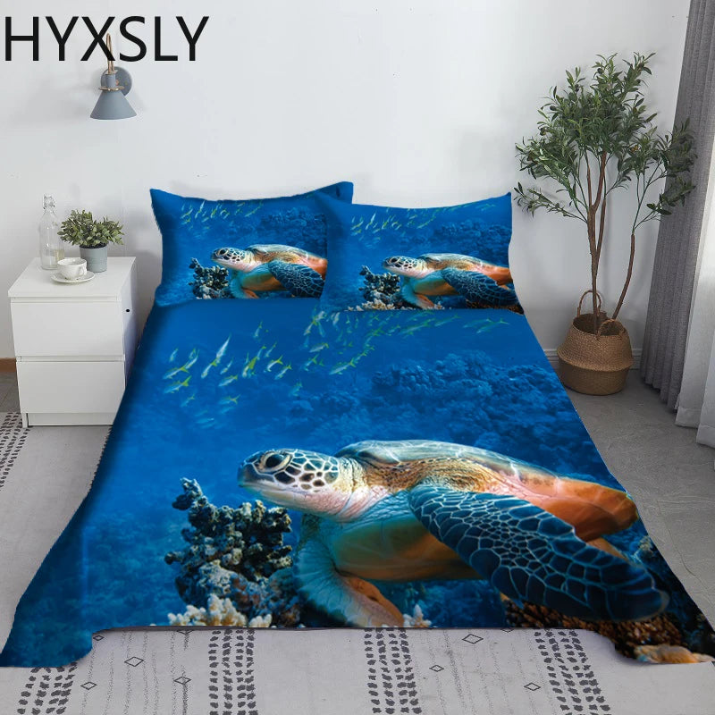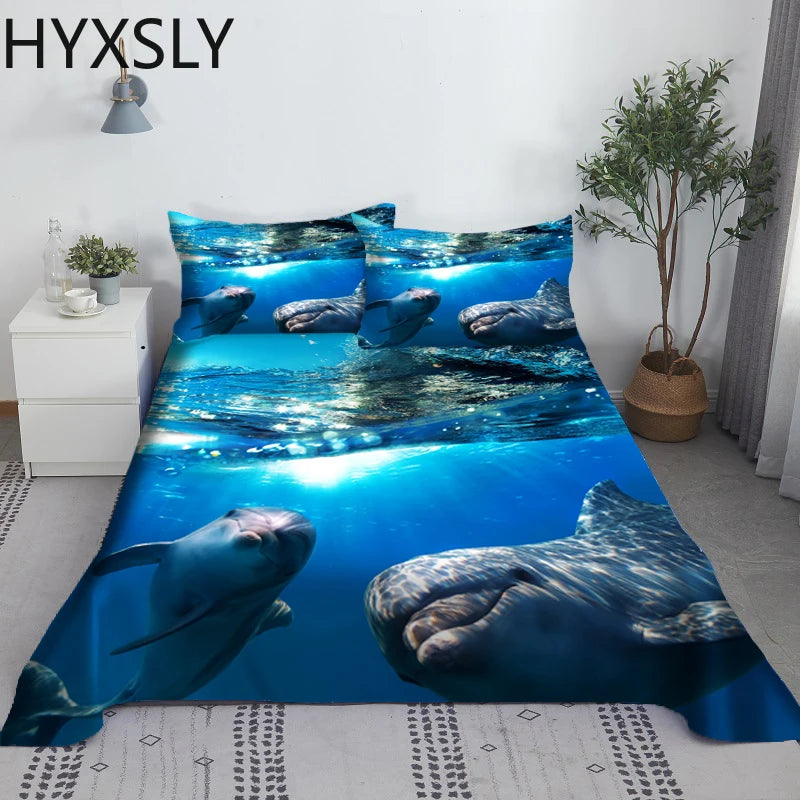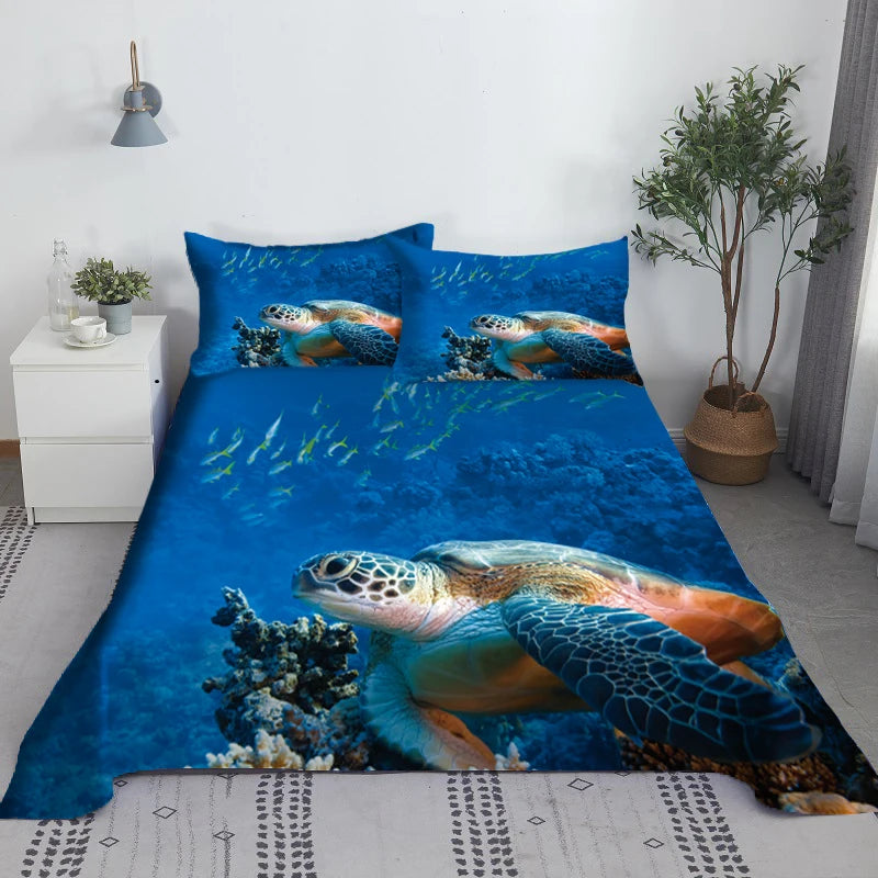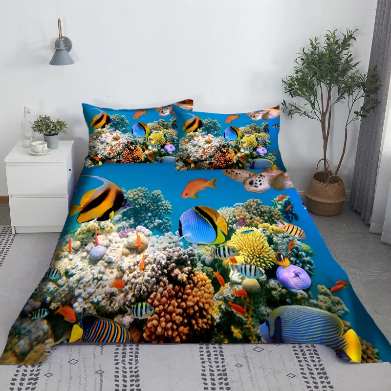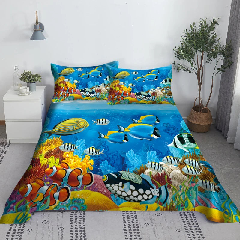 2/3PCS Marine Organism Bed Sheet Set 3D Printing Underwater World Polyester Bed Flat Sheet With Pillowcas...