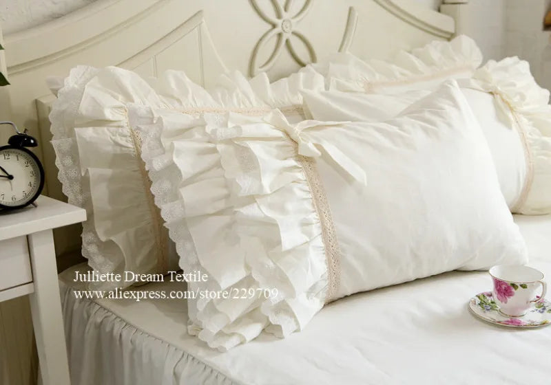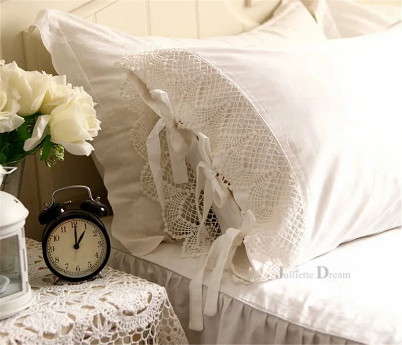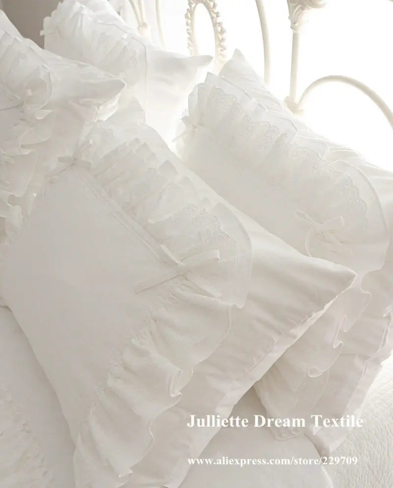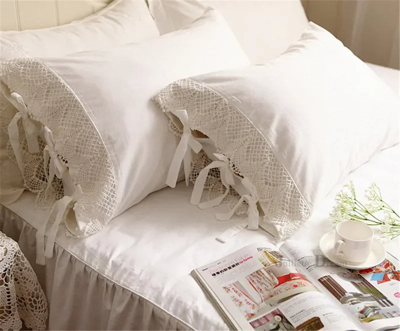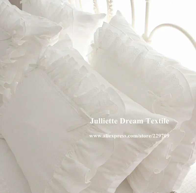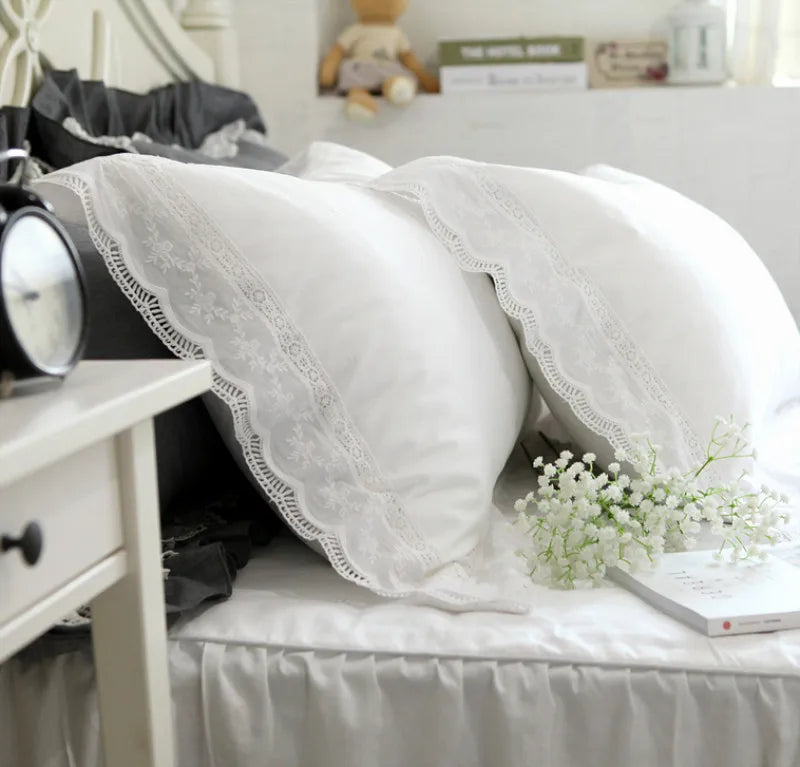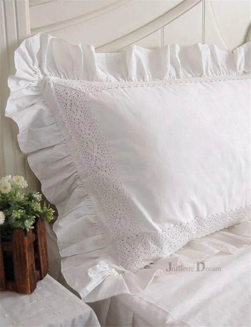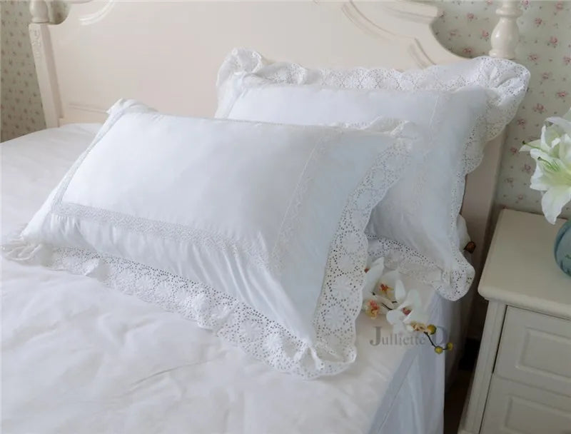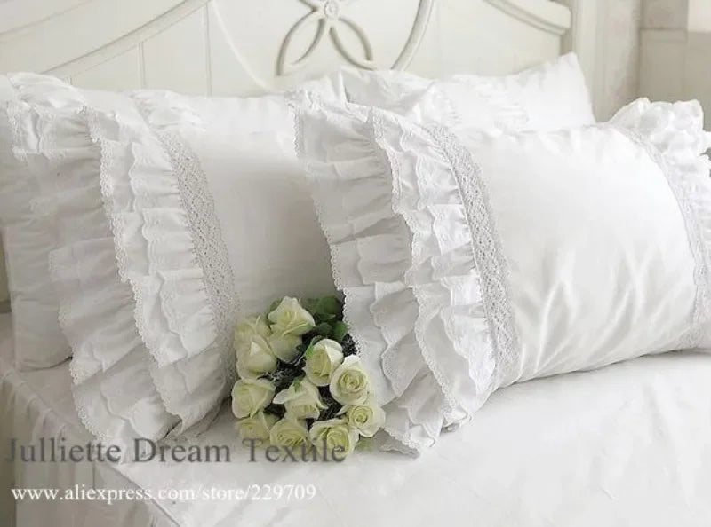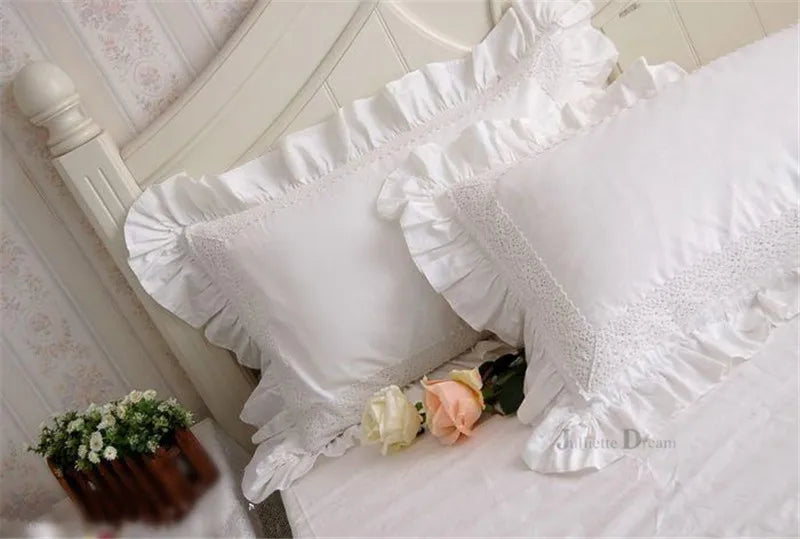 2 pieces White Satin Lace ruffle pillow case European style elegant embroidered pillowcase luxury bedding...