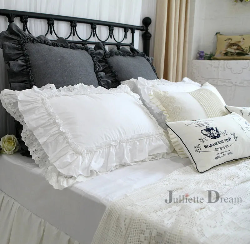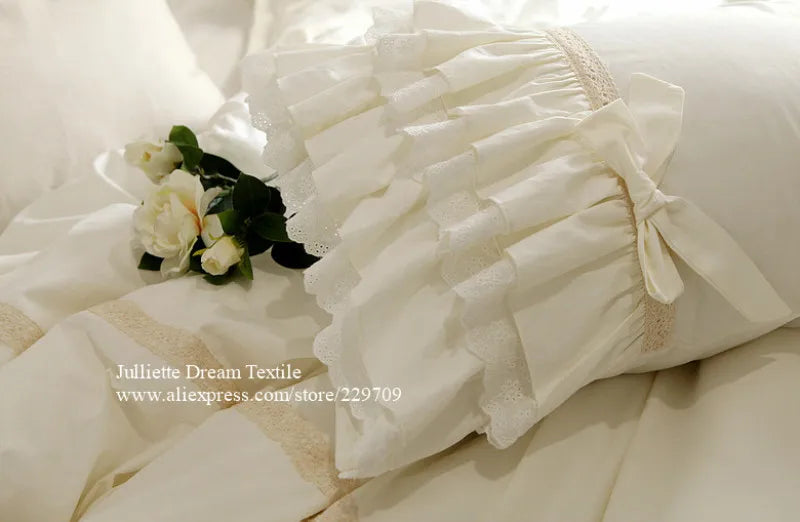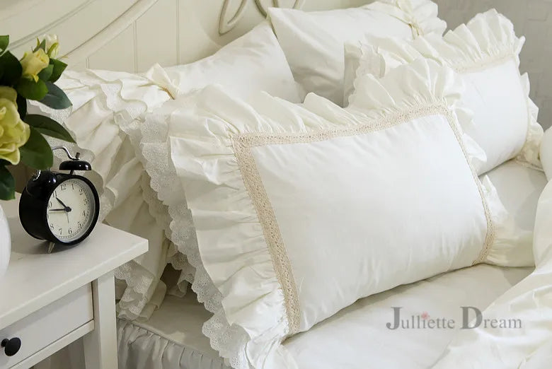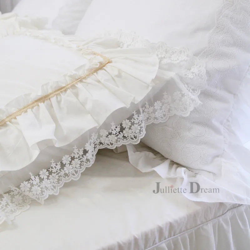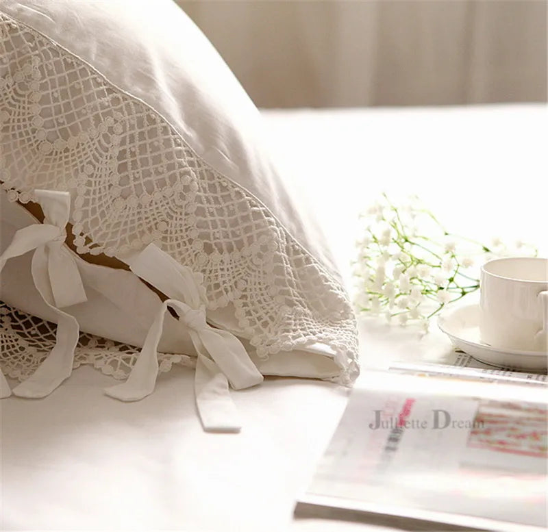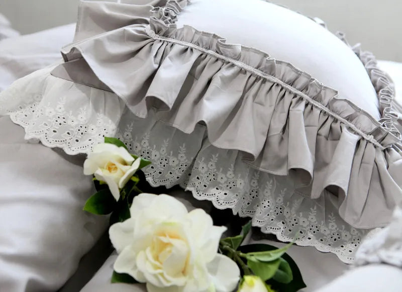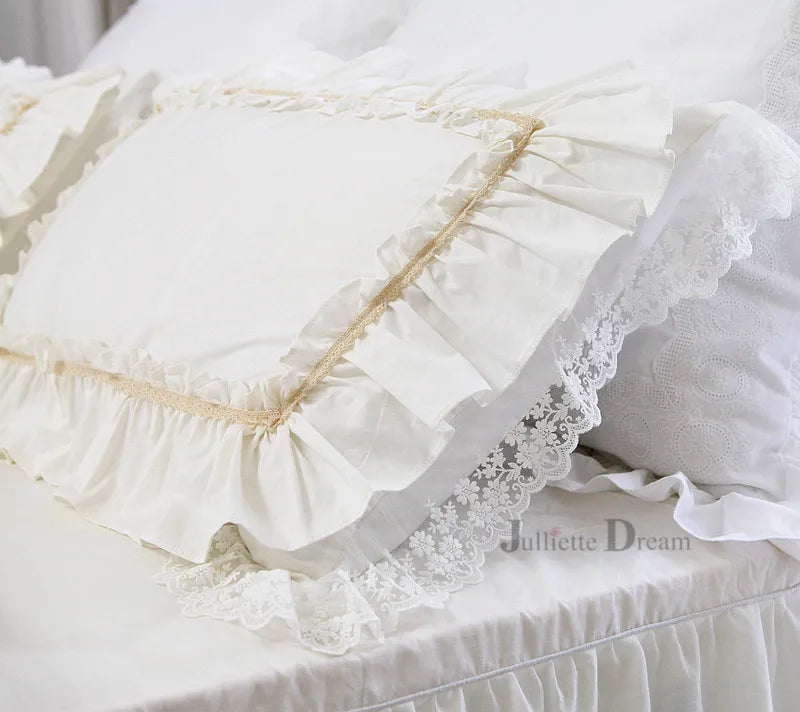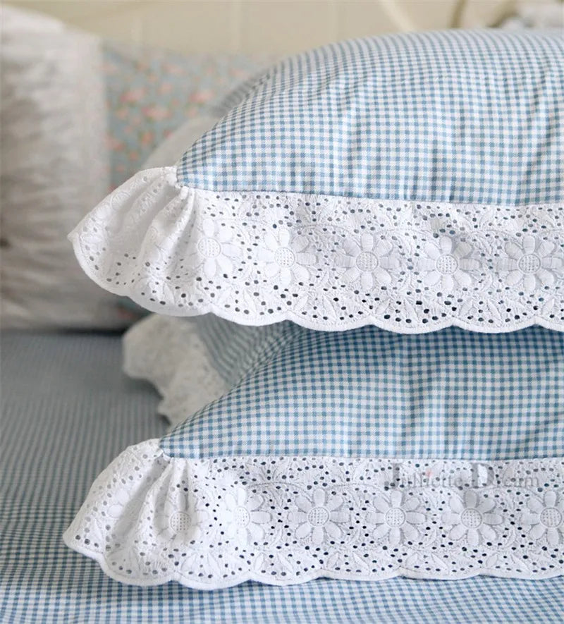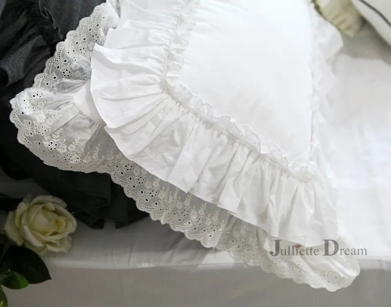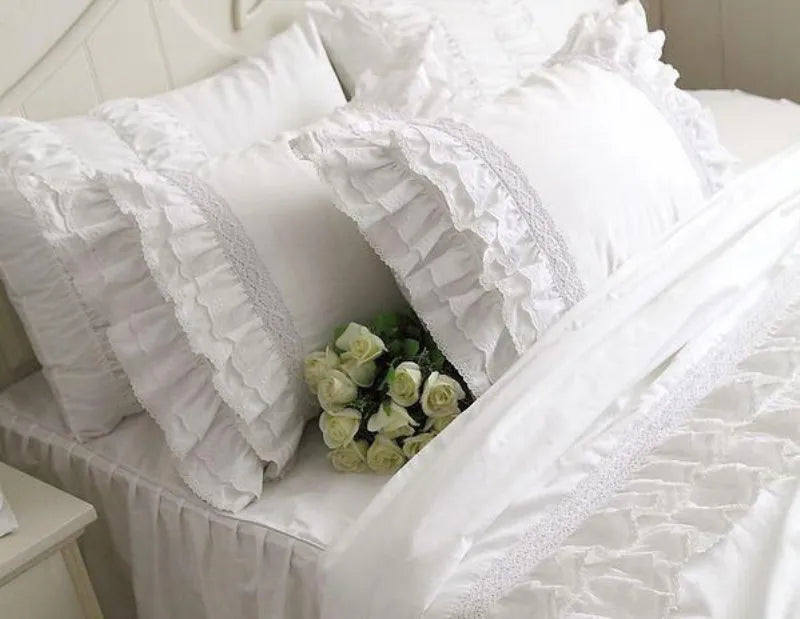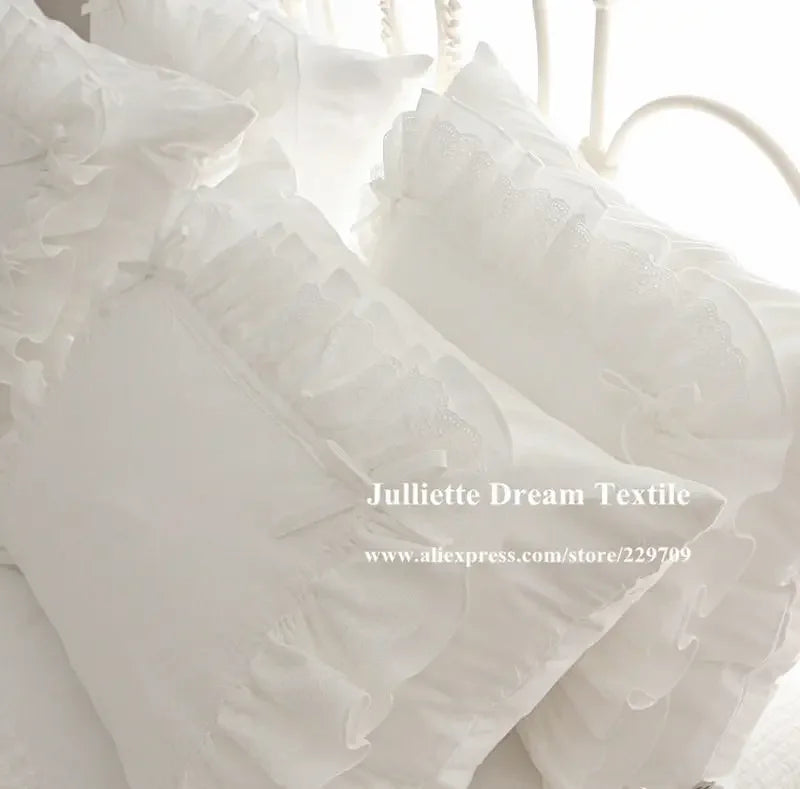 2 pieces White Satin Lace ruffle pillow case European style elegant embroidered pillowcase luxury bedding...