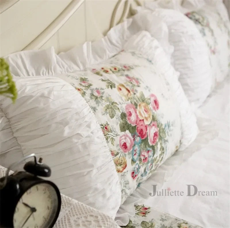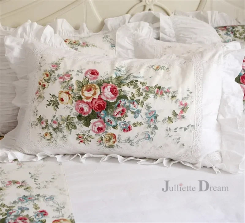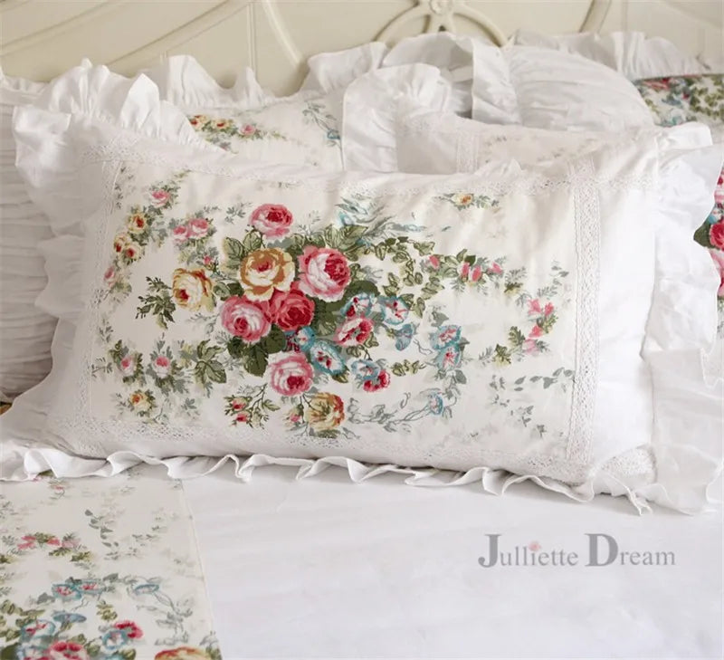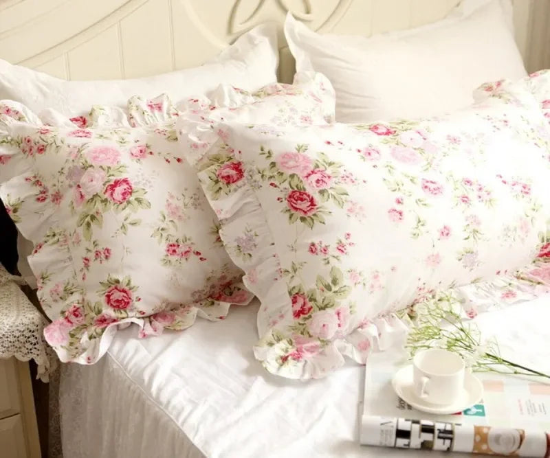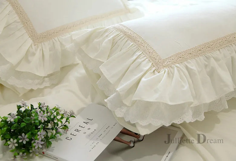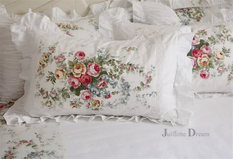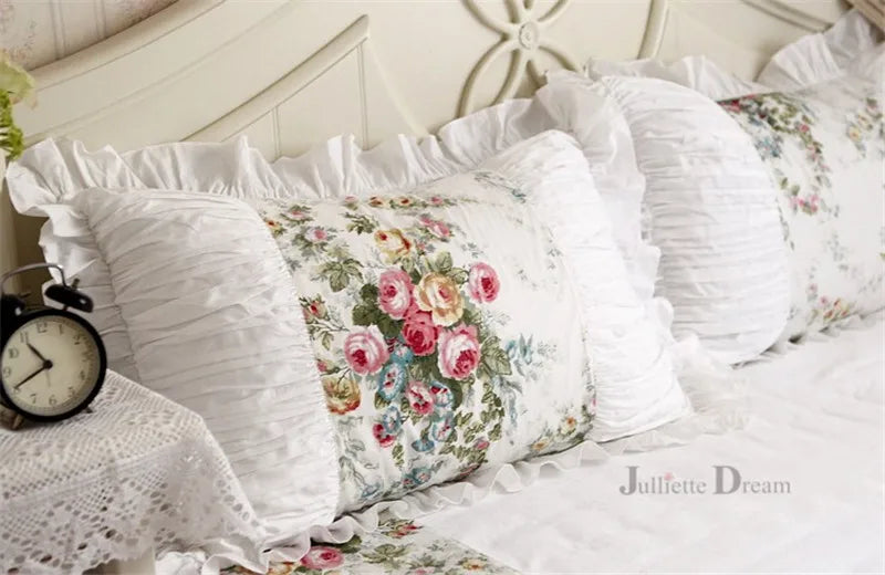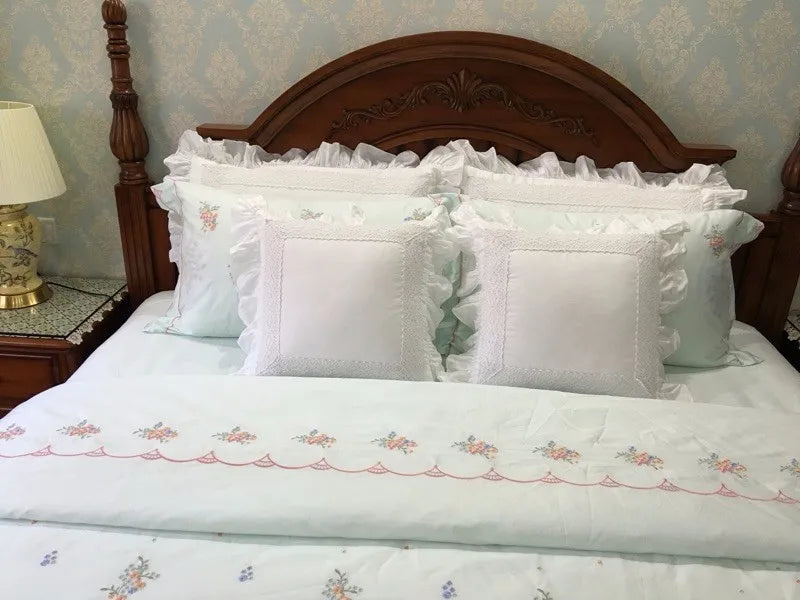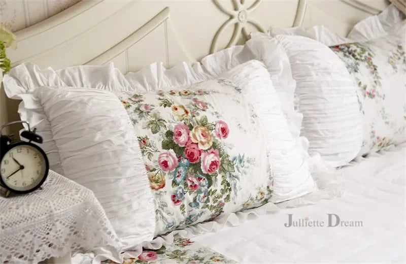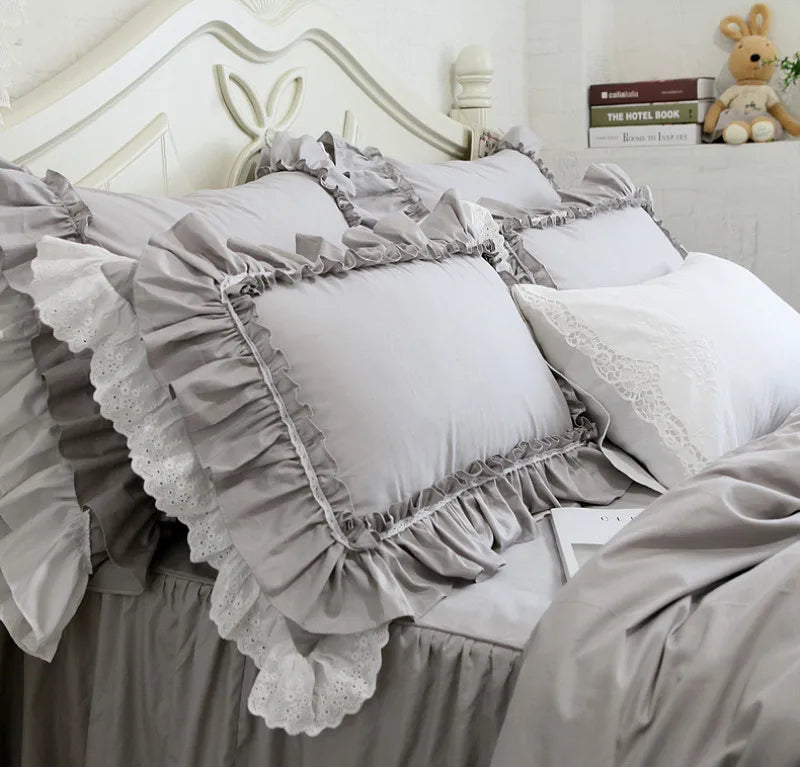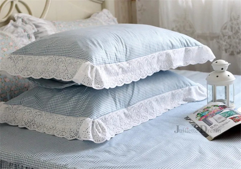 2 pieces White Satin Lace ruffle pillow case European style elegant embroidered pillowcase luxury bedding...