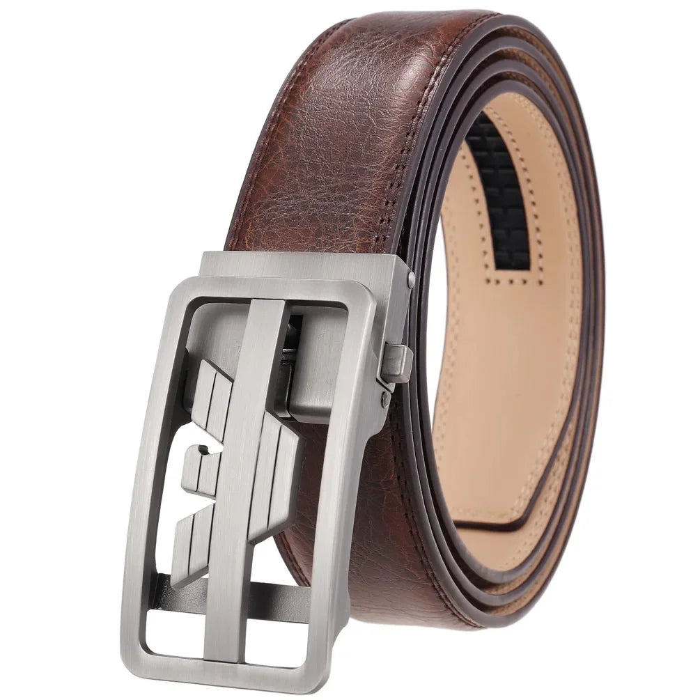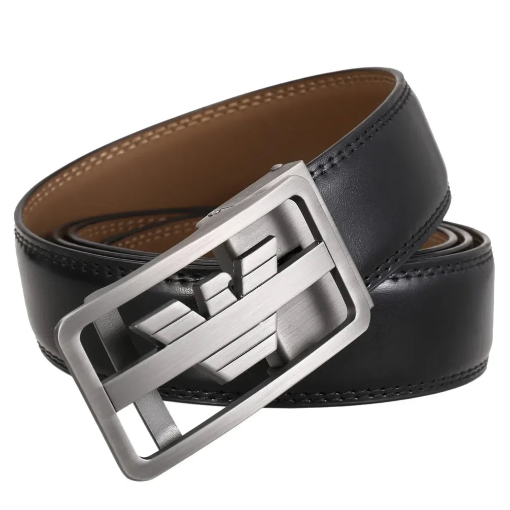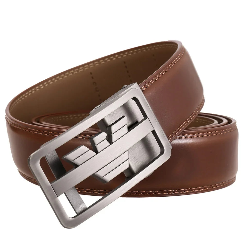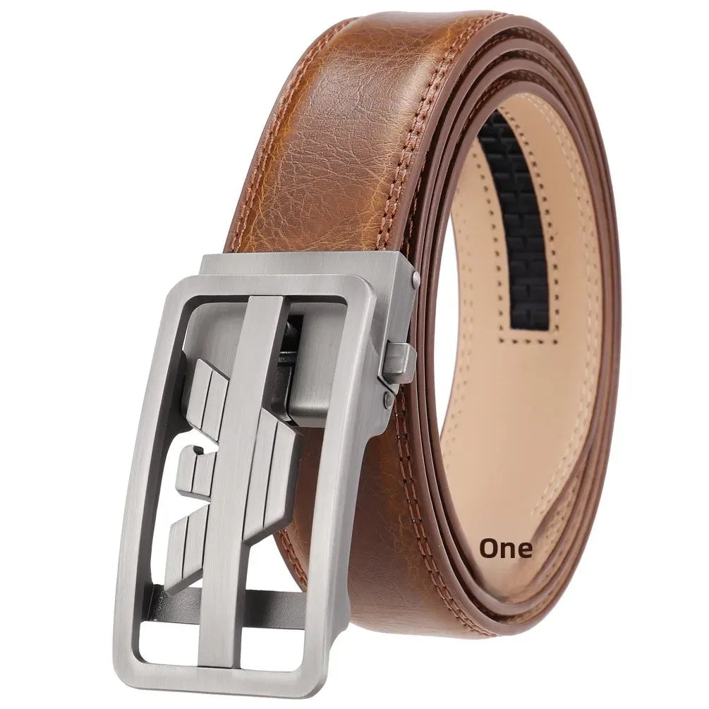 Fashionable Automatic Buckle Men s Belt Two Layer Cowhide Stylish Leather Belt
