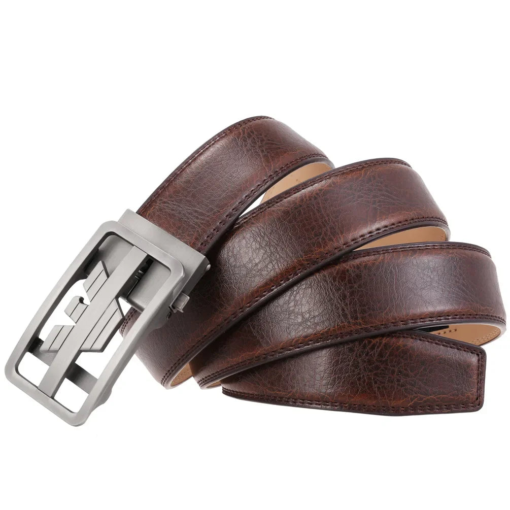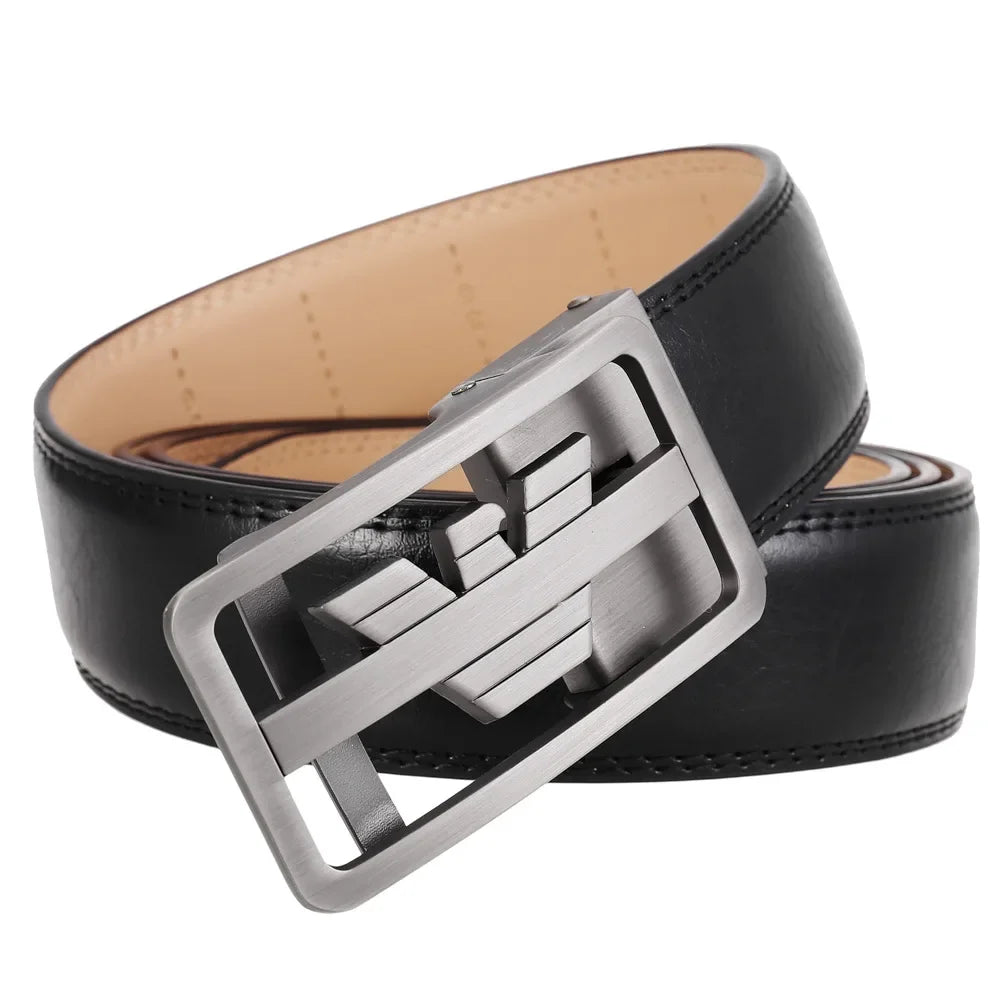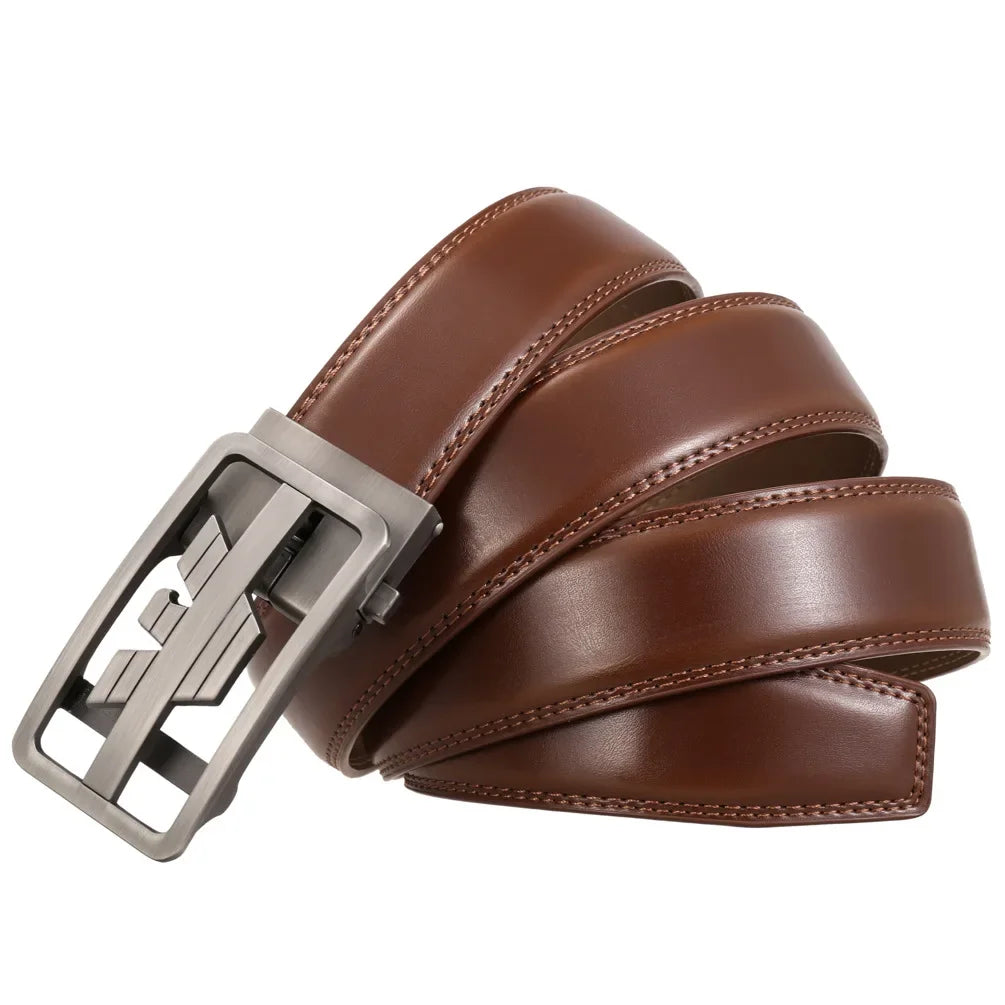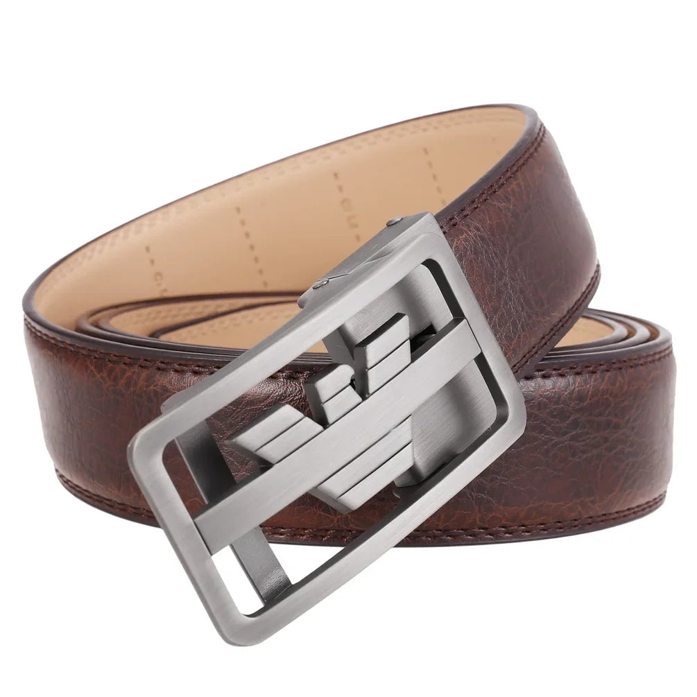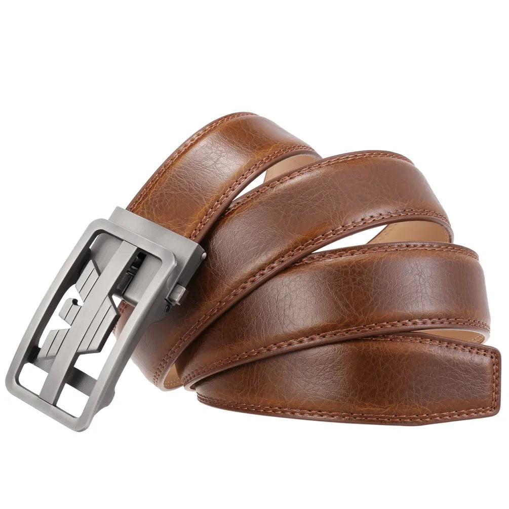 Fashionable Automatic Buckle Men s Belt Two Layer Cowhide Stylish Leather Belt