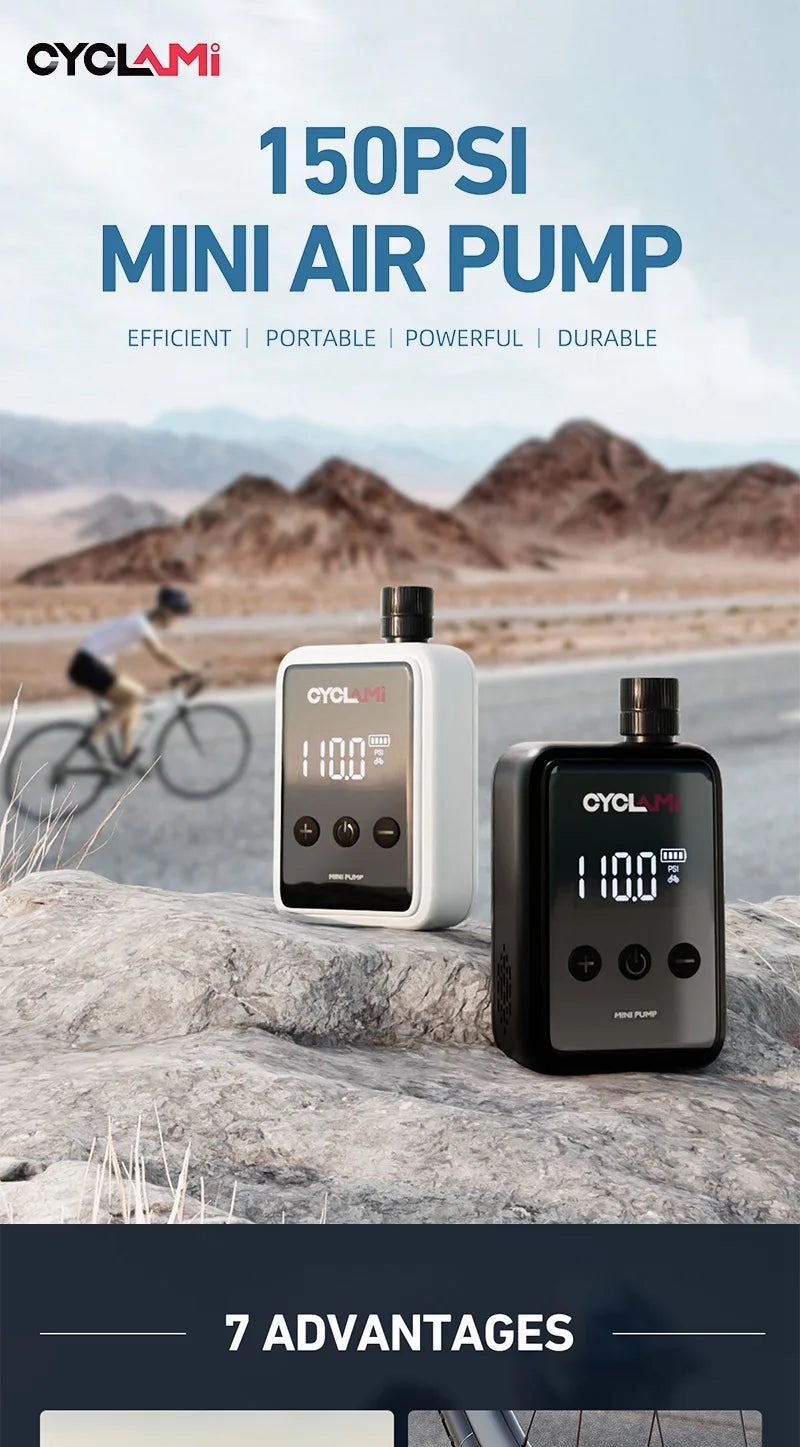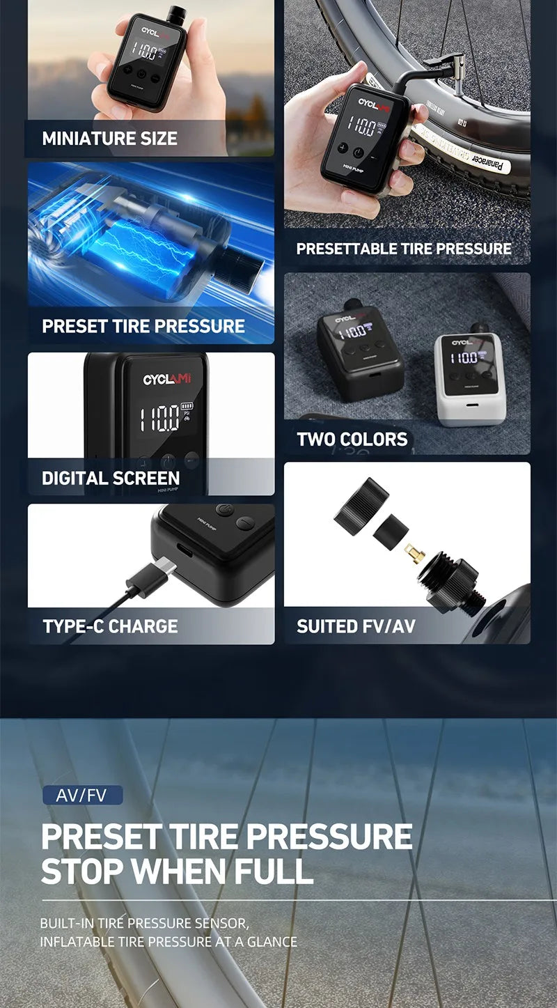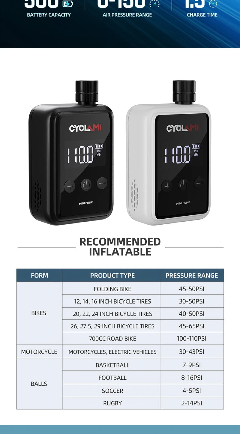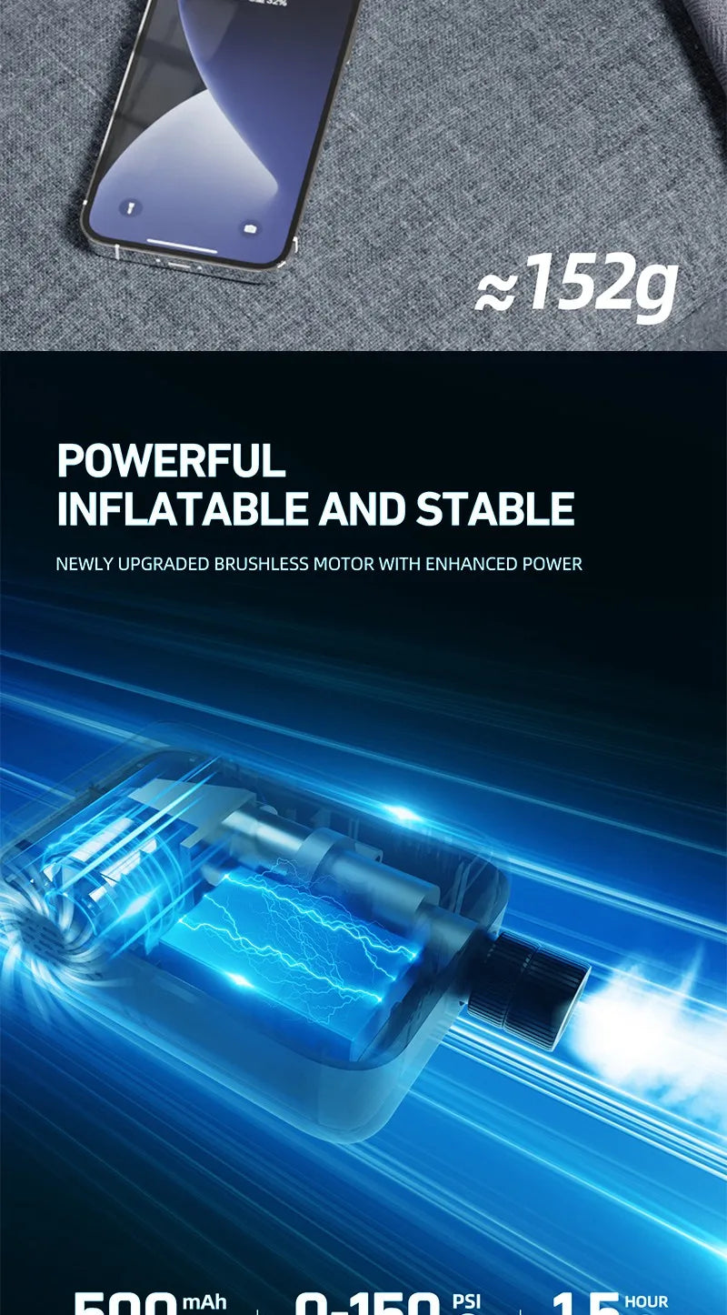 150 PSI Portable Pocket Bike Pump Electric Air Pump Rechargeable Compressor T...