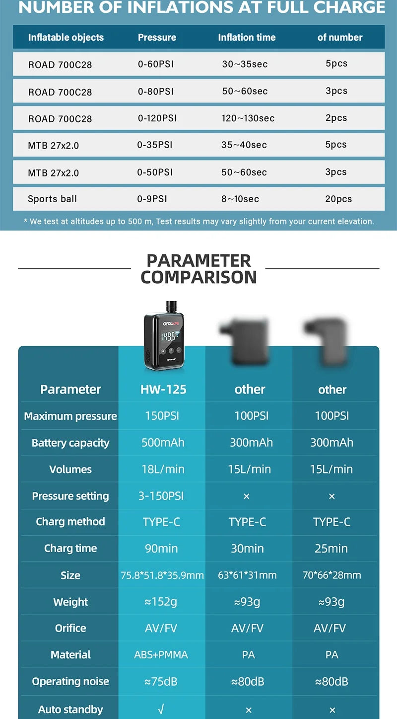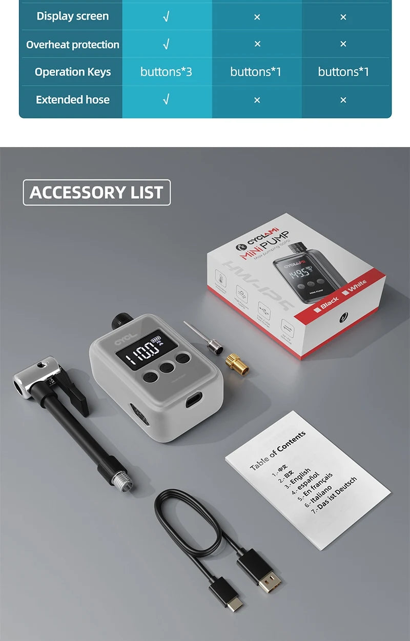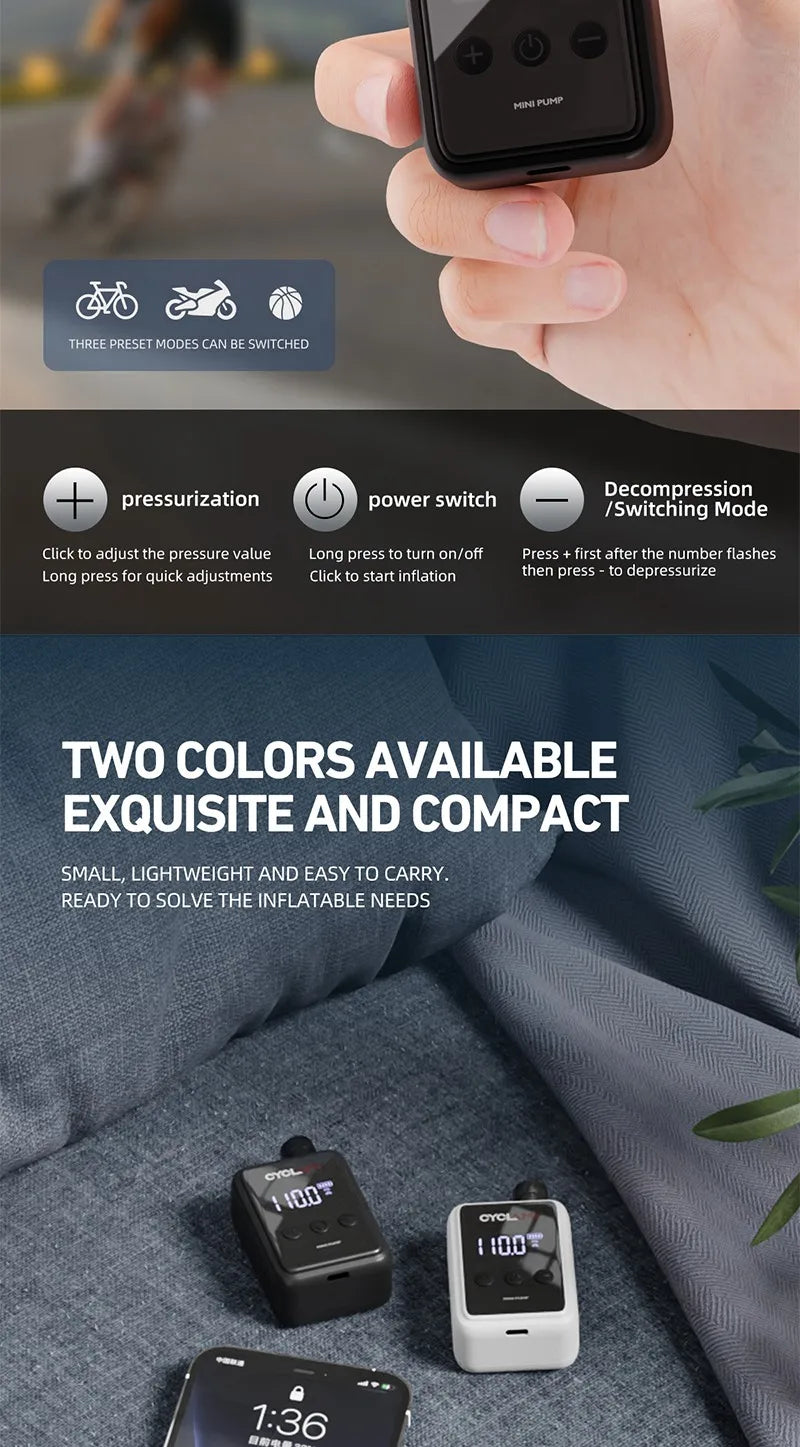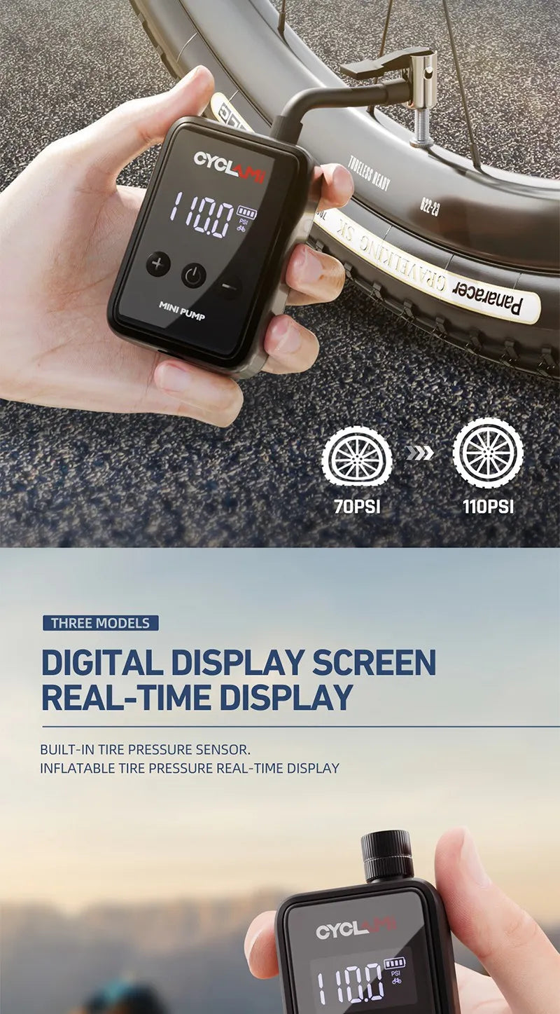 150 PSI Portable Pocket Bike Pump Electric Air Pump Rechargeable Compressor T...