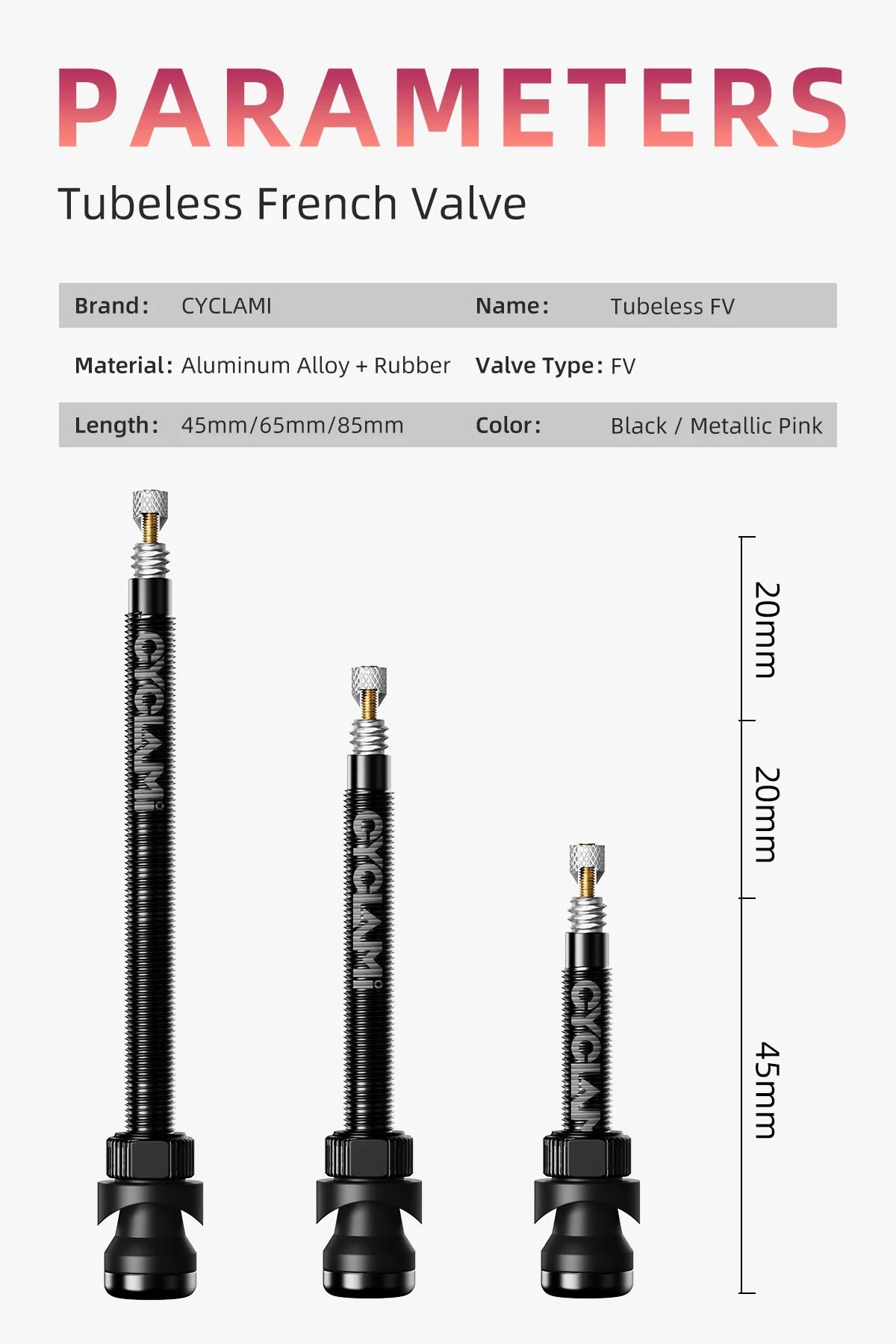 Cyclami 45 65 85mm Tubeless Valves Bicycle Aluminum Alloy Presta Nipples Remo...
