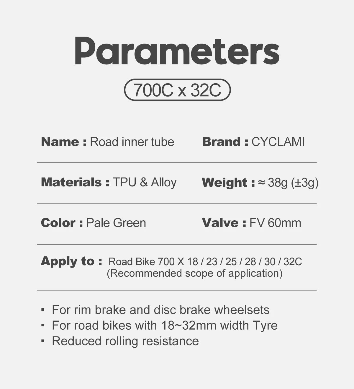 Cyclami Ultralight Bike TPU Inner Tube 700c 700 X18 32 Road Bicycle TPU Mater...