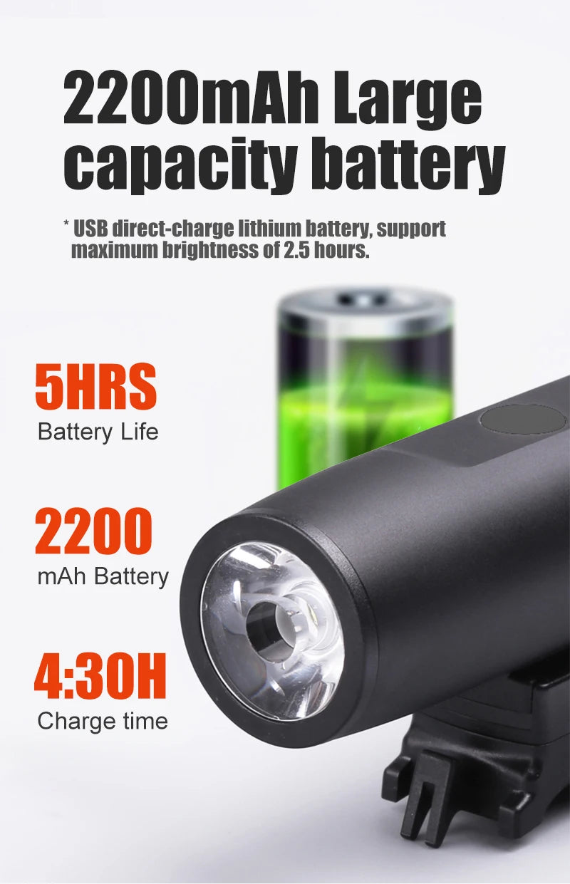 Xoss Bicycle Light 400Lumen Bike Headlight Power Bank Flashlight Handlebar US...
