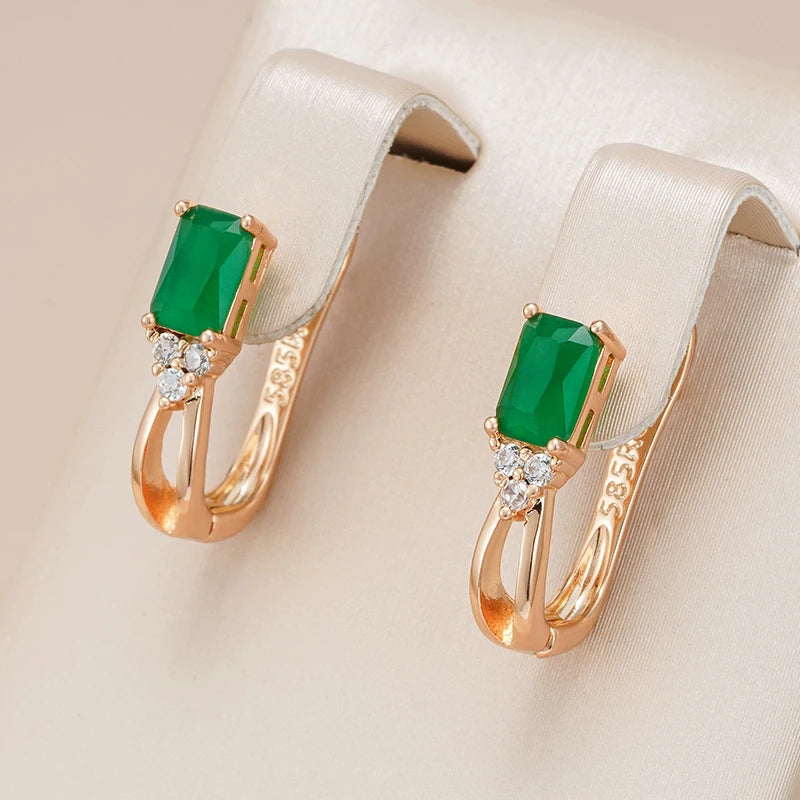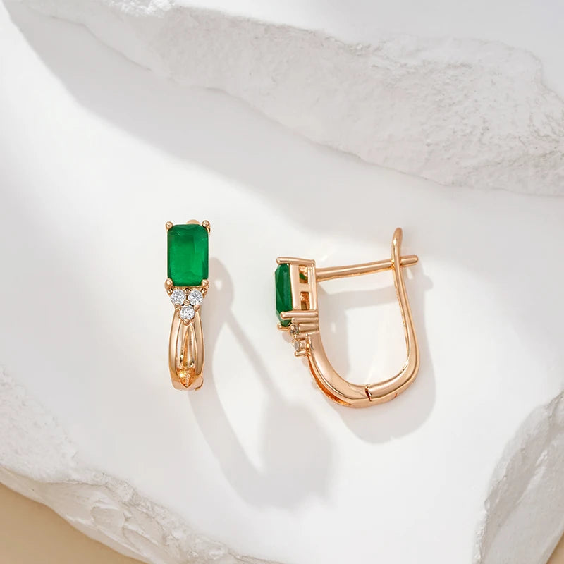 Wbmqda Emerald Square Cut Zircon Hoop Earrings For Women Luxury Retro 585 Rose