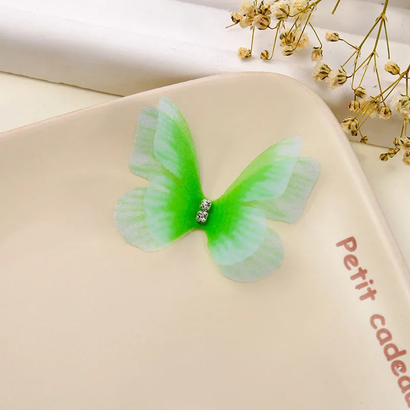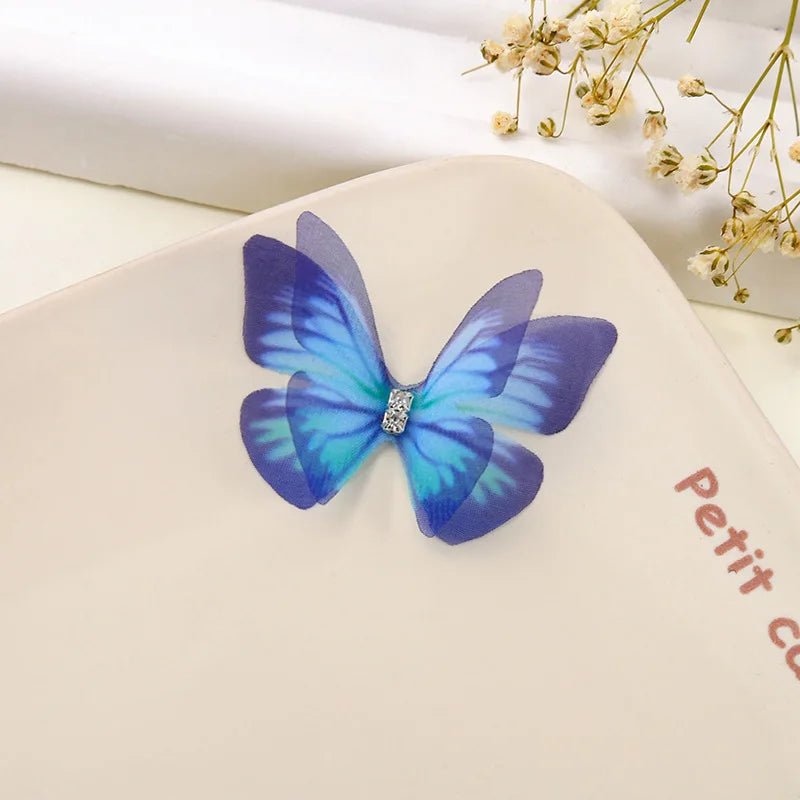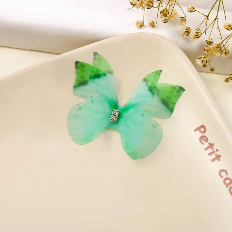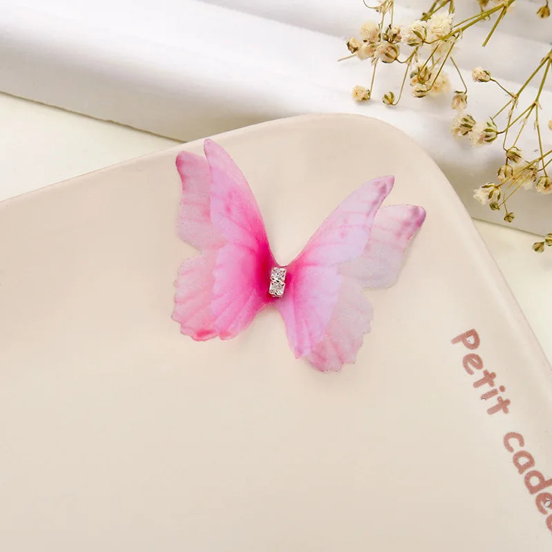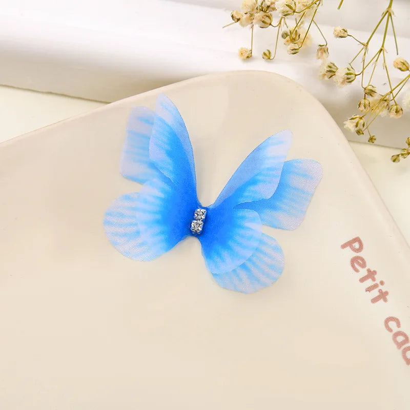 100Pcs 4.5Cm Tulle Butterfly With Rhinestone For DIY Making Clothing Party Christmas Festival Decor Handmade Craft Accessories