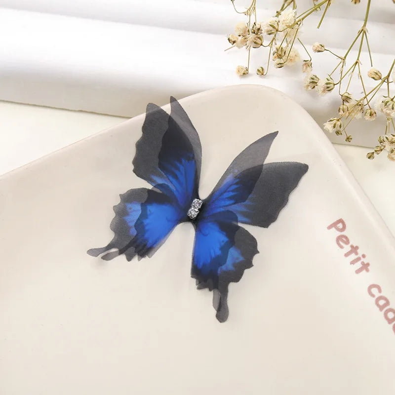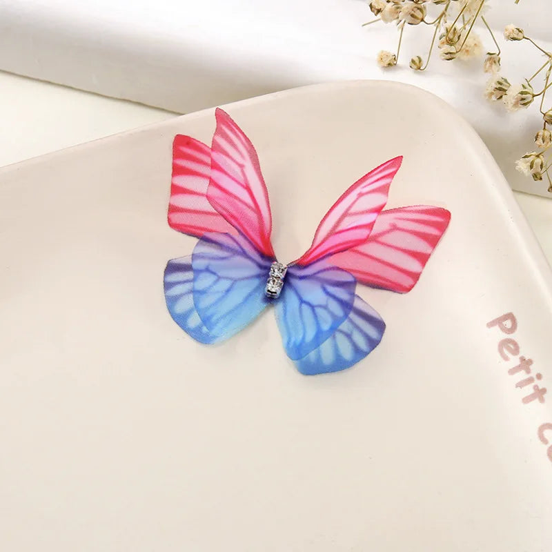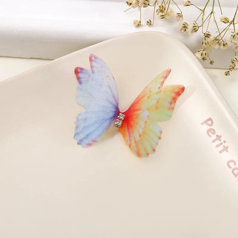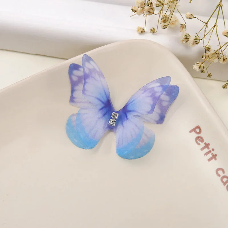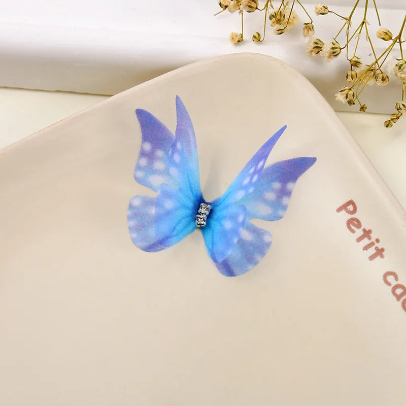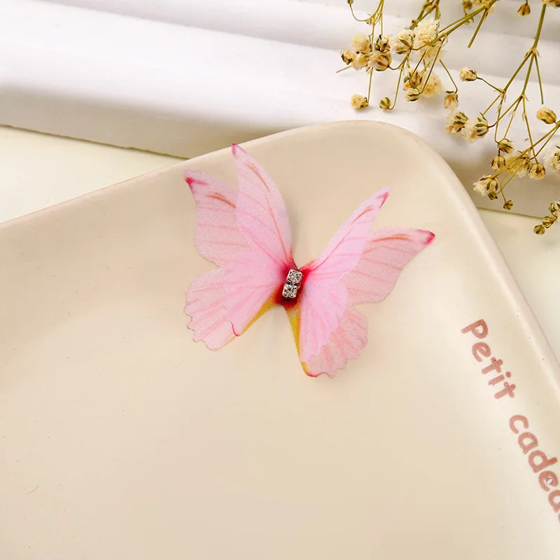 100Pcs 4.5Cm Tulle Butterfly With Rhinestone For DIY Making Clothing Party Christmas Festival Decor Handmade Craft Accessories