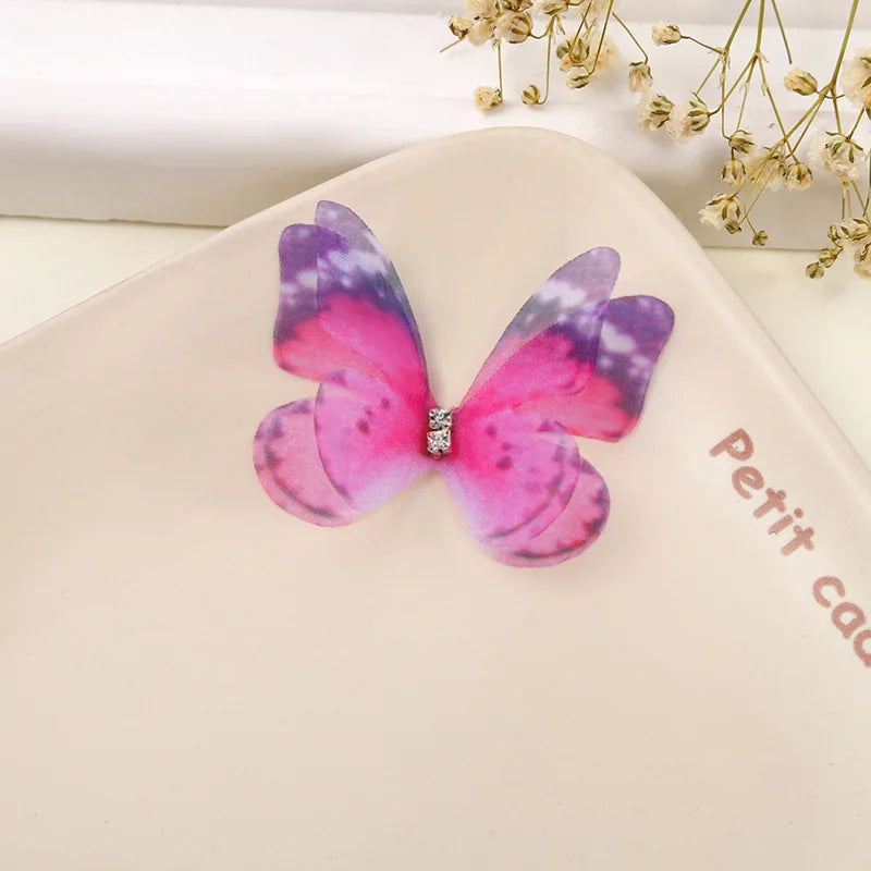 100Pcs 4.5Cm Tulle Butterfly With Rhinestone For DIY Making Clothing Party Christmas Festival Decor Handm...