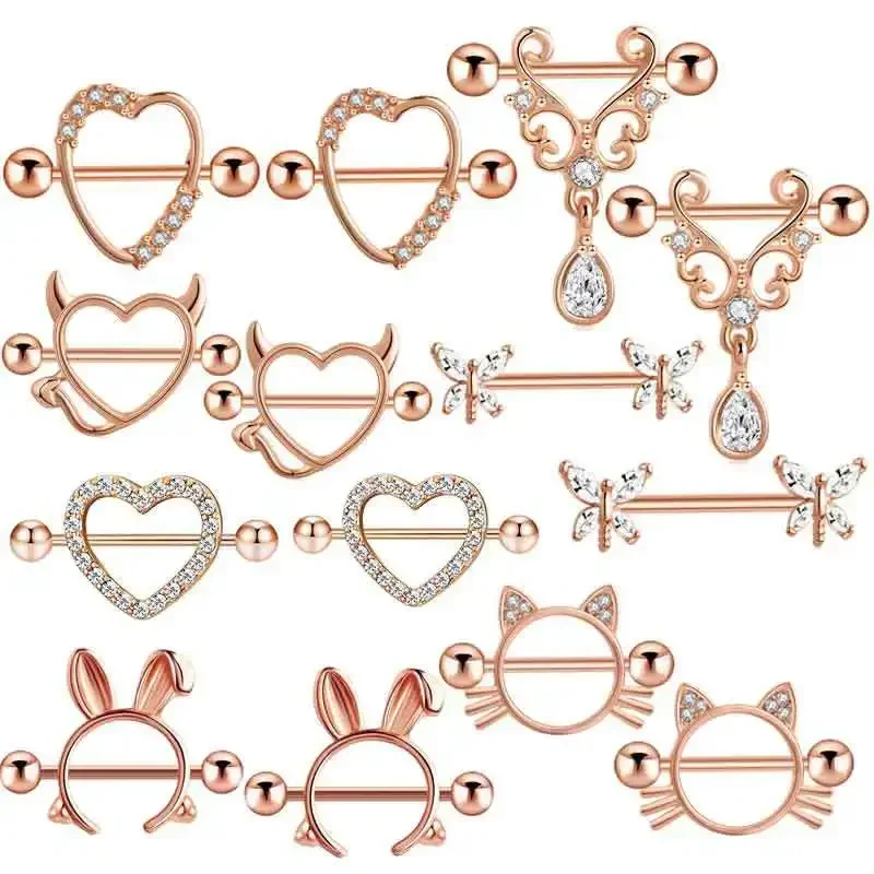 12PC/Set Stainless Steel Pink Heart Moon Nipple Piercing Kit Fashion Crystal Sexy Nipple Ring Body Jewelry Perforación Del Pezón