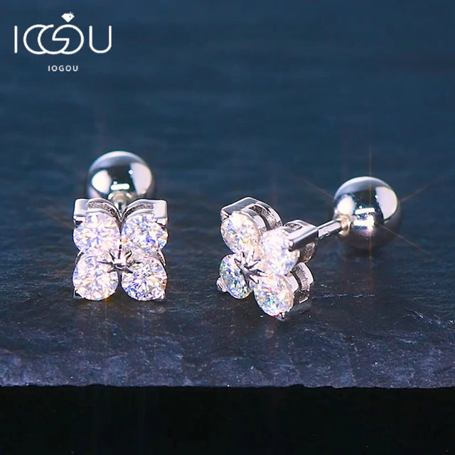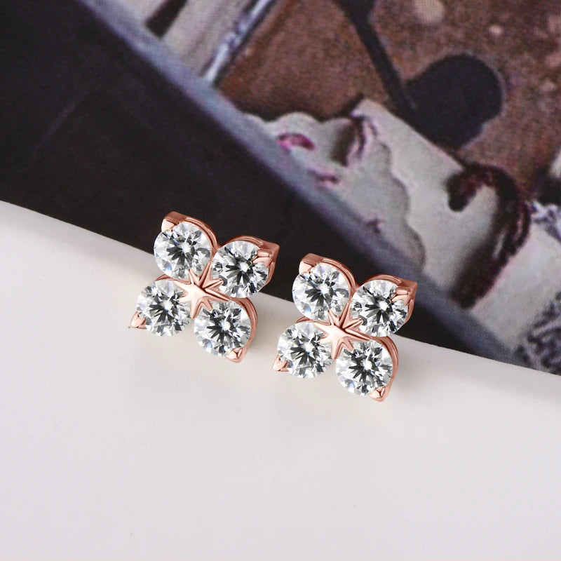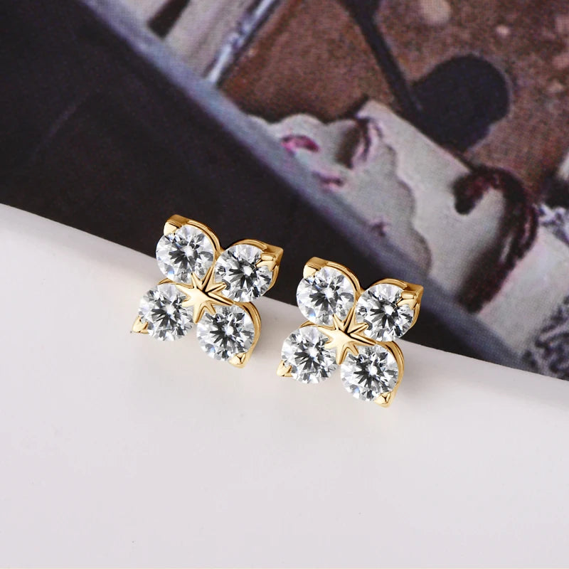 18K Gold Plated Four Leaf Clover Moissanite Stud Earrings 100% Silver 925 Luckly Charm Earrings for Women Wedding Jewelry Korean