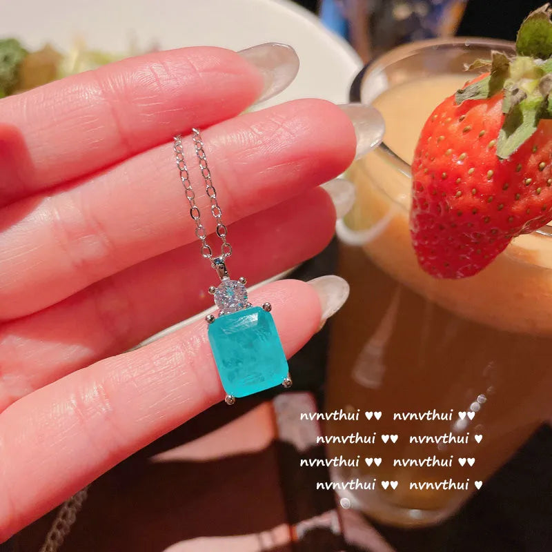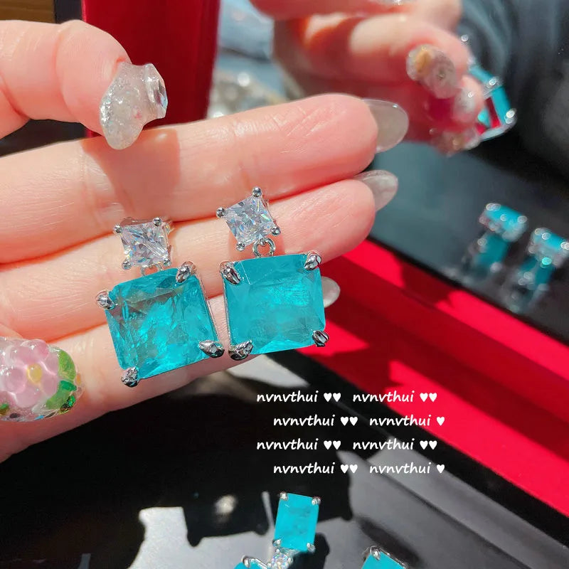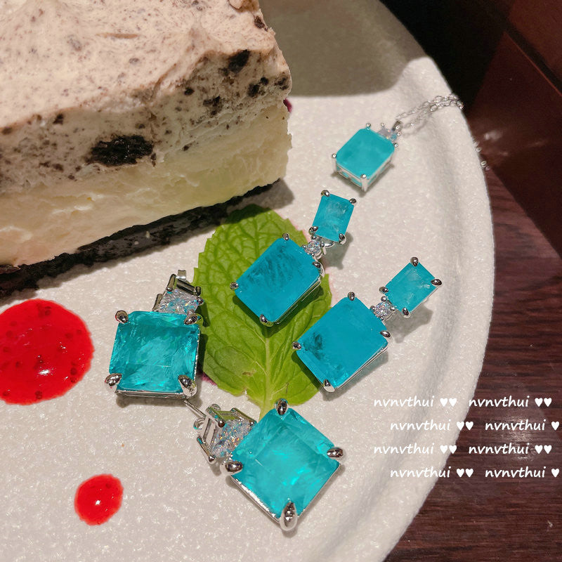 2024 Hot Sale New 925 Silver Stud Blue Paraiba Earrings Necklace Women's Wedding Fashion Jewelry Earrings...