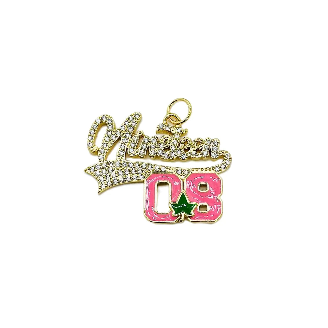 5Pcs/Lot Zirconia CZ Pave IVY 1908 Charm for Woman Jewelry Making